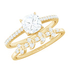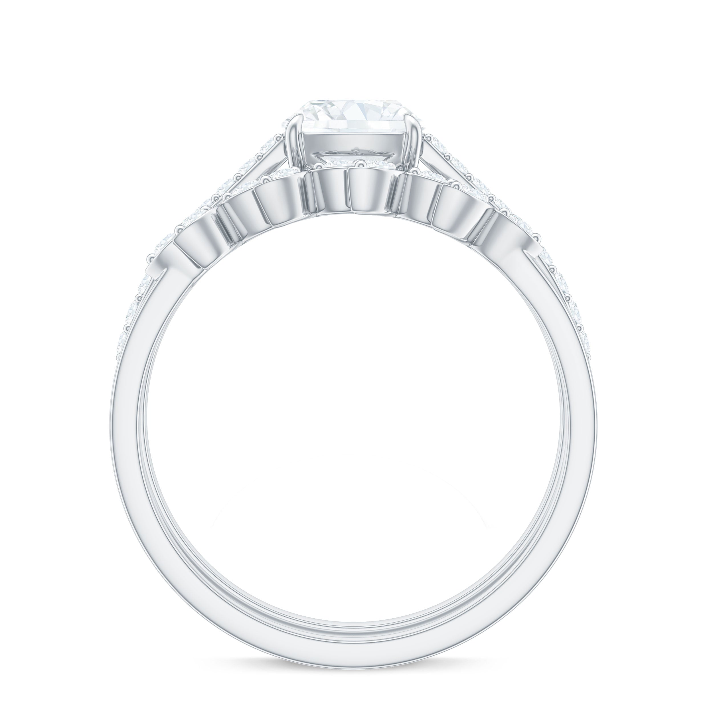Claw Set Cushion Cut Moissanite Engagement Ring with Leaf Wedding Band