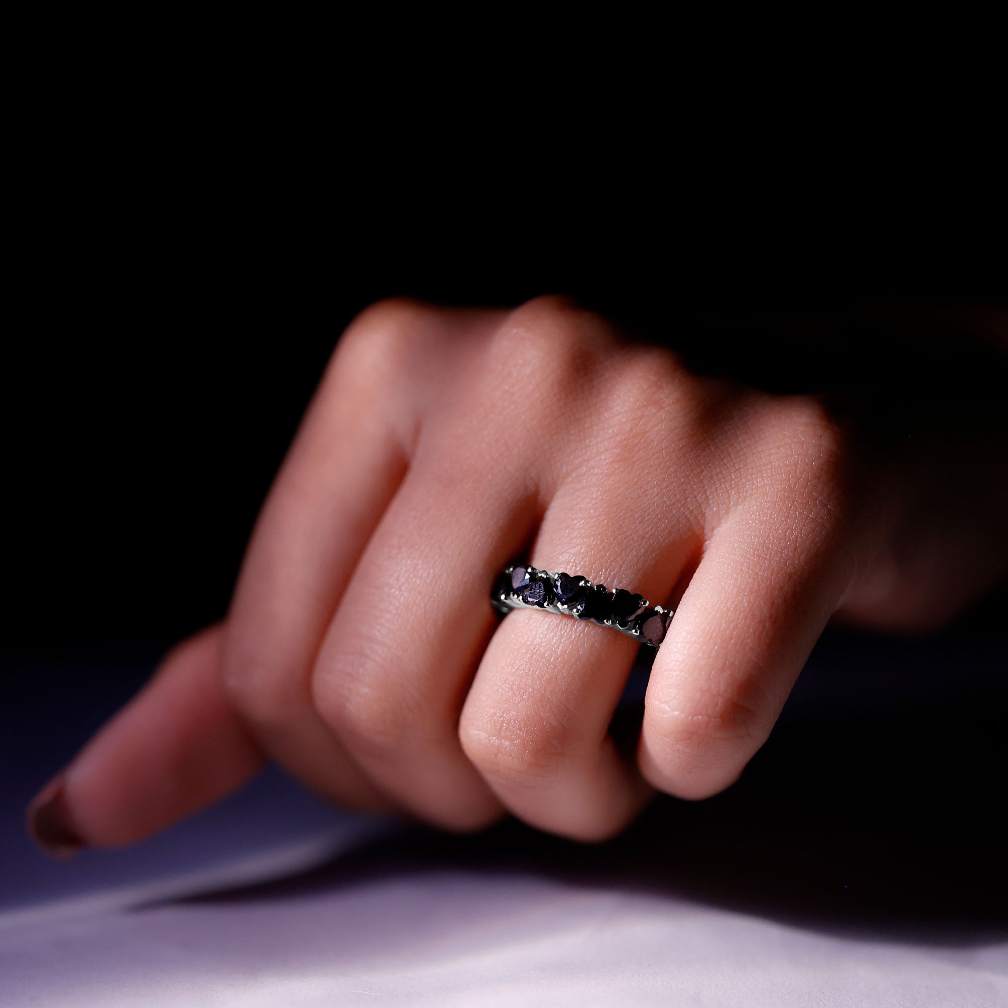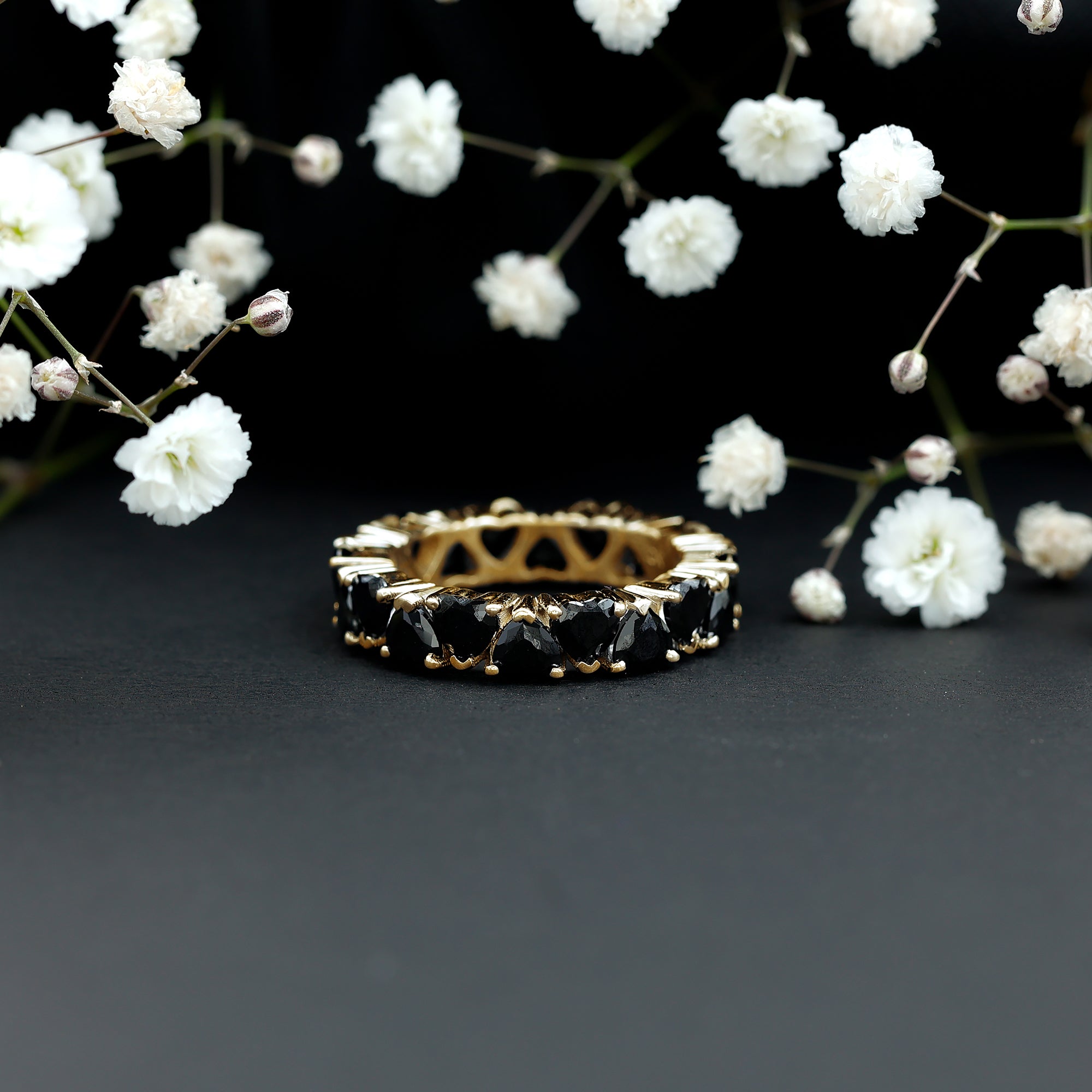 Show your bold and beautiful side with this Black Onyx Eternity Ring. Made for those who love modern style with a touch of classic elegance, this Heart Wedding Band brings together strong design and meaningful detail. The band is set with a continuous row of heart shaped black onyx stones, each carefully placed in claw setting. The full eternity design wraps all the way around, symbolizing love that has no end. This Black Onyx Wedding Band is a great way to express lasting love and commitment, making it a thoughtful piece for any special moment. It is also perfect for adding a little something extra to your everyday look. Whether you wear it alone or stack it with other rings, it stands out in the best way. Crafted with care and AAA quality black onyx, this Heart Eternity Ring is as durable as it is eye-catching. If you are looking for a ring that is both trendy and meaningful, this Black Onyx Heart Ring is a perfect choice. It blends romantic shape with bold color, creating a piece that is simple, stylish, and full of love. Add it to your collection or gift it to someone special - either way, this Black Onyx Stackable Ring is sure to leave a lasting impression.
