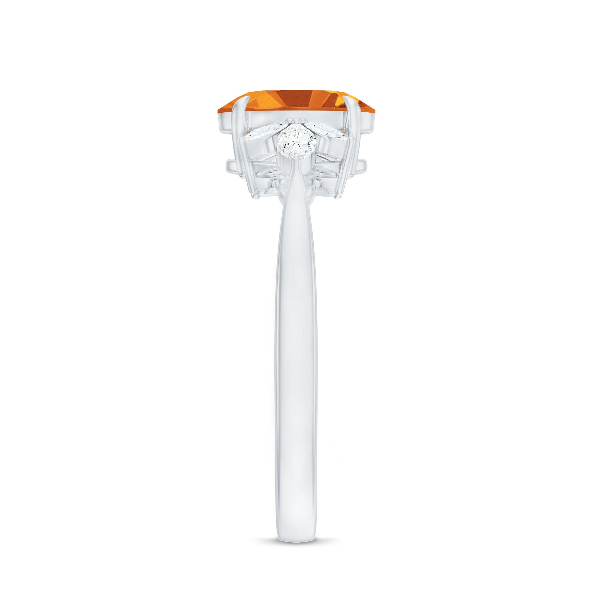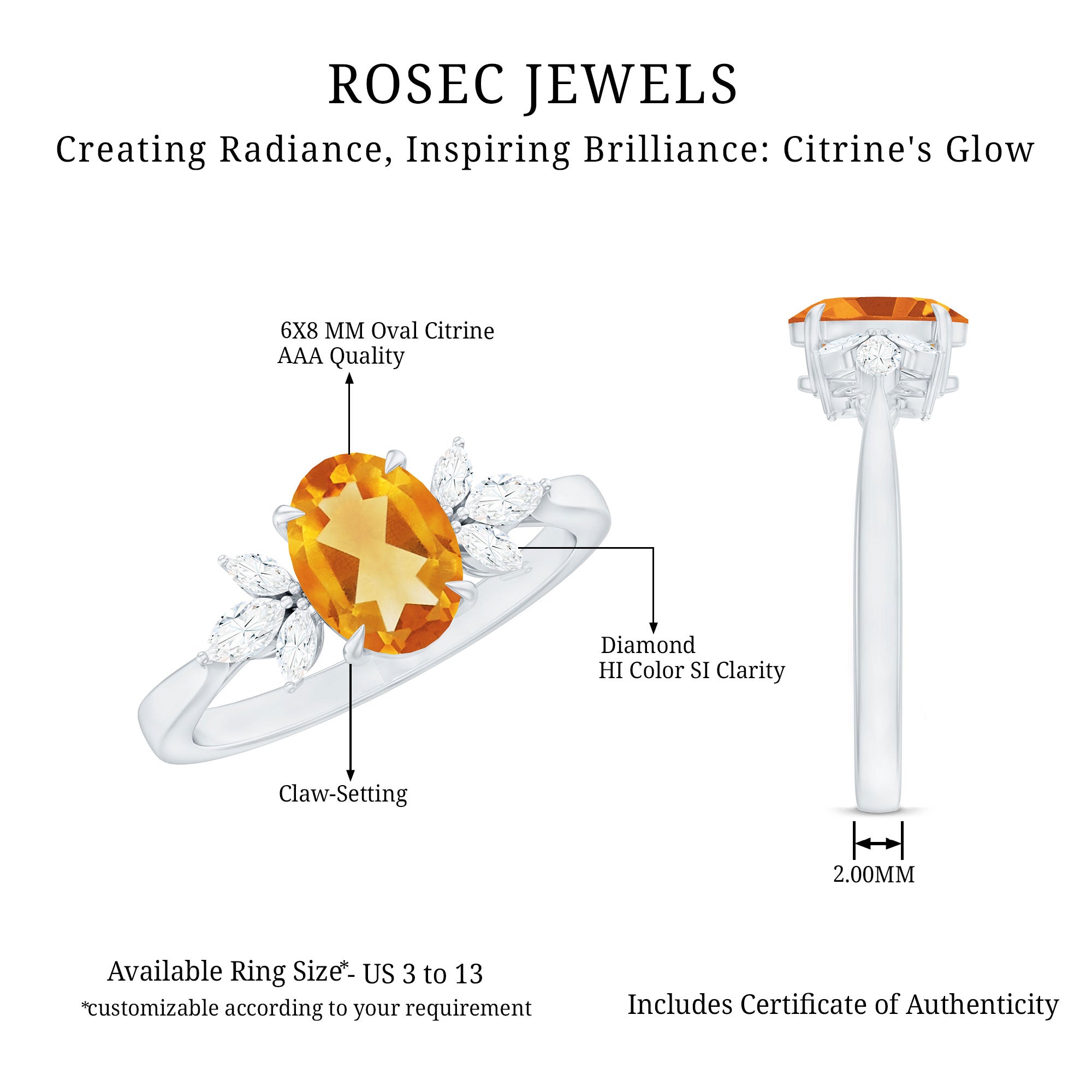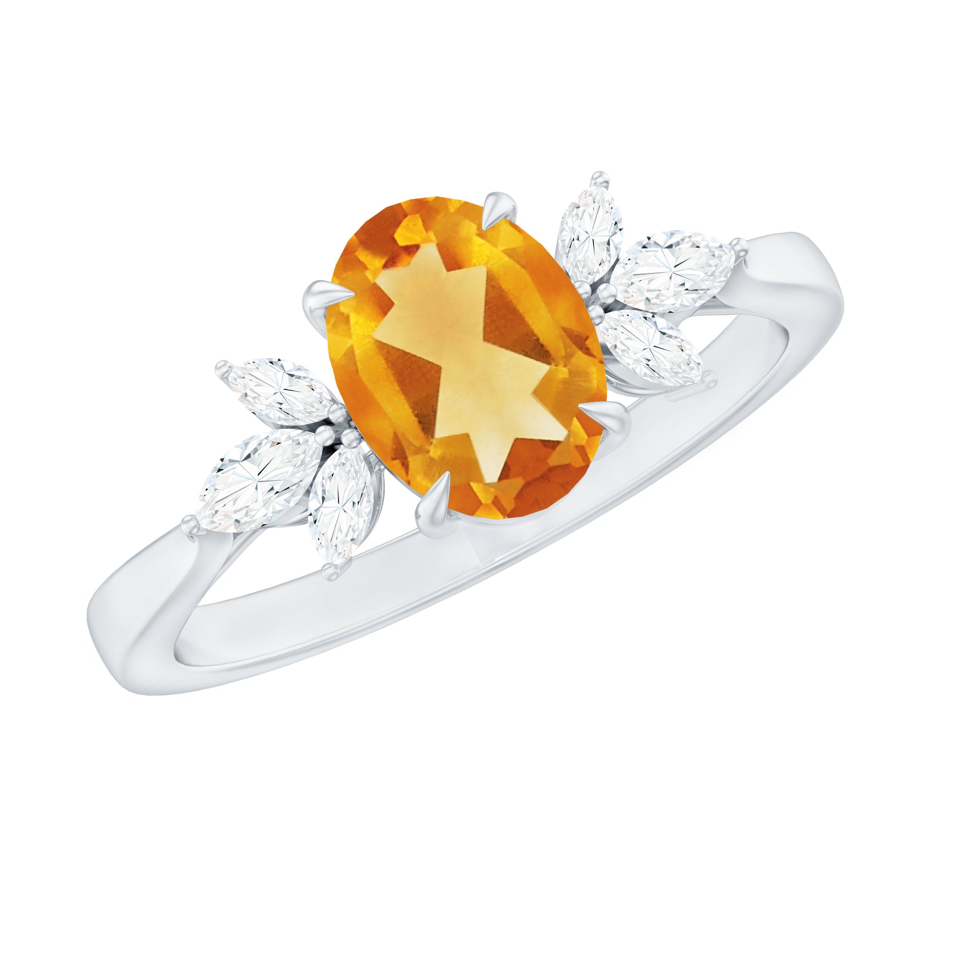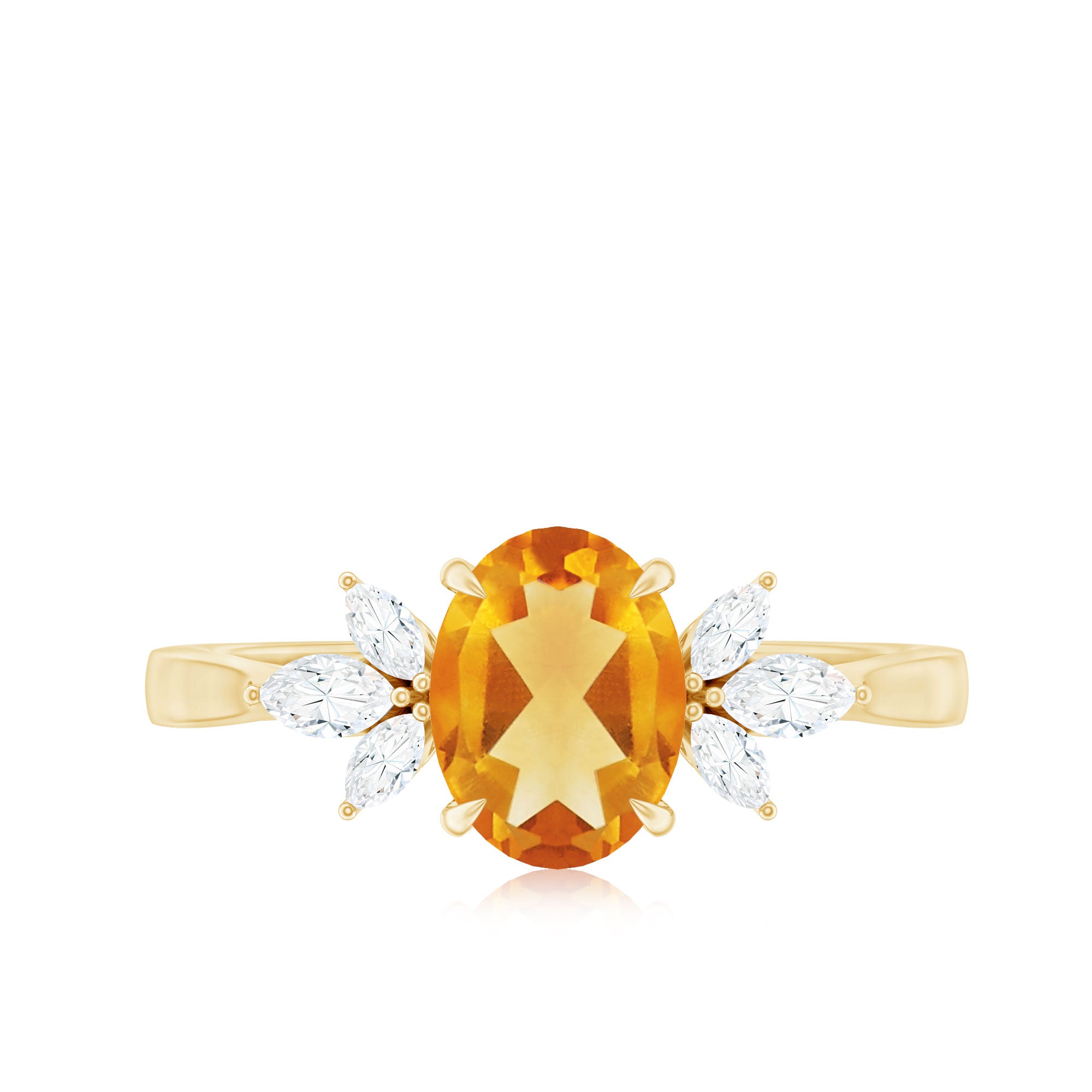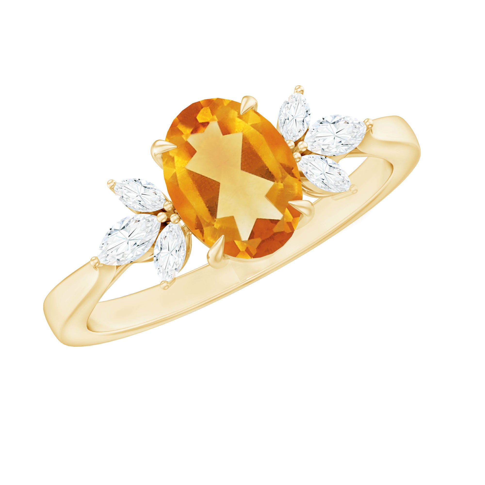 Turn heads the moment she says yes with an engagement ring that feels bold, romantic and full of meaning. At the center of this captivating Solitaire Engagement Ring shines a 6X8 mm Oval Shape Citrine set in Claw Setting, glowing with a warm golden tone that reflects joy, passion and a love that feels alive. Framing the AAA Quality Citrine, Marquise Shape Diamond stones form a graceful trio on either side, adding elegant sparkle and a sense of movement that draws the eye from every angle. Refined yet modern, this Citrine Engagement Ring blends classic romance with a fresh, eye-catching style that feels effortless and confident. Handcrafted for comfort and lasting beauty, this Citrine Diamond Ring is designed to be worn every day while still feeling special enough for the biggest moments of life. Presented in a signature jewelry box, this Oval Engagement Ring make the proposal or celebration even more unforgettable.