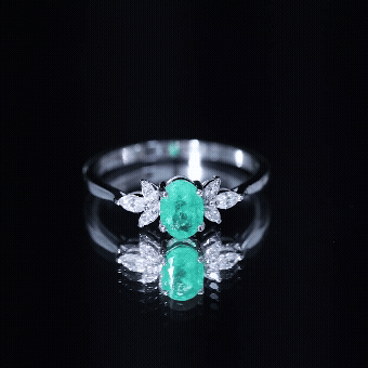 Oval Shaped Emerald Engagement Ring with Marquise Diamond Trio