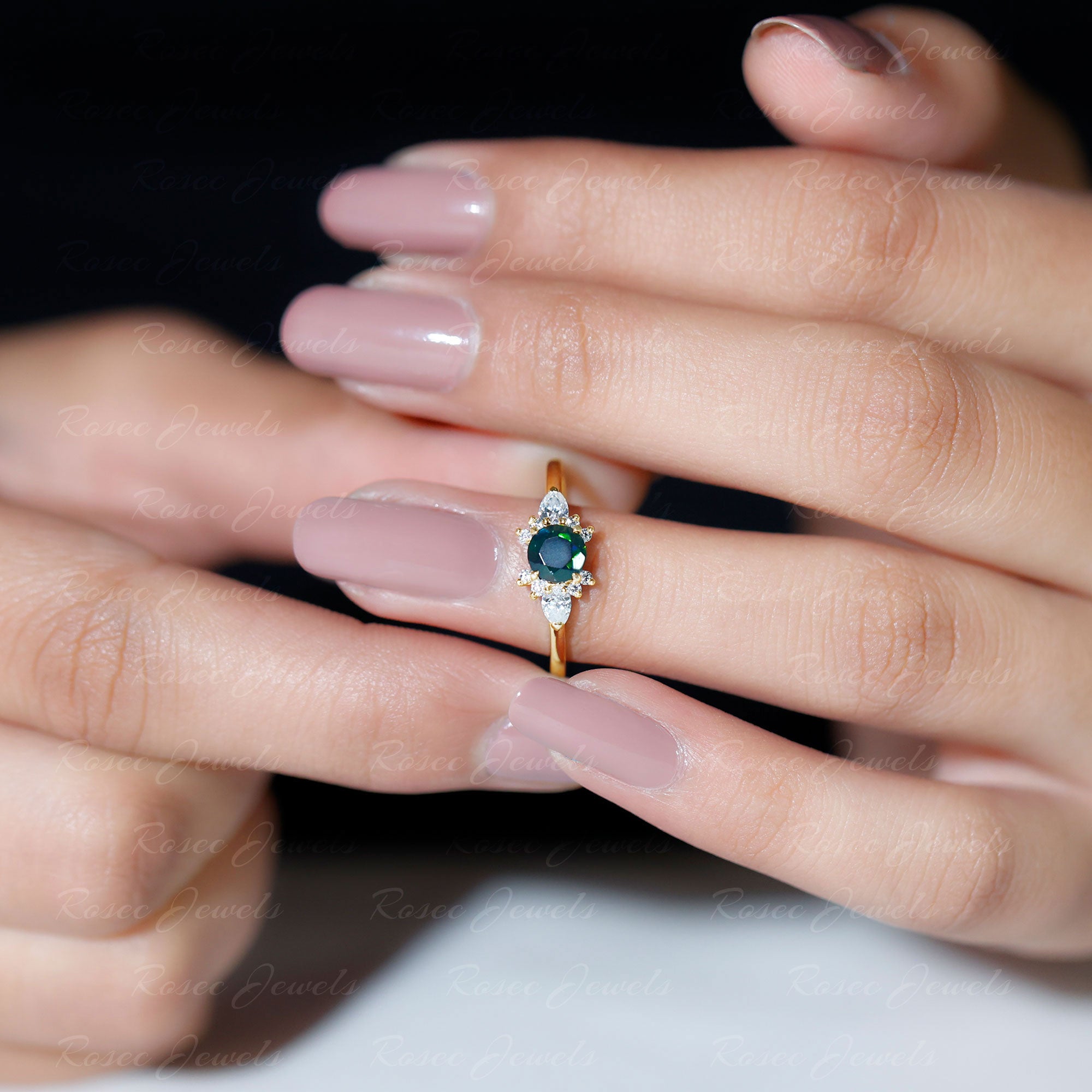 Give your beloved a delightful surprise with this exquisite Promise Ring adorned with a 4 MM Round Shape Black Opal in a claw setting, surrounded by pear and Round Shape Diamond Stones in a stunning halo design. Fashioned from Solid Gold, this gorgeous Promise Ring is the perfect gift for your special lady, sure to leave her feeling loved and cherished.