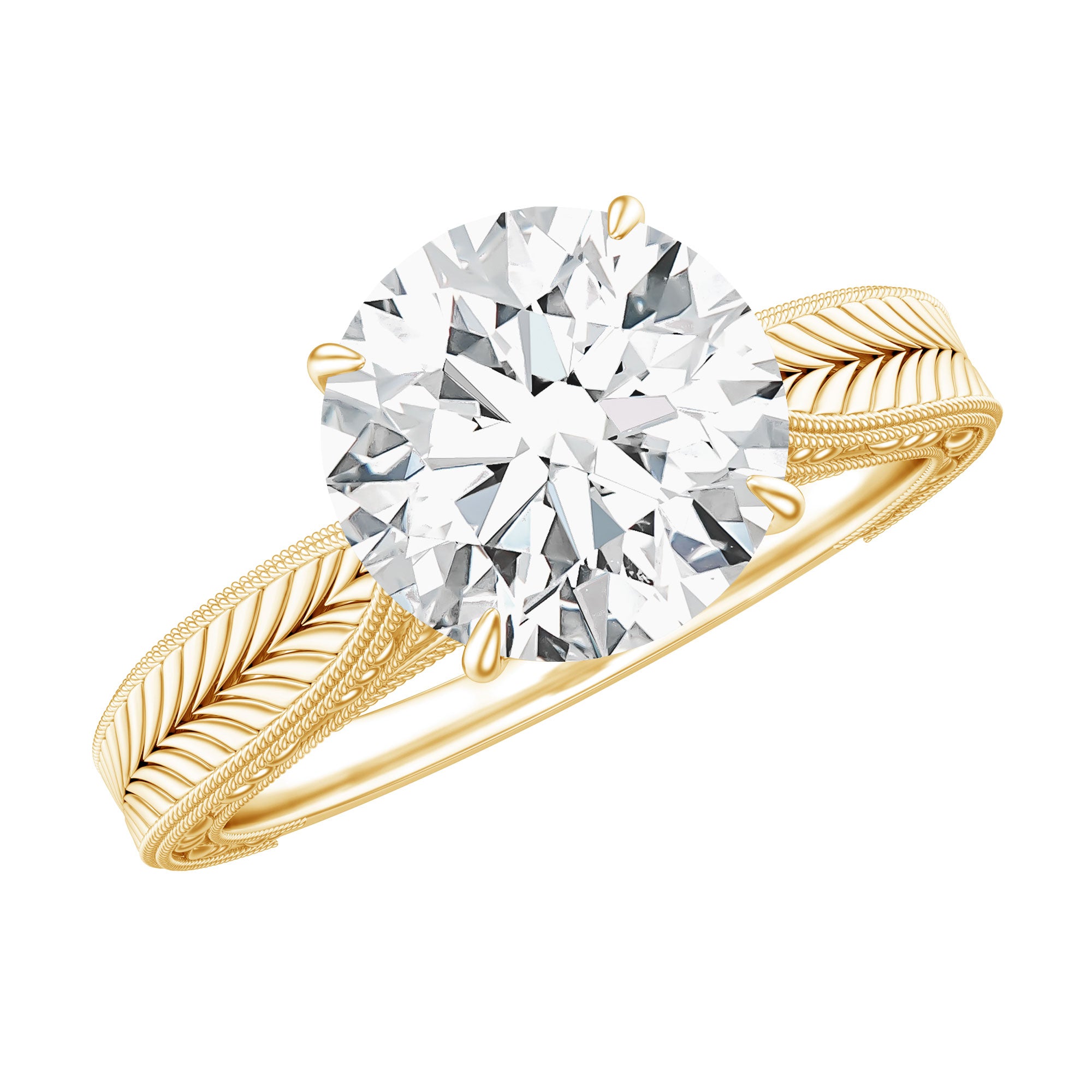Claw Set Round Moissanite Engraved Engagement Ring