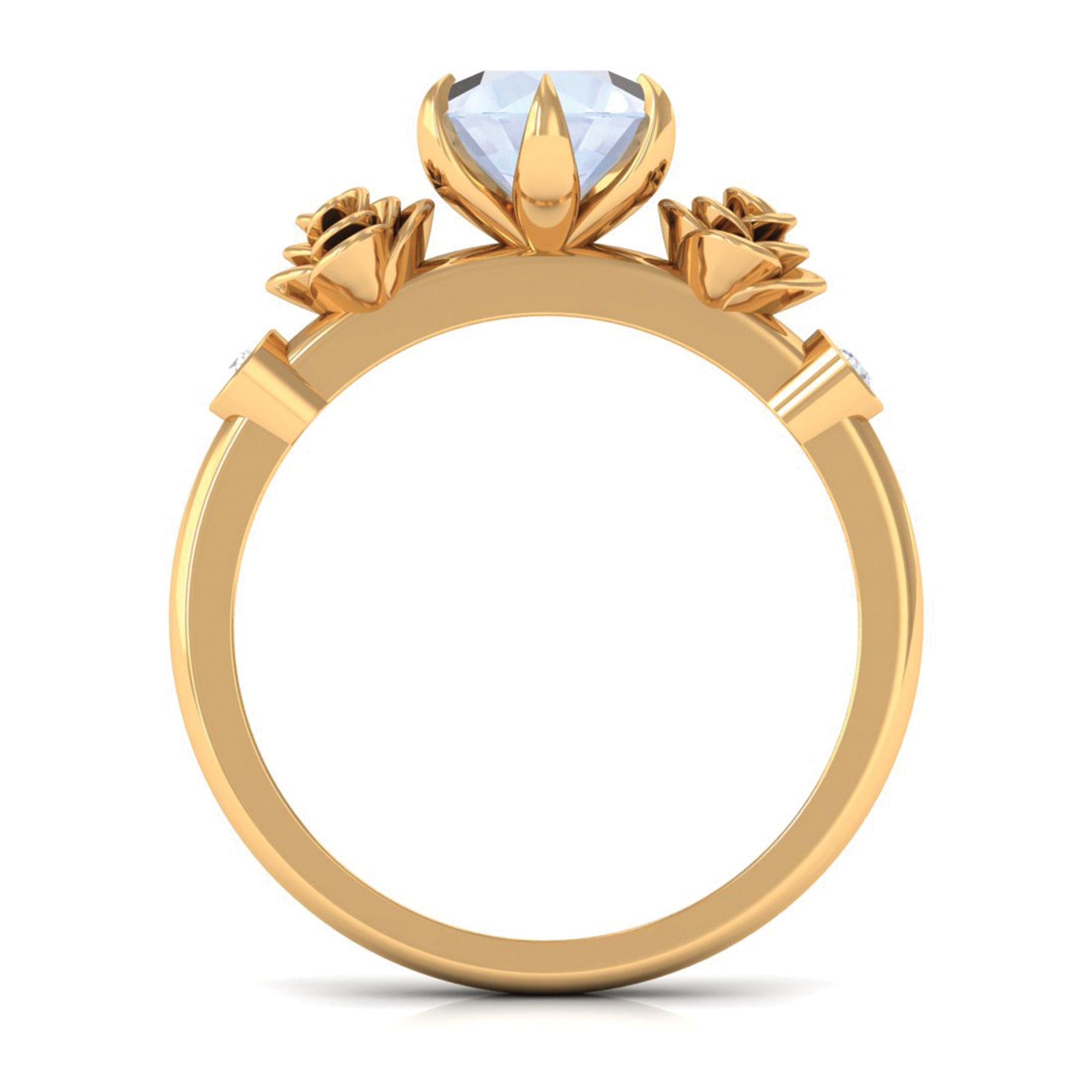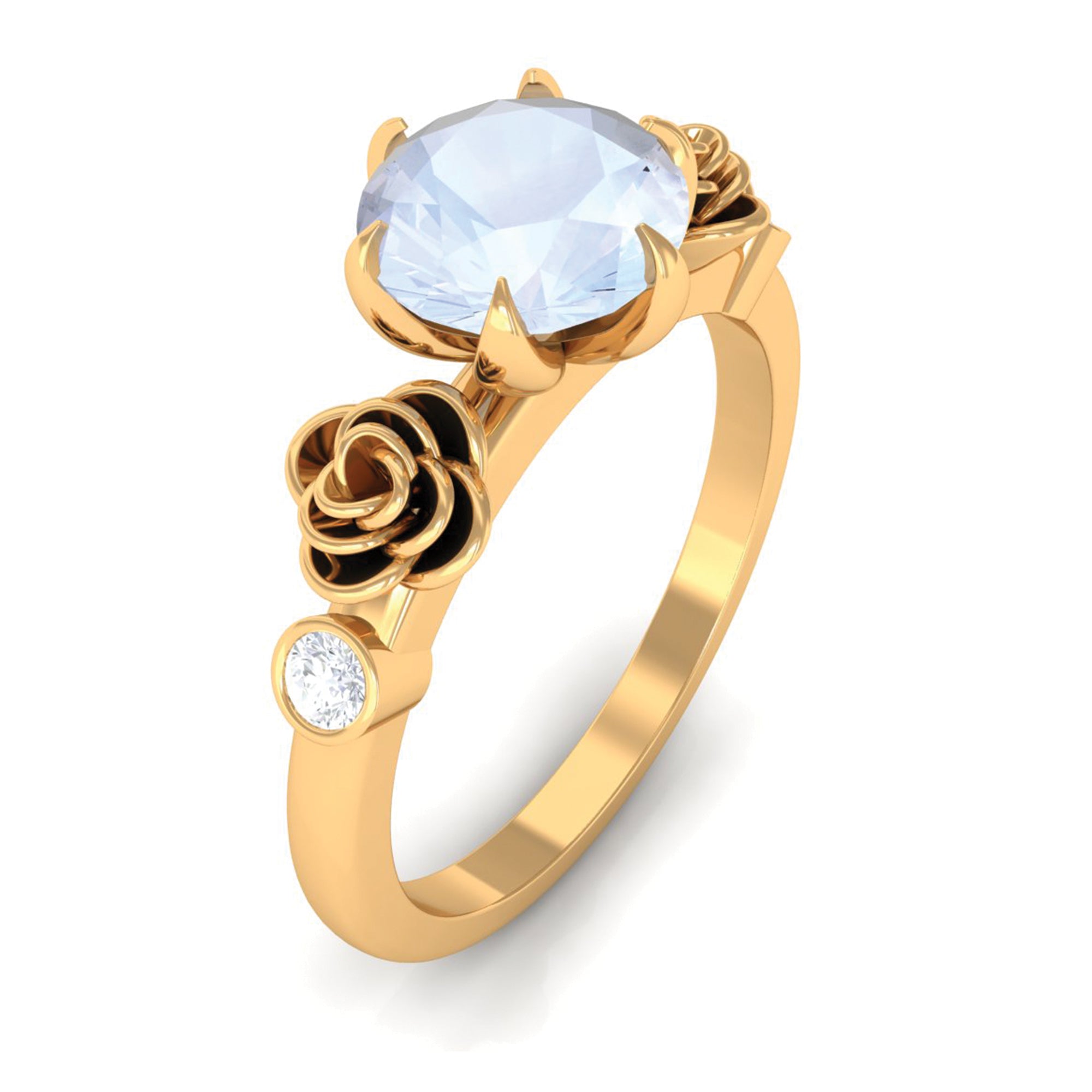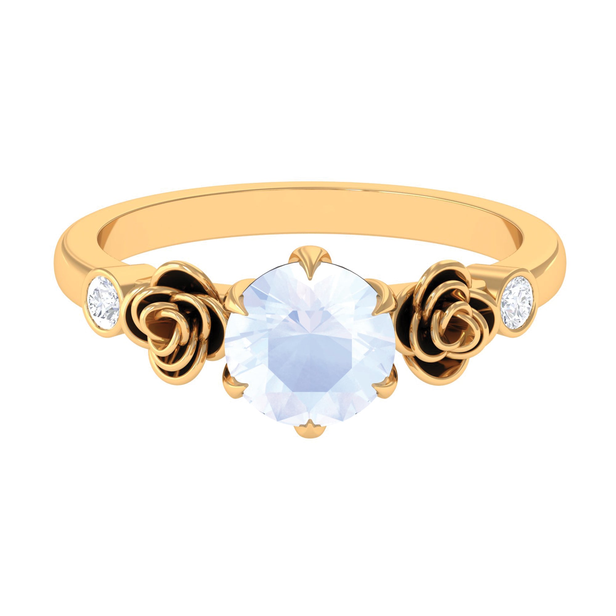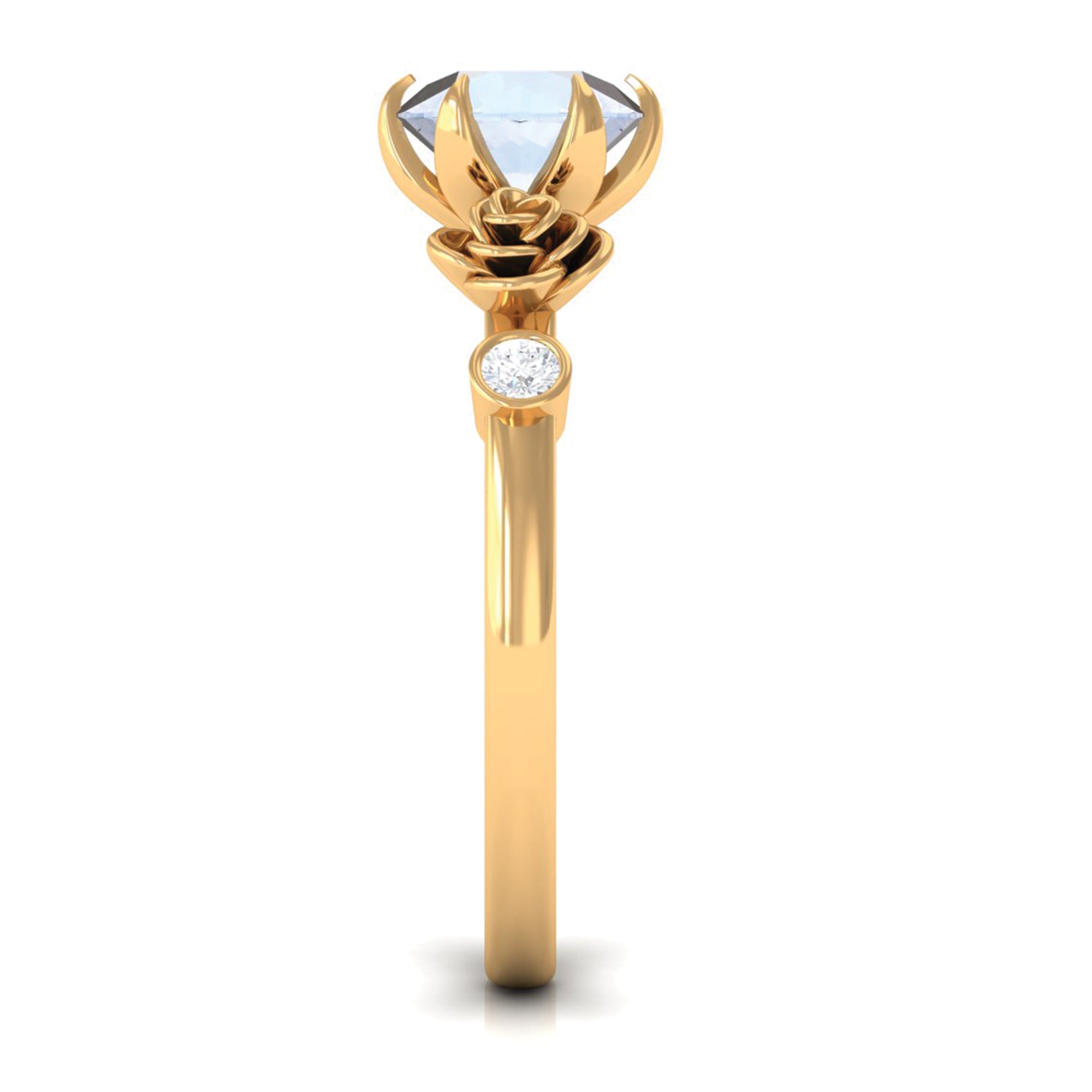 This eye pleasing Classic Solitaire Ring is adorned with Round Shape Moonstone and Diamond. This Flower Ring is crafted in Gold, adding more charm to the ring. This Moonstone Ring is a stunning jewelry, which she will cherish her whole life.