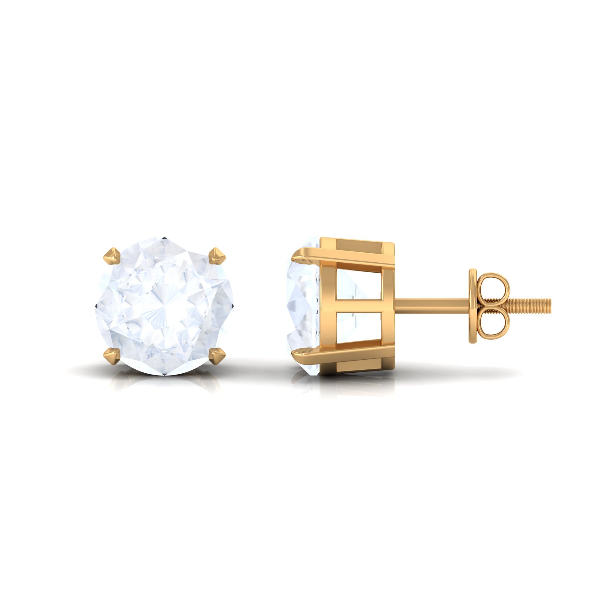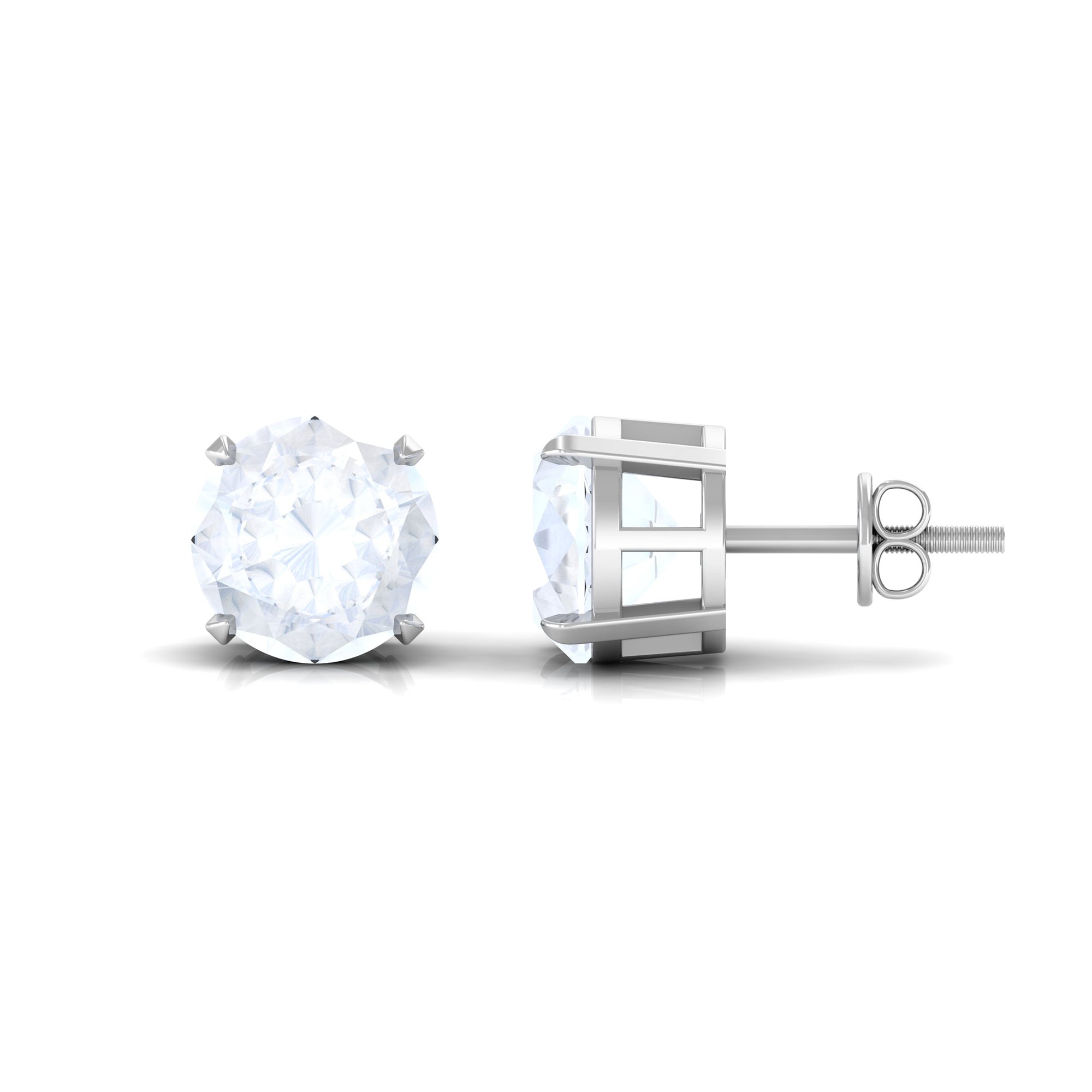 These classic stud earring pair showcases a round moonstone in a claw setting. It captures the attention with its lustrous white hue. The solitaire earring is a contemporary take on traditional studs with its minimalistic touch. The screw back findings complete this simple yet elegant earring pair that looks modern and unique.