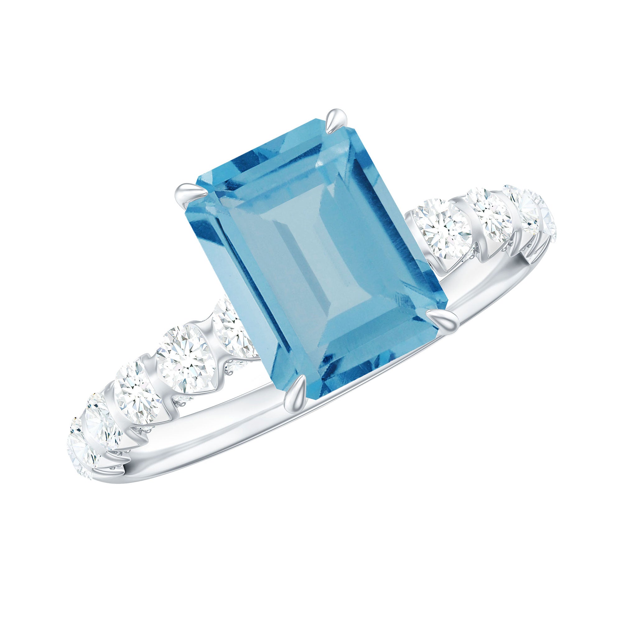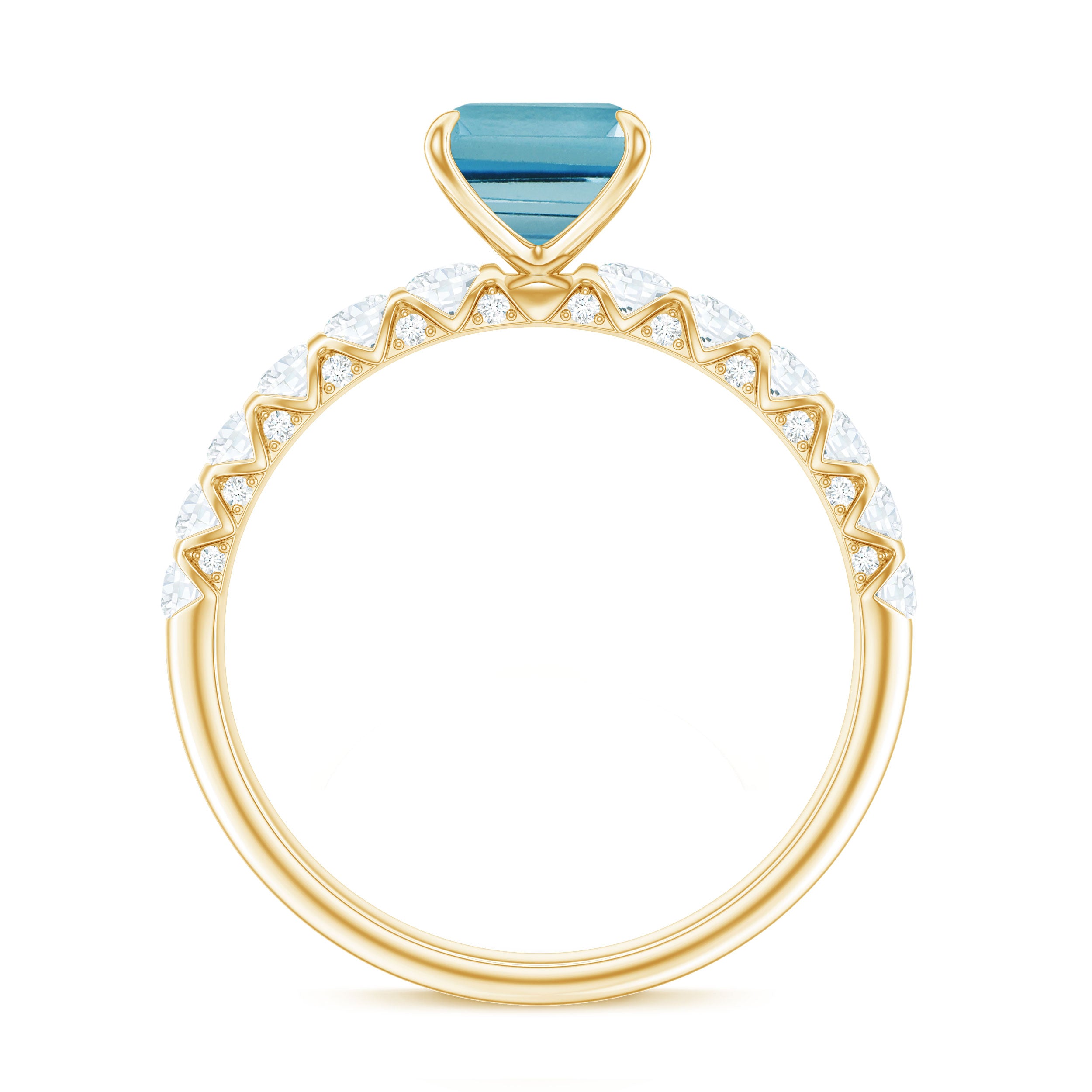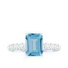 This Solitaire Engagement Ring is studded with a 6X8 MM Emerald Cut Swiss Blue Topaz Solitaire enhanced by Diamond Accents which makes this Solitaire Engagement Ring a must have. Grab this lovely engagement ring for your beloved.