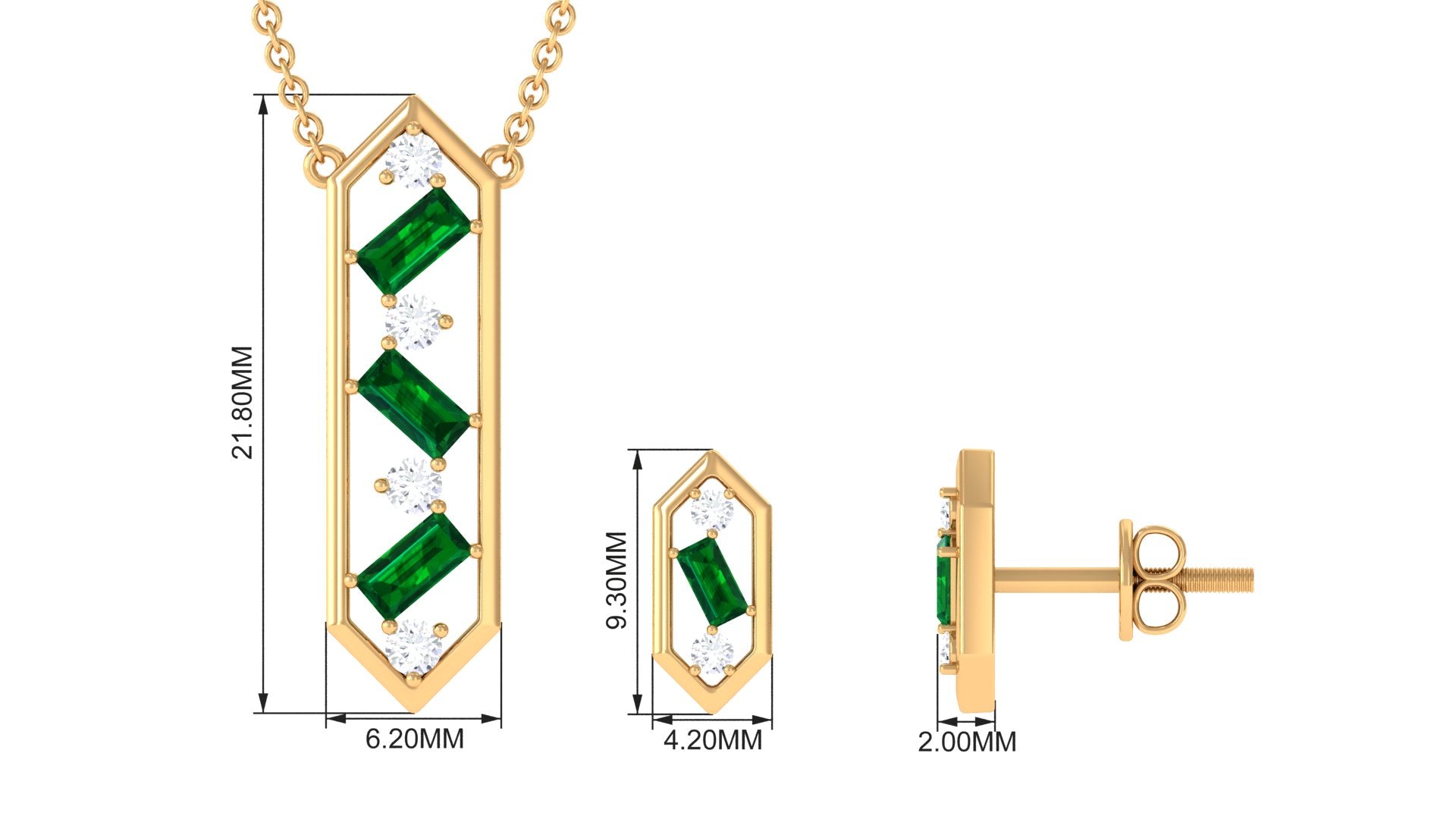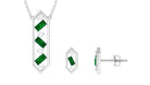 Make a stylish statement with this Contemporary jewelry Set. Featuring stunning baguette-cut created emerald stones paired with round Diamond stones, this necklace earring set offers a modern take on classic jewelry styles. The dangling design adds movement and elegance to the pieces, making them the most suitable choice for any special occasion. Add this Created Emerald and Diamond jewelry set to your jewelry collection for sophistication and luxury.