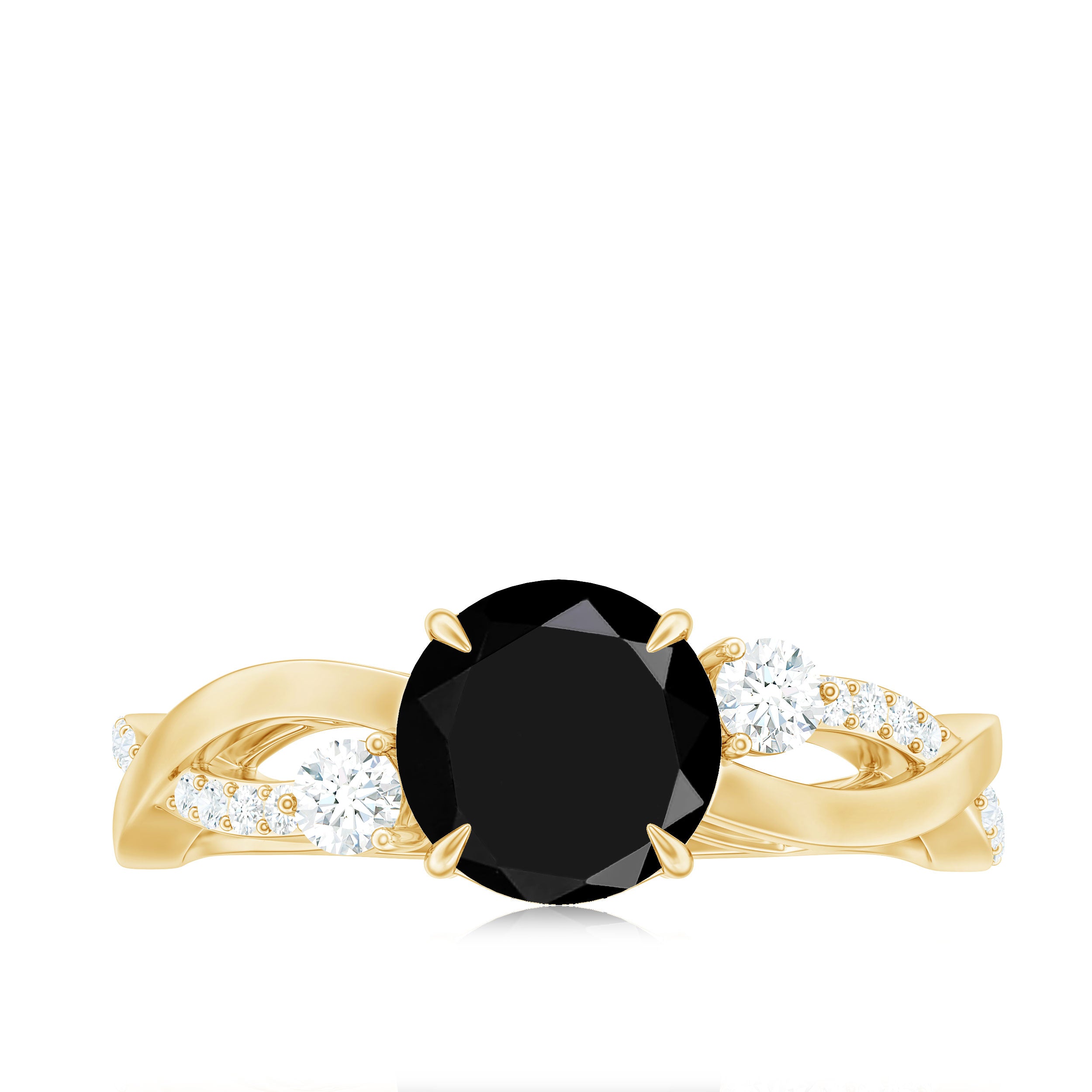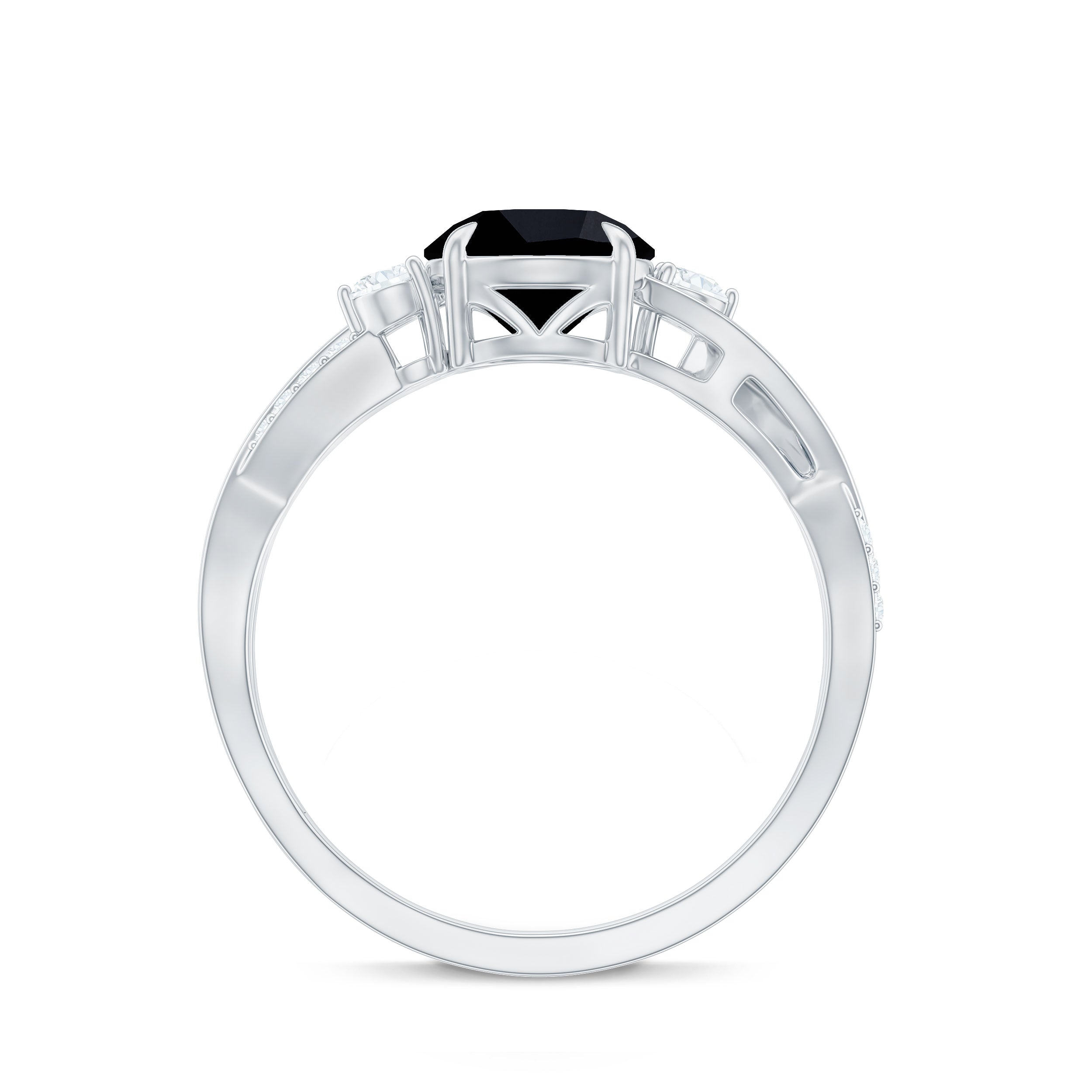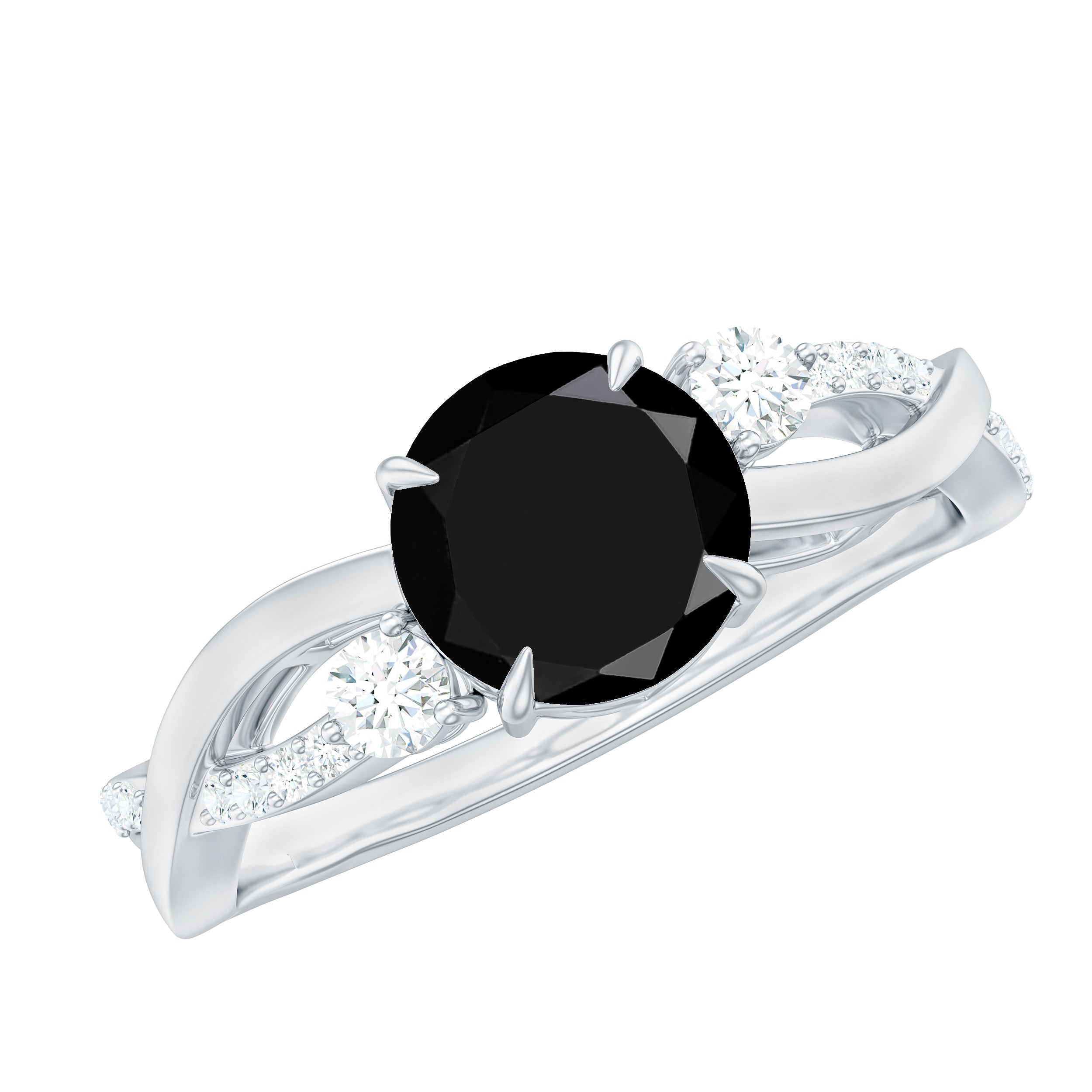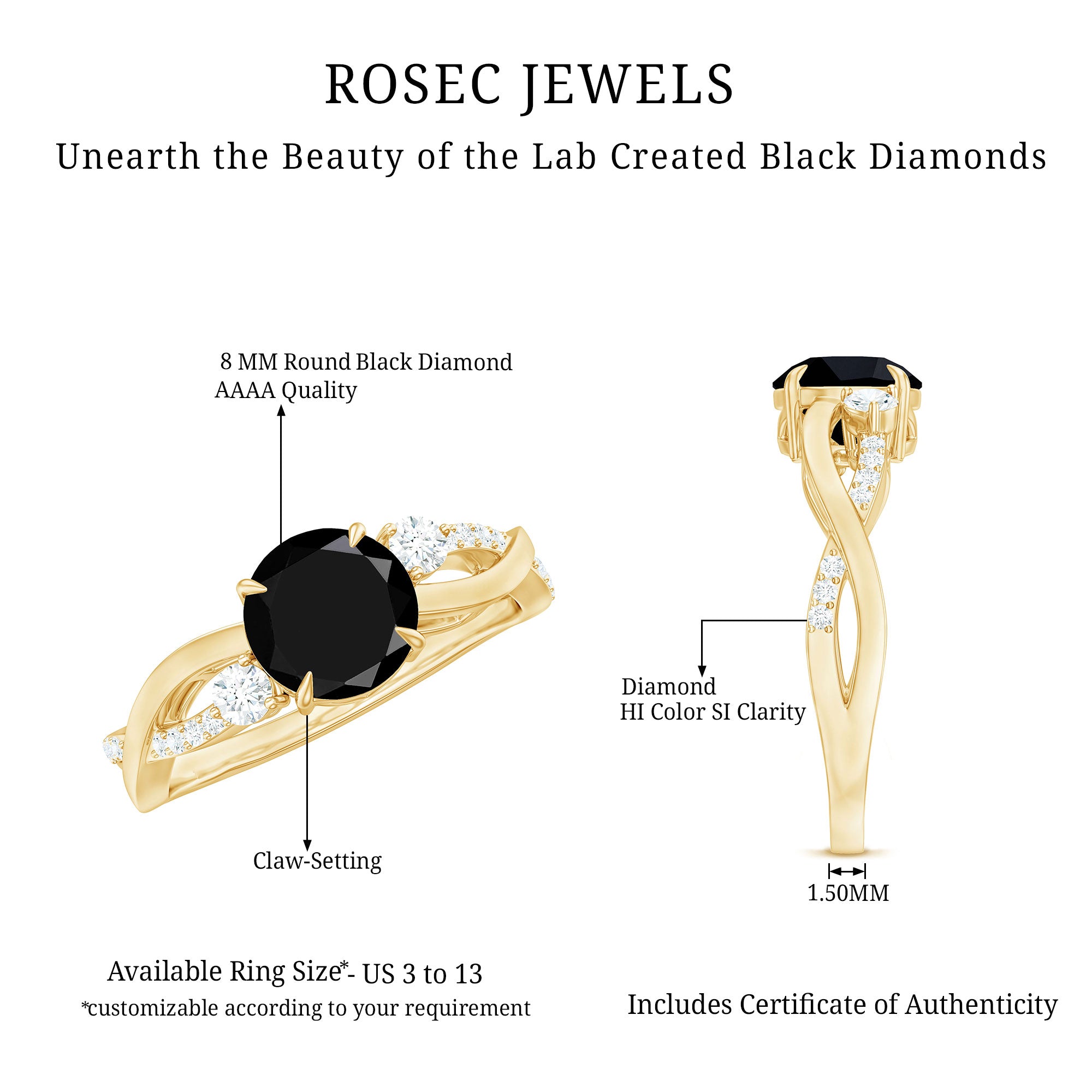 Show your admiration for the most stunning person in your life by gifting them this exquisite Created Black Diamond Ring. Featuring an 7 MM Round Shape Created Black Diamond gemstone set in a claw setting and a solitaire crossover infinity band adorned with a Diamond, this engagement ring is the perfect representation of your boundless love for your partner. The ring has a total weight of 2 Carat and boasts AAAA Quality, with all gemstones certified and subjected to rigorous quality checks.