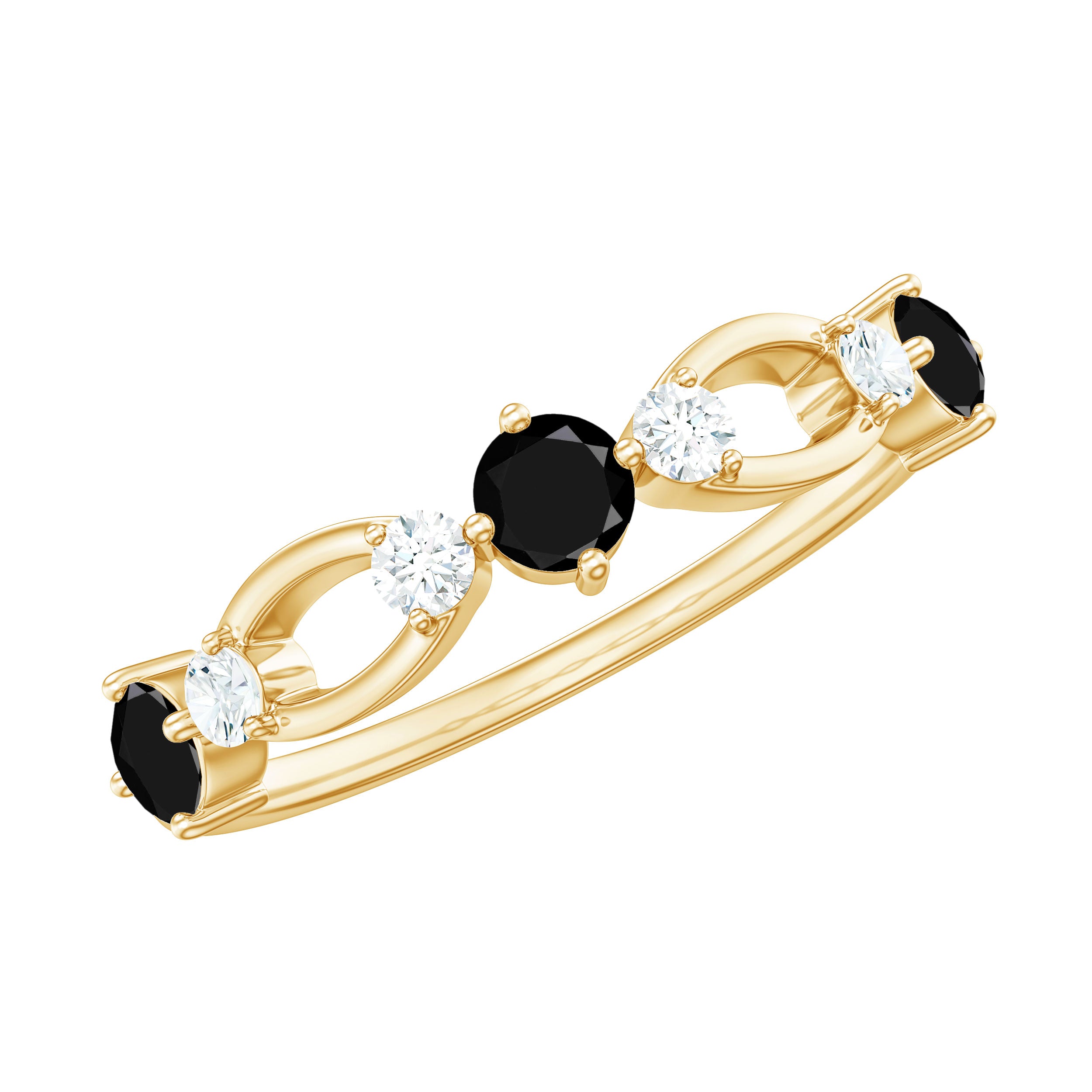 Get ready to be dressed up with this Created Black Diamond Promise Ring. The minimalistic shank is adorned with created black diamonds and Diamond stones, creating a striking contrast. Crafted with solid gold, this promise ring makes for an ideal friendship day gift.