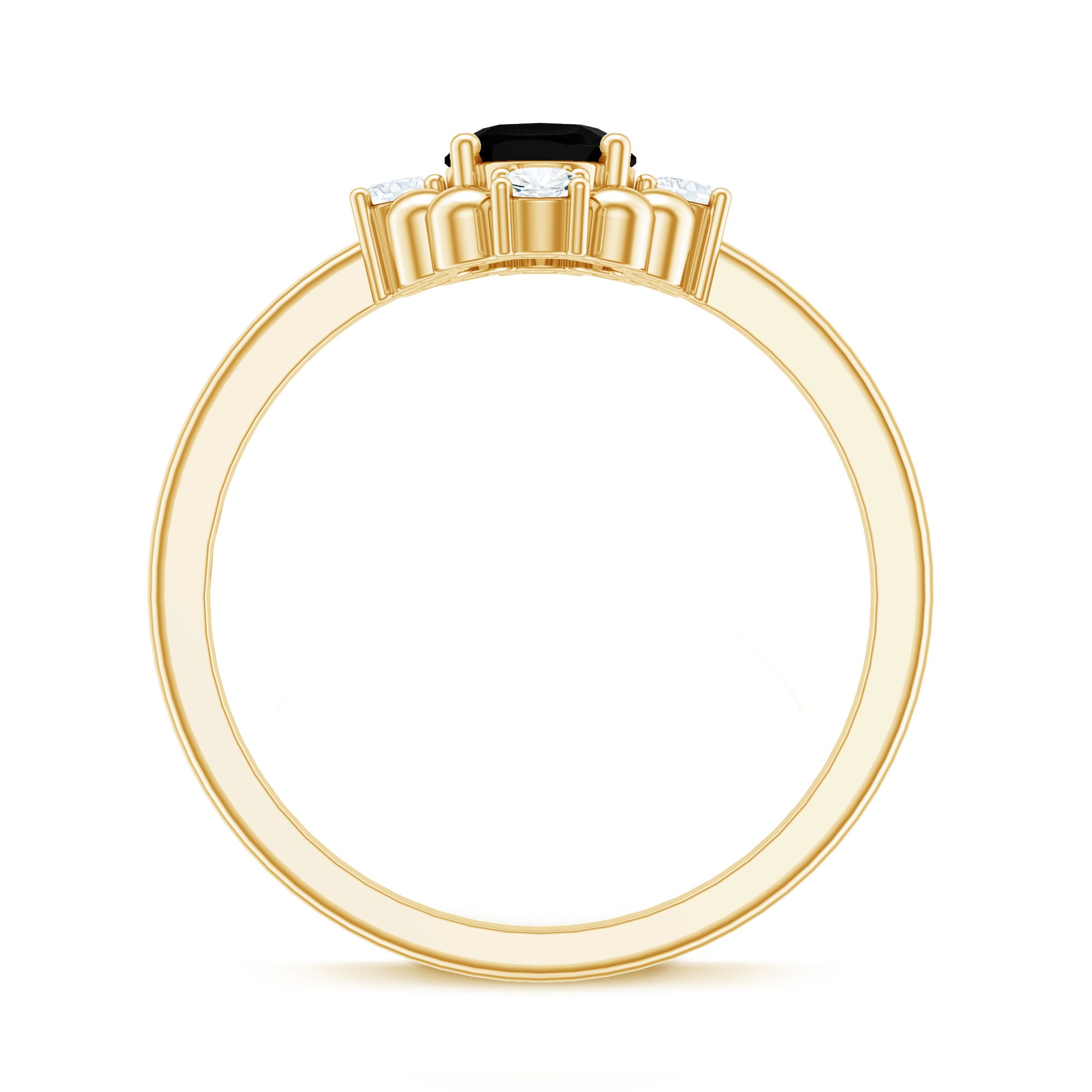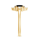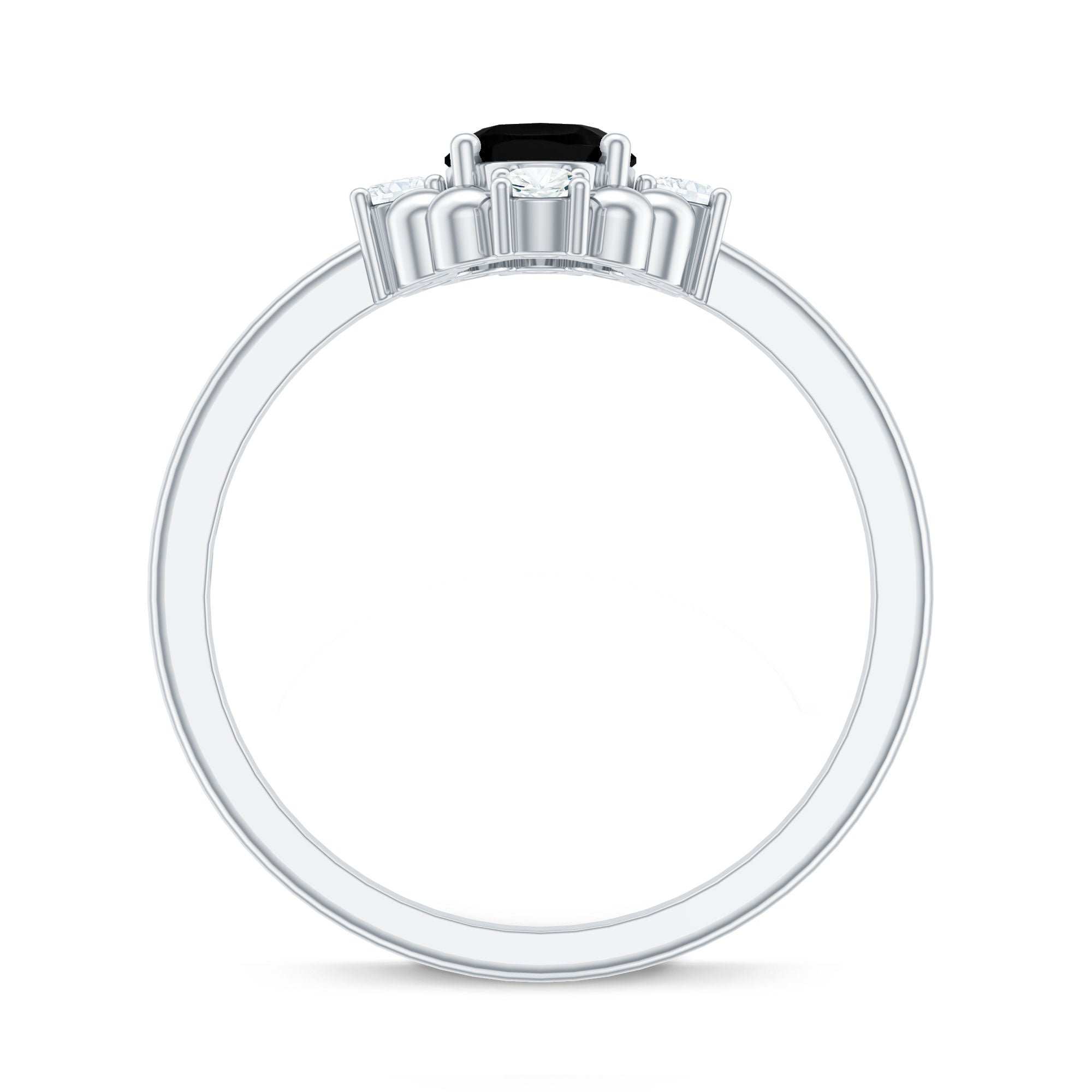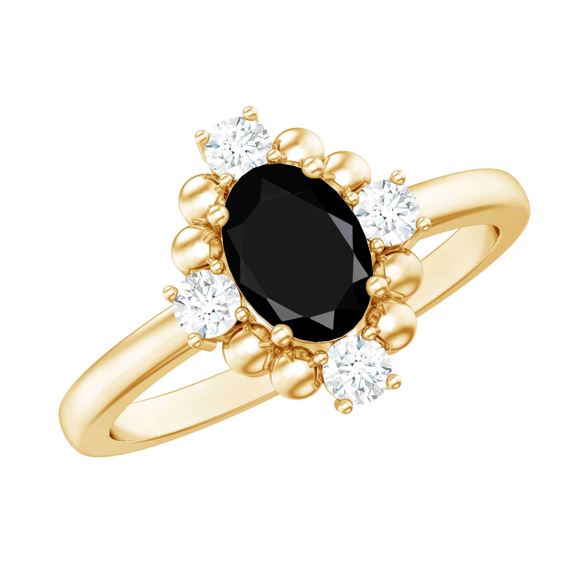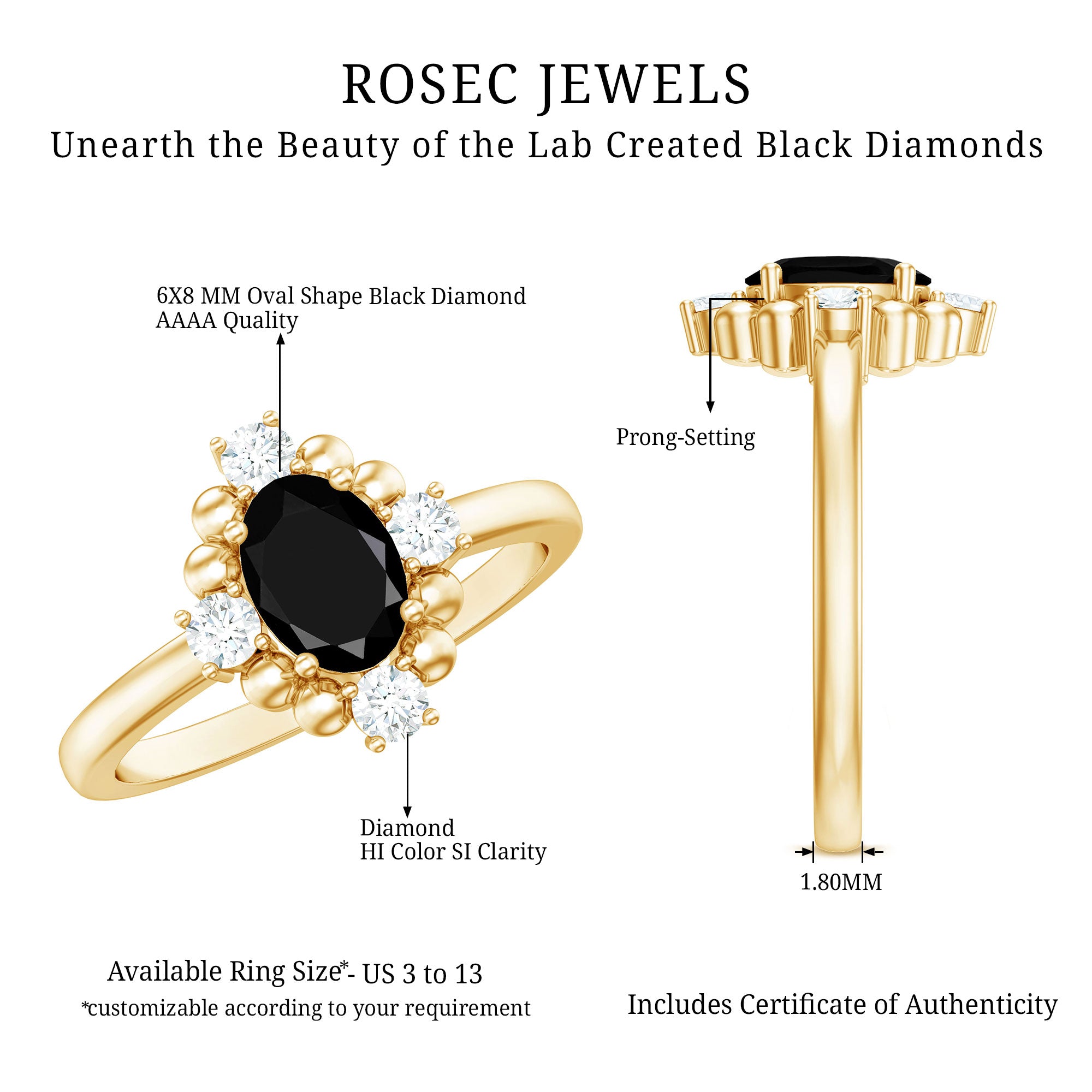 A perfect ring is a more precise ways to express emotions to your better half. This beautiful engagement ring will make her feel on cloud nine, the Created Black Diamond Ring effortlessly draws your attention. This ring is embellished with Oval Created Black Diamond with Round Shape Diamond Accent and gold beaded detail, creating a glistening appeal. This Created Black Diamond Ring is excellent choice for Cocktail Engagement jewelry.