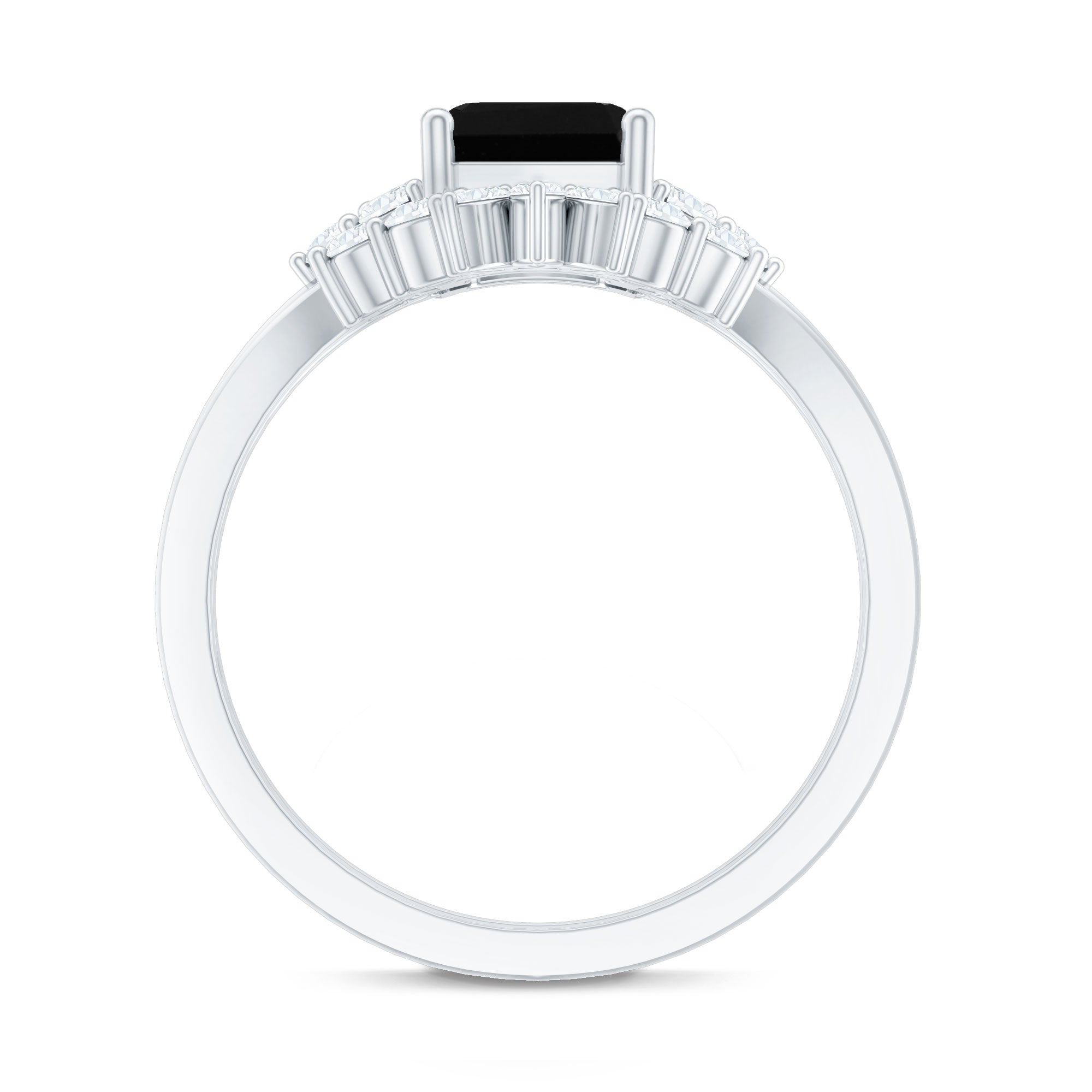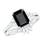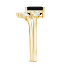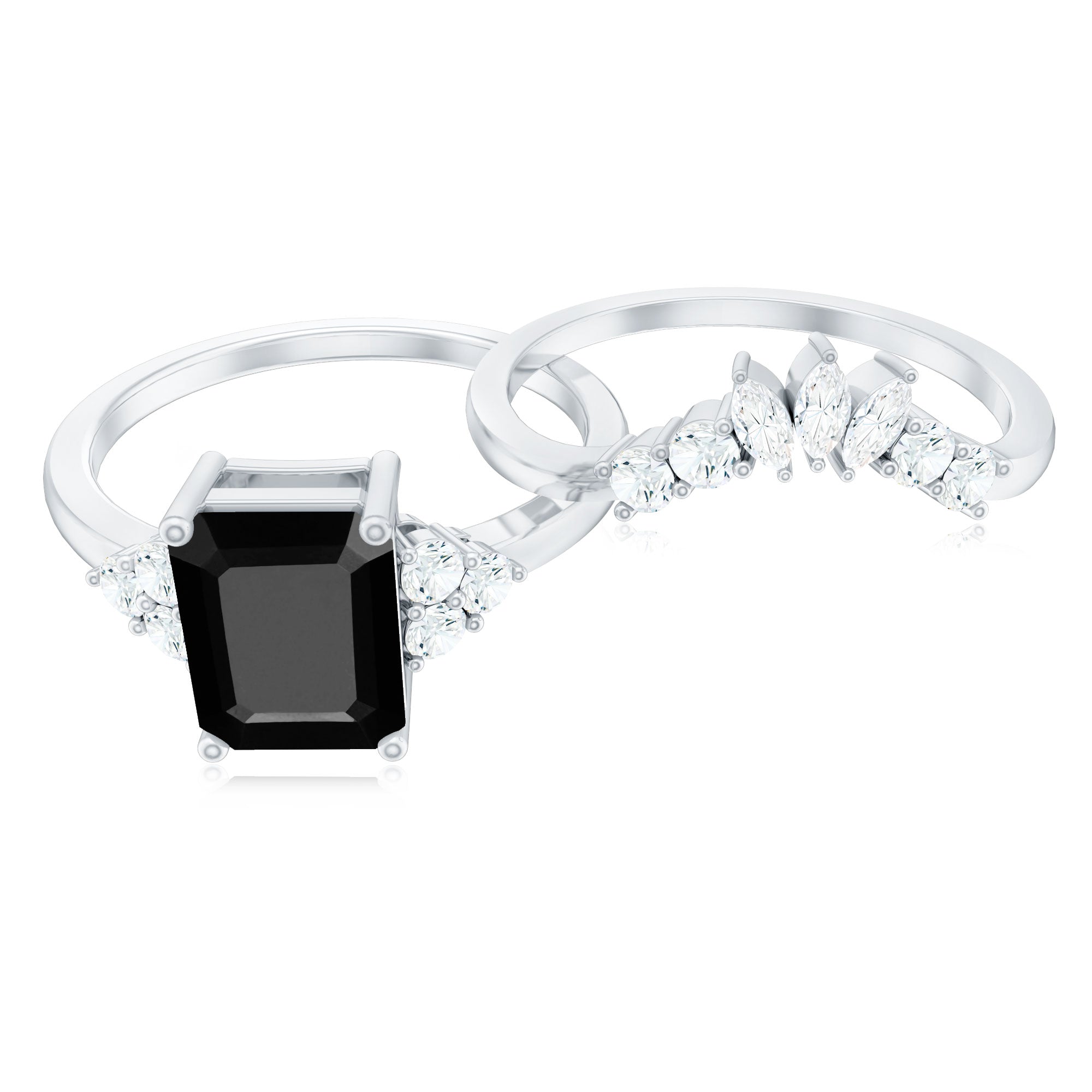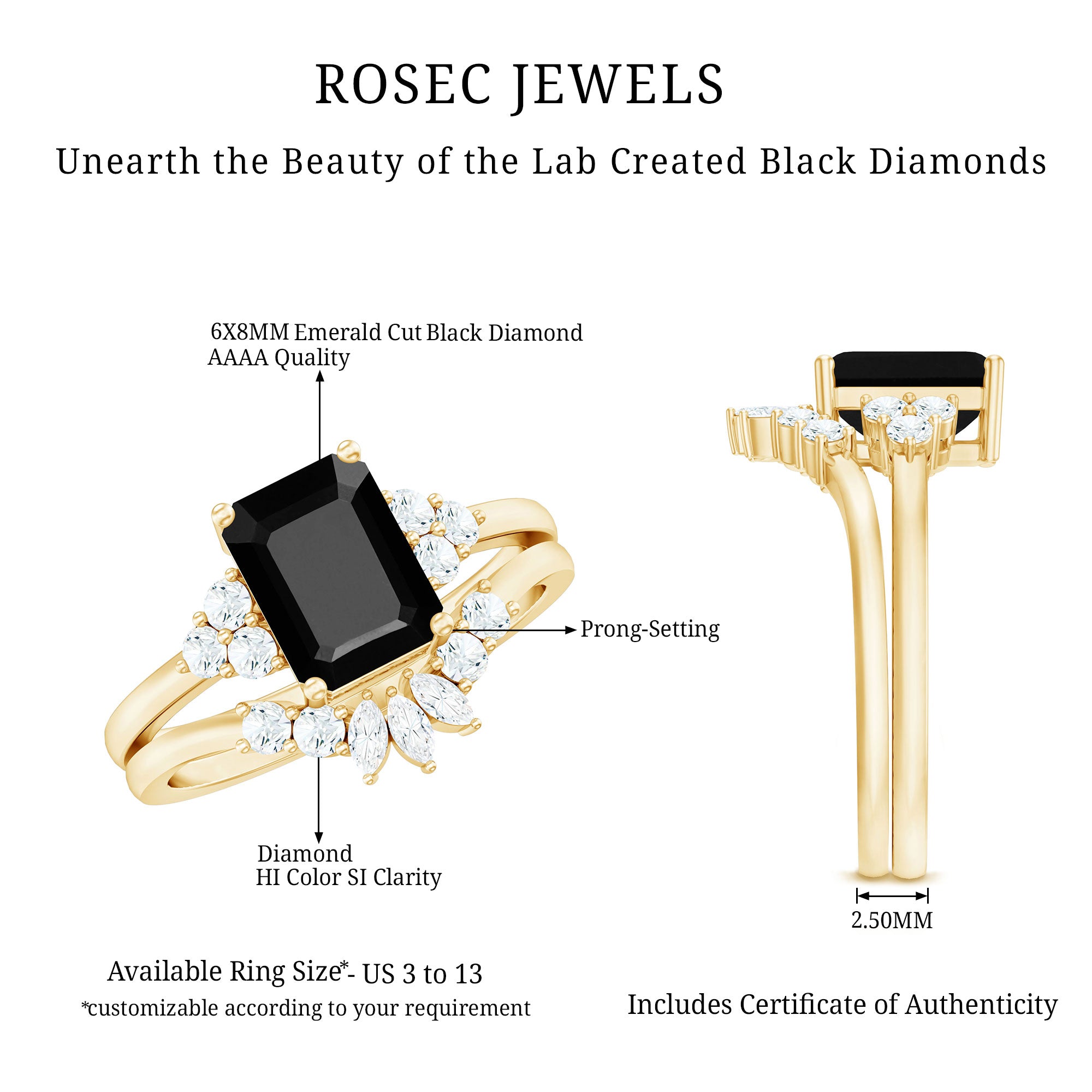 Crafted with elegance, this Engagement Ring Set features an Emerald Cut Created Black Diamond secured in Prong Setting with Diamond Trio while Marquise and Round Shape Diamonds studded on an enhancer ring. The Solitaire Ring Set is composed of Solid Metal for a shiny appearance. Express your love without saying much by giving her this captivating Wedding Ring Set to make her feel even more special.