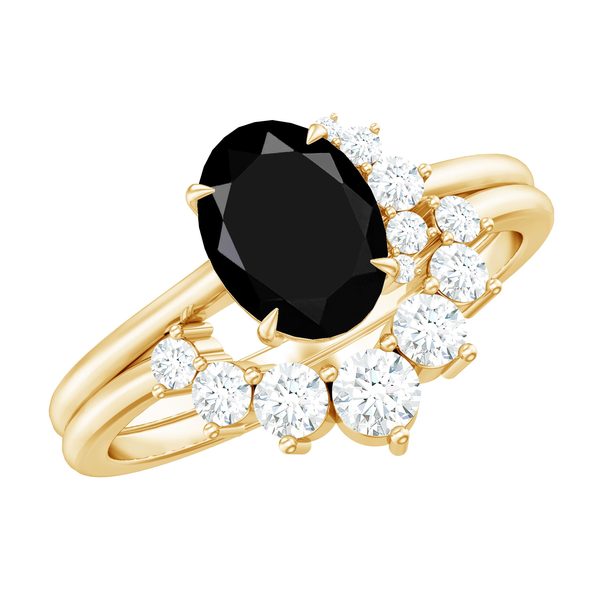 Crafted with elegance, this Engagement Ring Set features Oval Cut Lab Created Black Diamond and Round Diamonds while the enhancer ring is decorated with Round Diamonds. The Ring Set is crafted with Solid Metal. Express your love without saying much by presenting her with this captivating Wedding Ring Set to make her even happier.