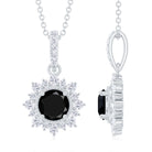 Created Black Diamond Pendant Necklace With Diamond Halo