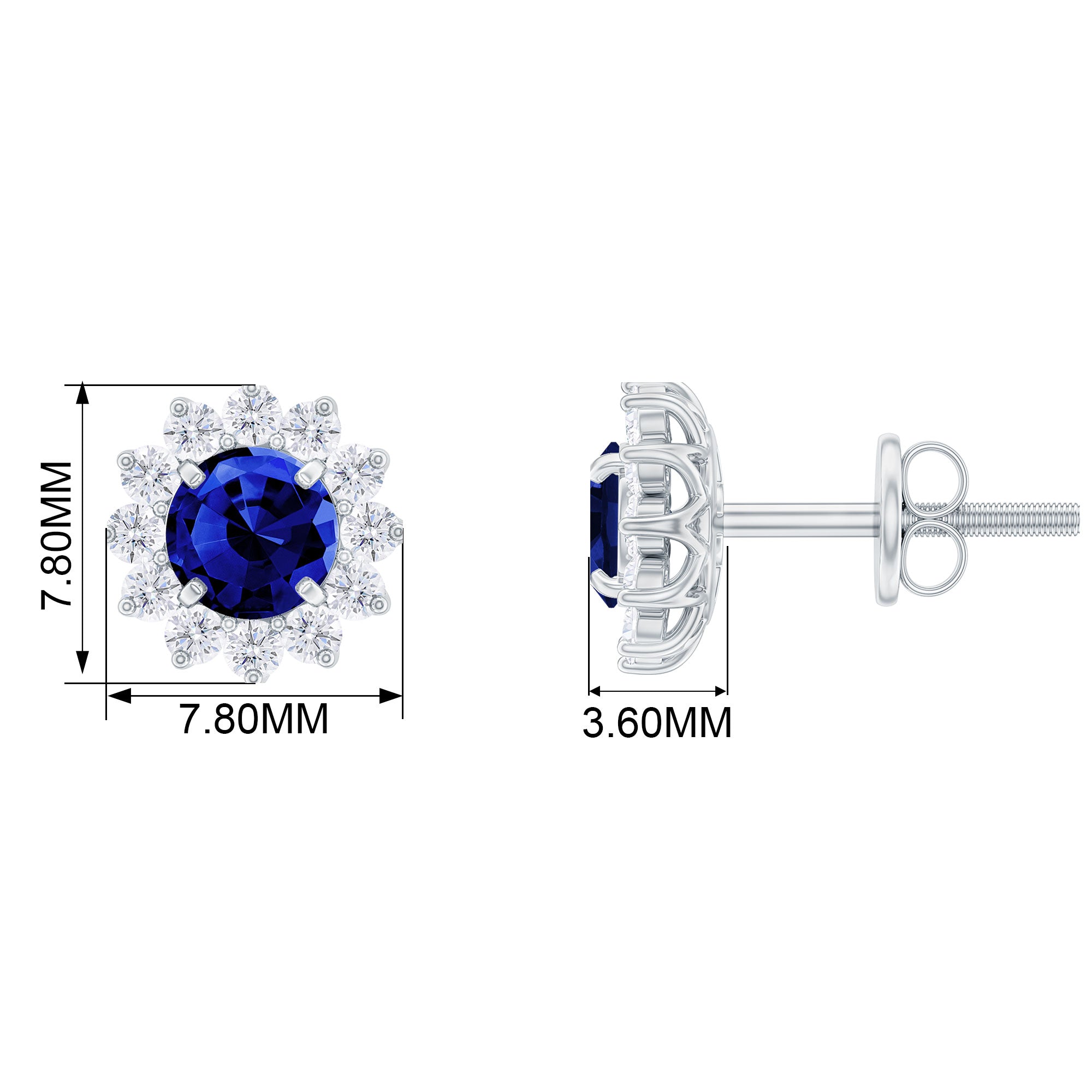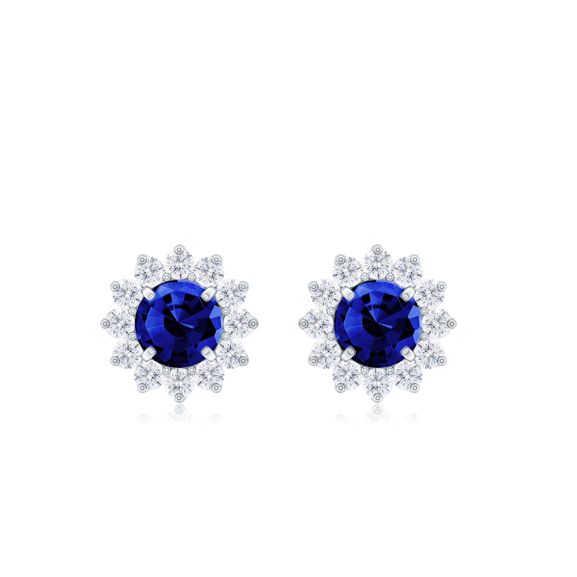 Created Blue Sapphire and Diamond Floral Halo Stud Earrings