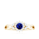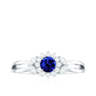 Created Blue Sapphire and Diamond Flower Engagement Ring with Split Shank