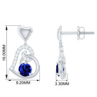 Created Blue Sapphire and Diamond Heart Drop Earrings
