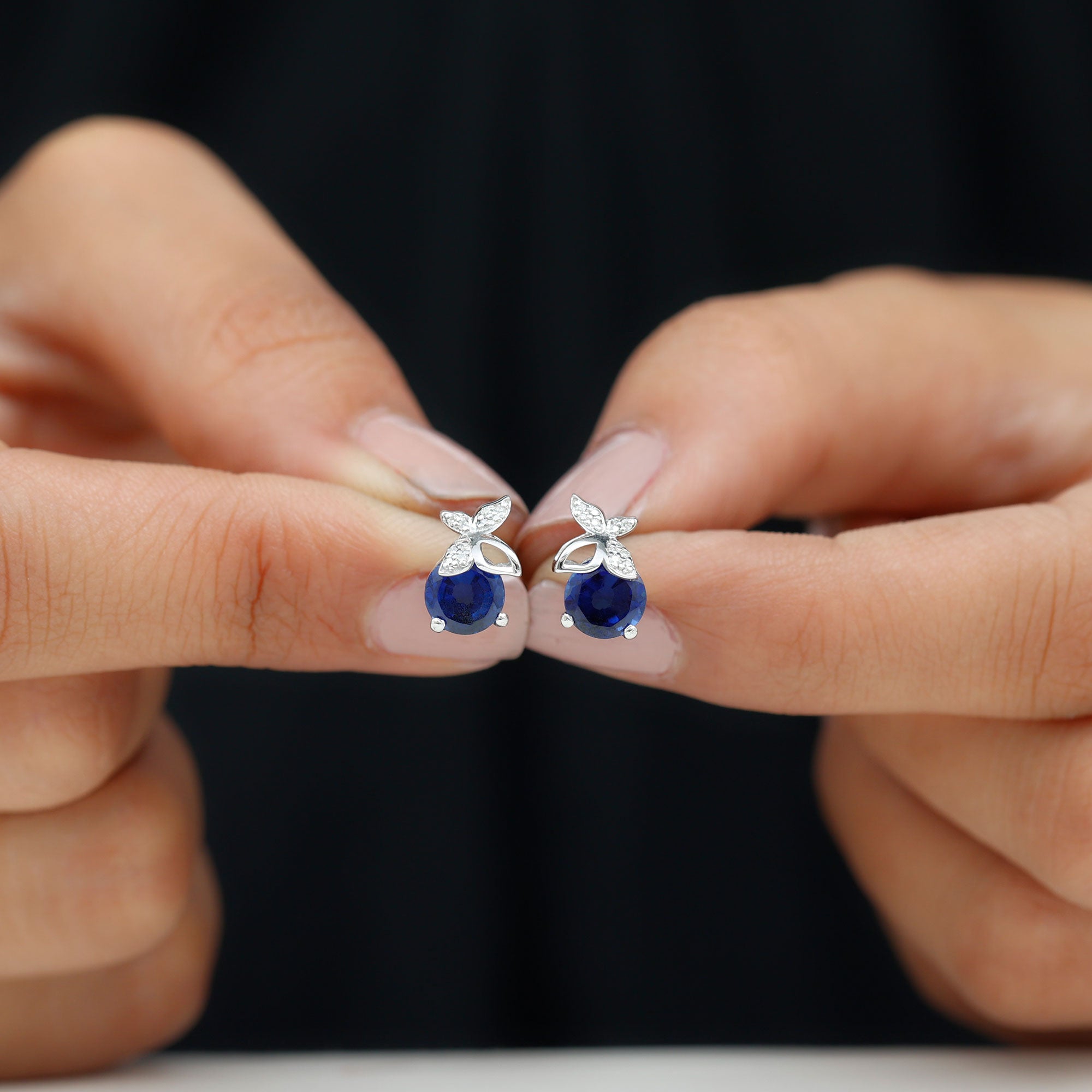 Add a touch of whimsy to your jewelry collection with these Butterfly Stud Earrings featuring a Round Created Blue Sapphire and a sparkling Moissanite Butterfly on the top. Crafted in gold, these created sapphire earrings are both elegant and playful, making them the perfect accessory for any occasion.