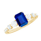 Elevate your style and stand out with this captivating Created Blue Sapphire Ring. The Octagon Cut Created Blue Sapphire shines elegantly in a secure prong setting, complemented by the brilliance of Diamond on the solitaire engagement ring. This bespoke piece of jewelry is sure to make a lasting impression and add a touch of sophistication to any look.