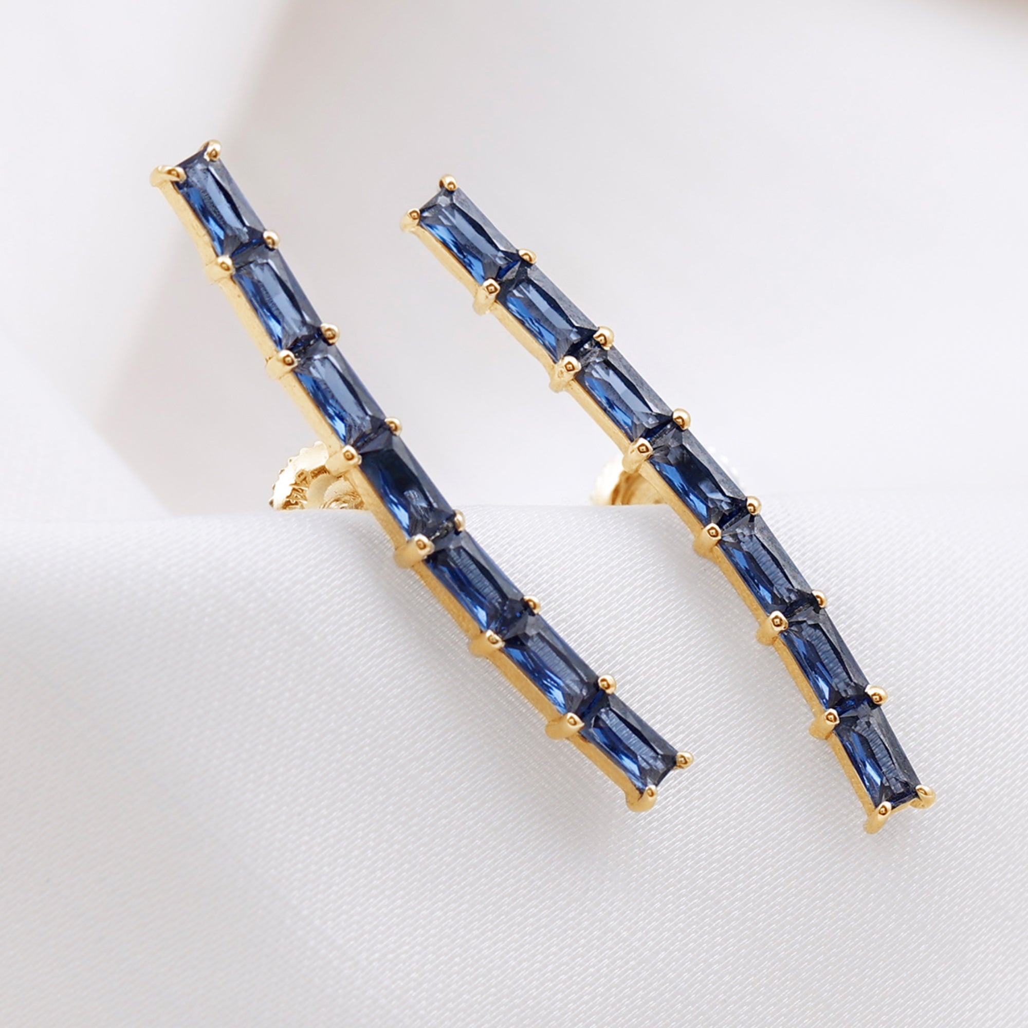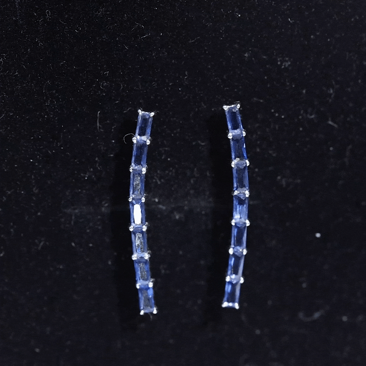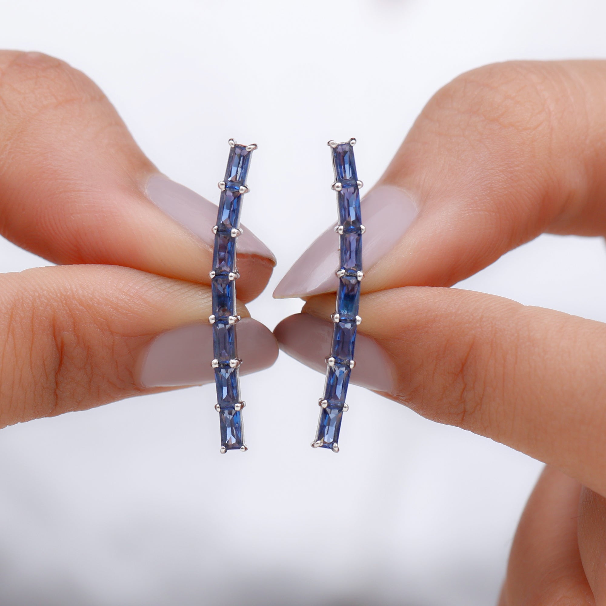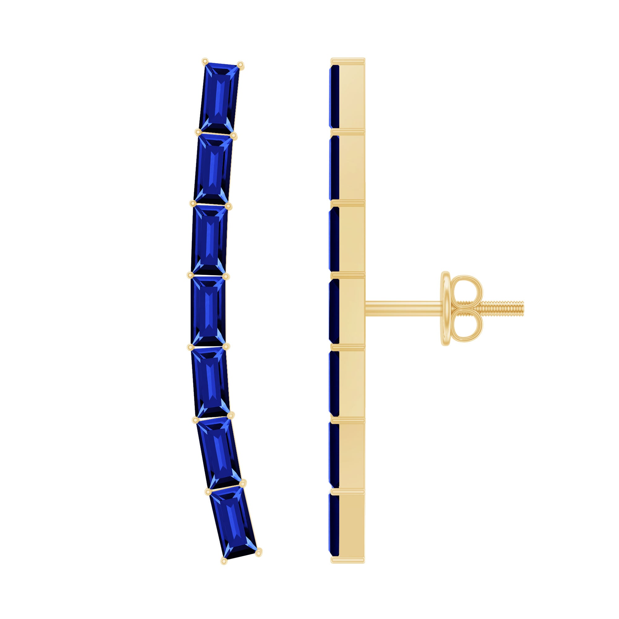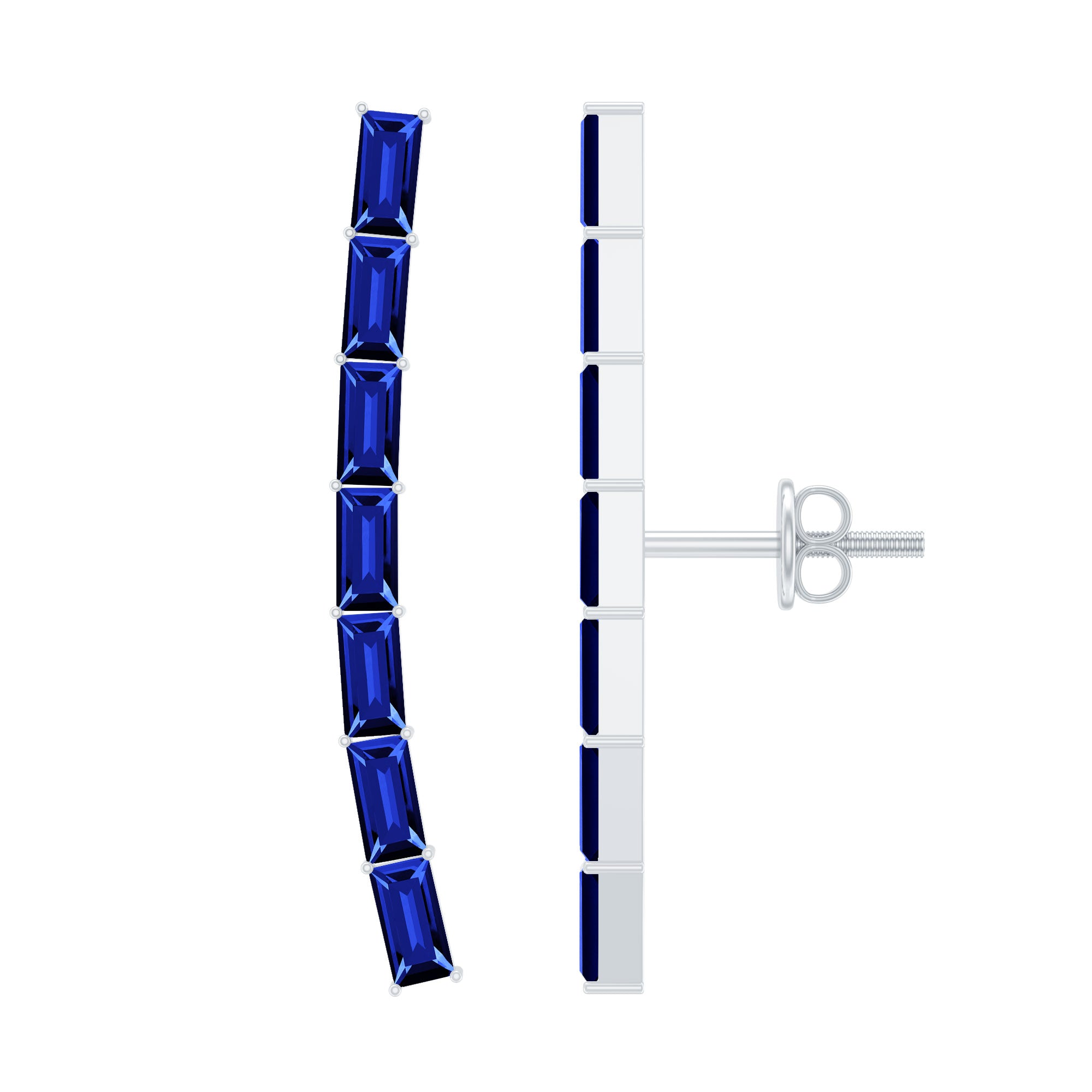 Complete all your looks with these Climber Earrings, a glamorous accessory for your everyday look. Feature baguette lab created blue sapphire held in prong setting. Create a unique style statement with these Blue Sapphire Earrings meticulously crafted in solid metal showcasing a combination of sophistication and elegance.