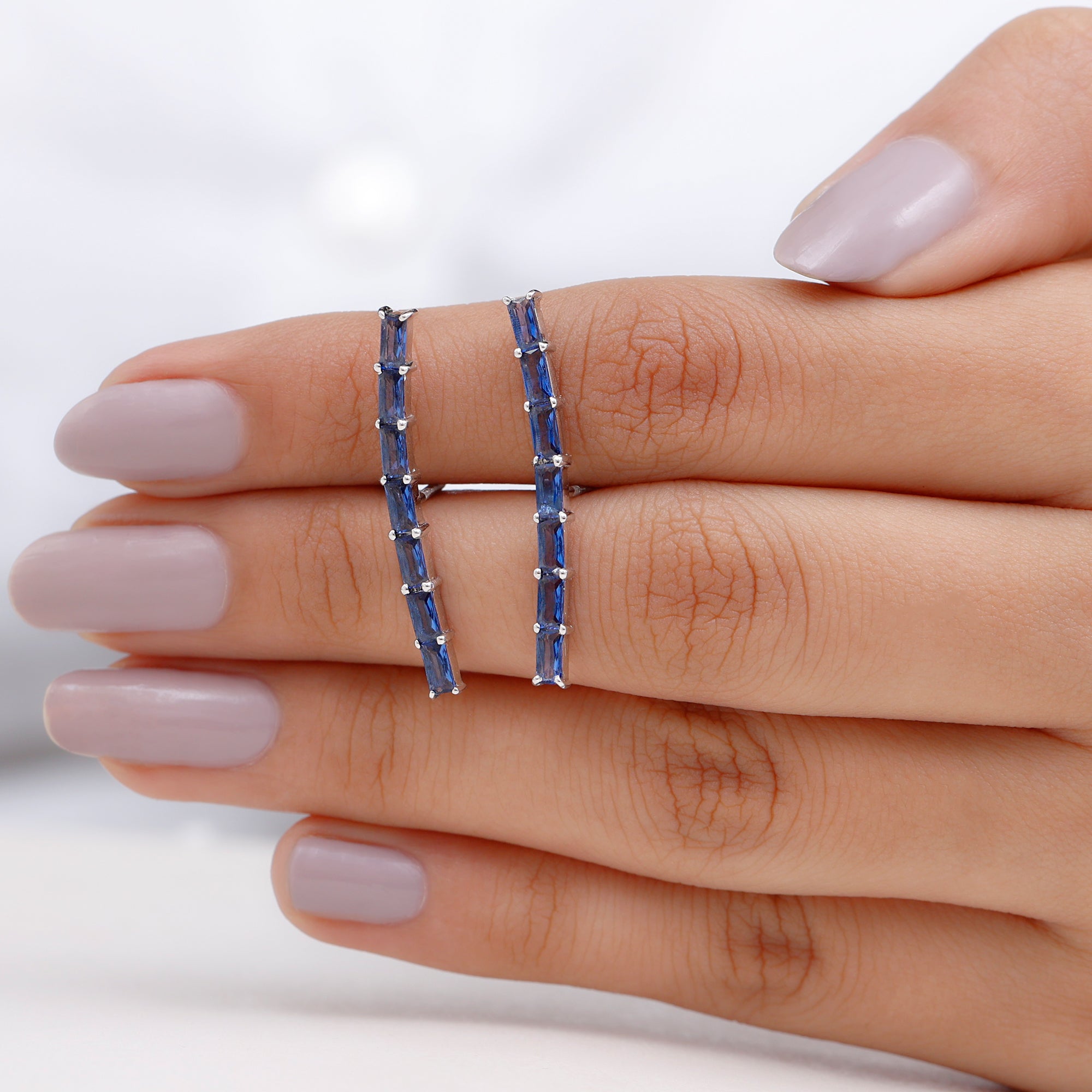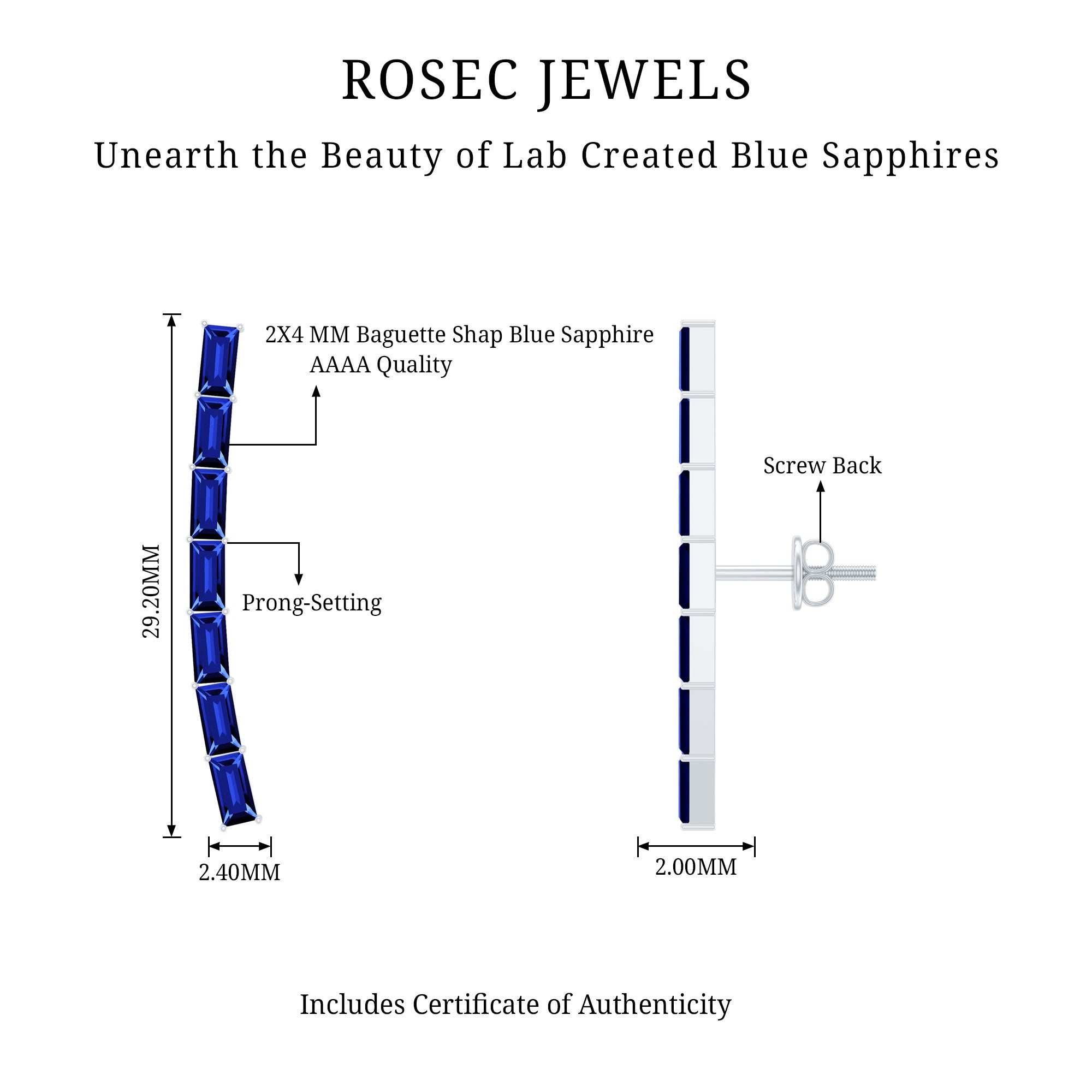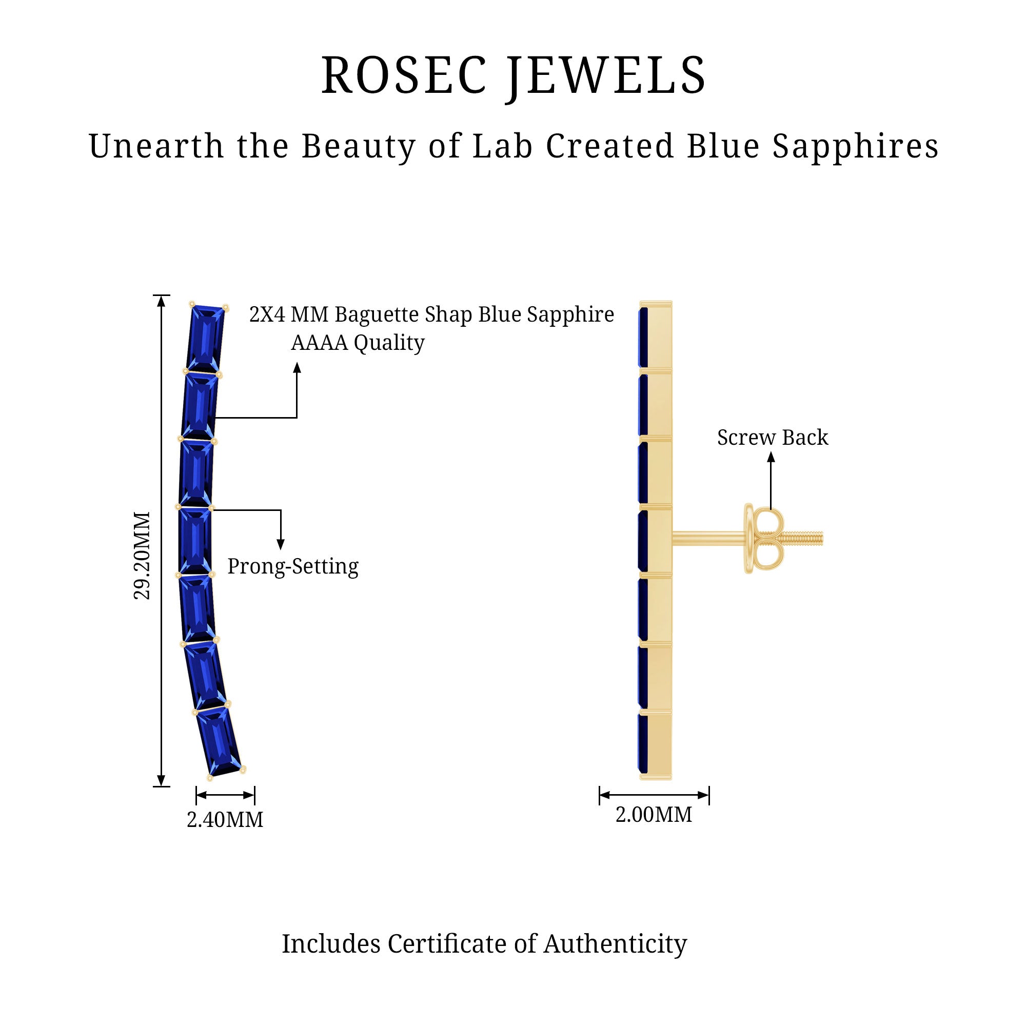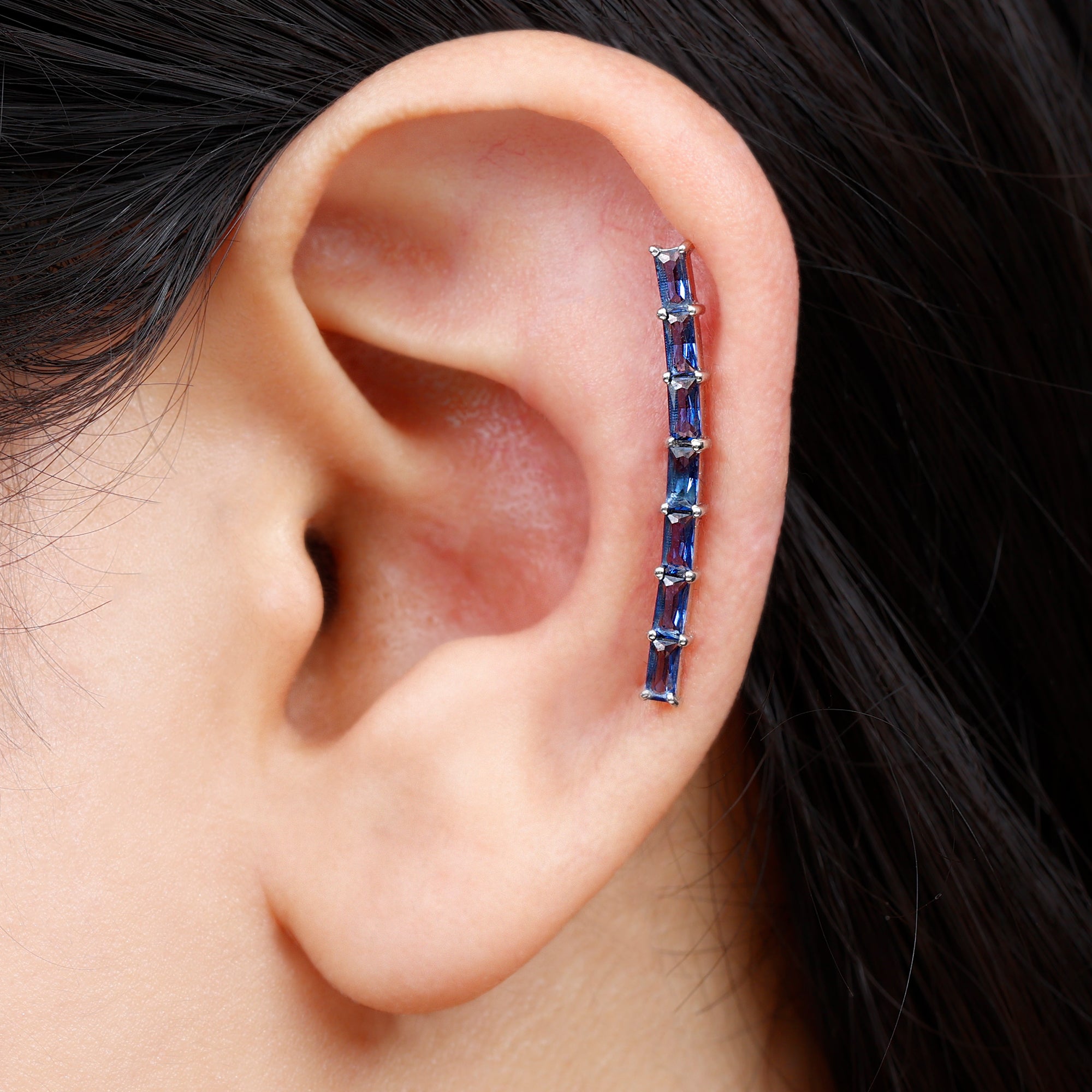 Complete all your looks with these Climber Earrings, a glamorous accessory for your everyday look. Feature baguette lab created blue sapphire held in prong setting. Create a unique style statement with these Blue Sapphire Earrings meticulously crafted in solid metal showcasing a combination of sophistication and elegance.