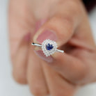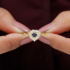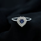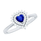 Created Blue Sapphire Heart Engagement Ring with Diamond Double Halo