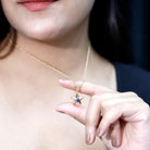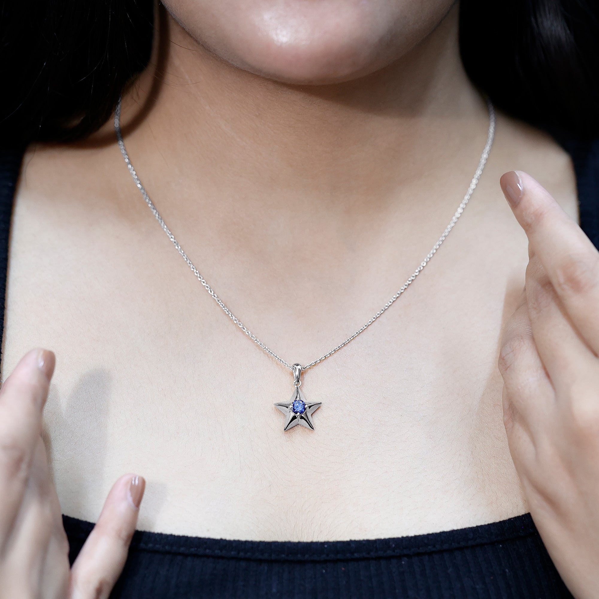 Adorn yourself with celestial charm with this exquisite Star Pendant. The pendant is adorned with a captivating Round Shape Created Blue Sapphire, lending it an enchanting allure. This pendant embodies elegance and sophistication. The Created Blue Sapphire Star Pendant is a delightful piece that will surely captivate any woman who wears it. Allow its adorable design to add a touch of magic and beauty to your collection of jewelry.