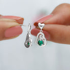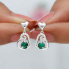 Created Emerald Heart Drop Earrings with Diamond Accent