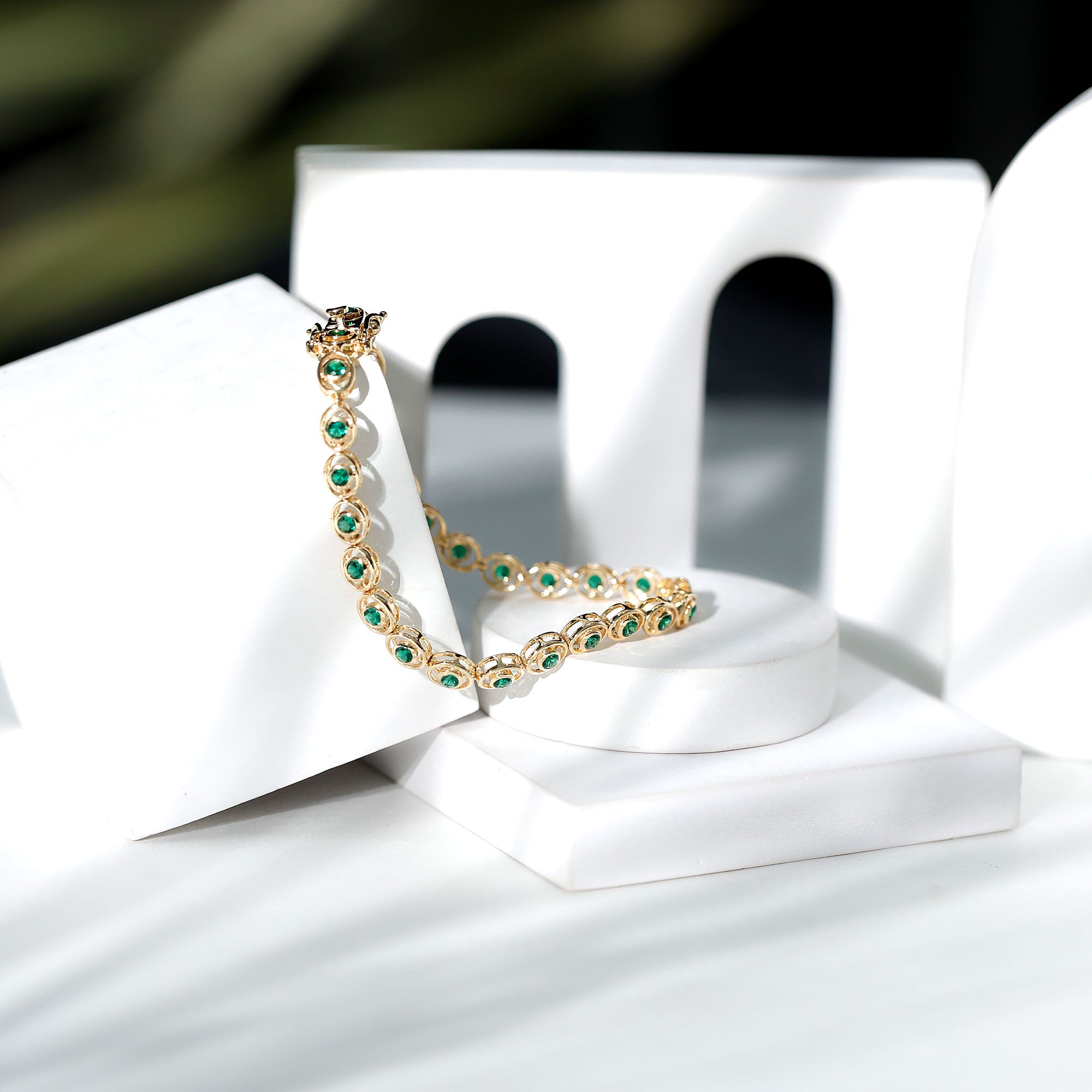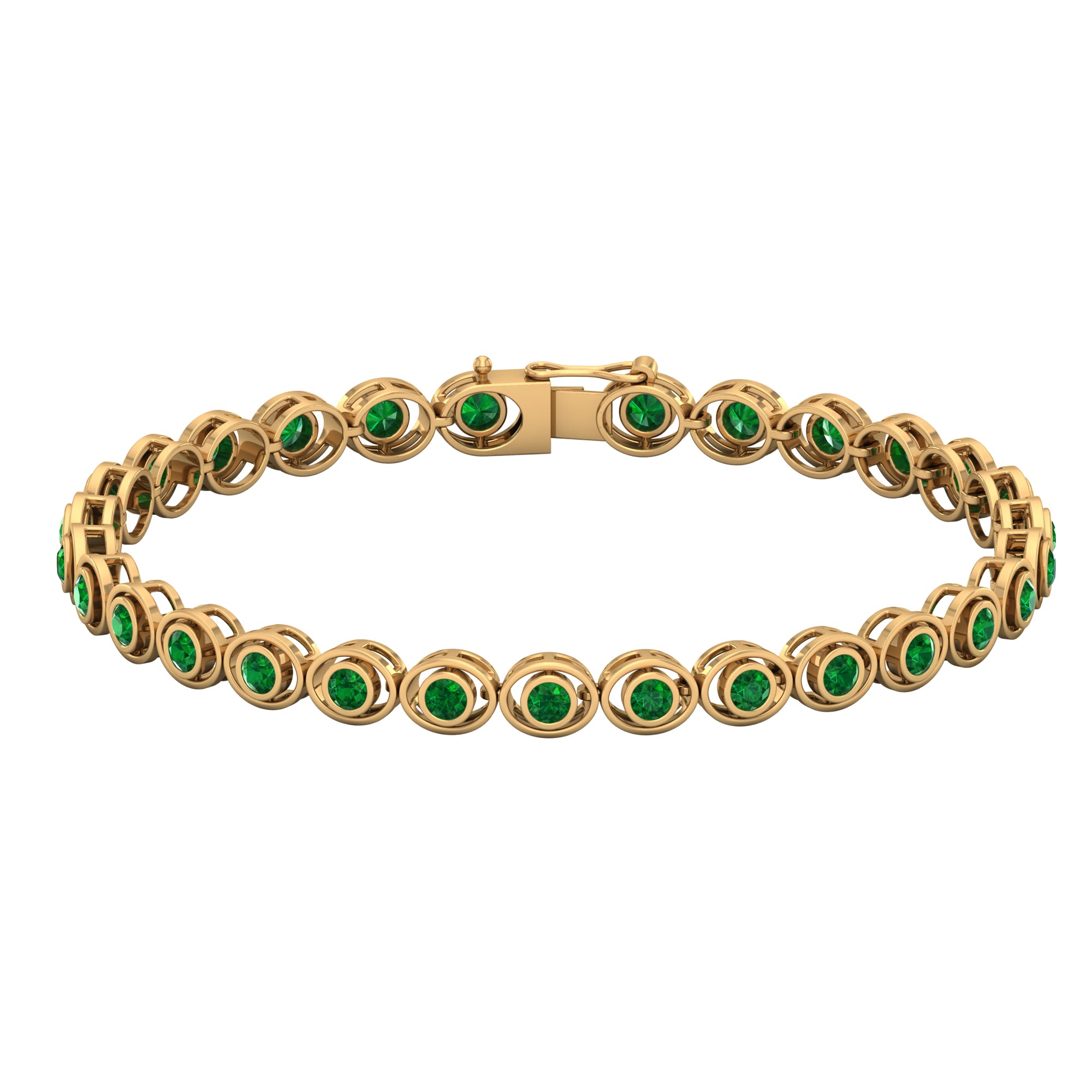 The Tennis Bracelet is a trendy jewelry piece that will magnify the charm of your wrist embellished with a sparkling Round Cut Lab Created Emerald set in Bezel Setting. Whether its your everyday or party attire, the Created Emerald Bracelet will never let you down. This Minimal Bracelet makes a sparkly accessory for your jewelry wardrobe.