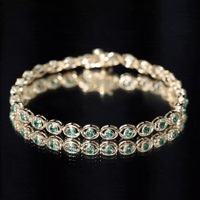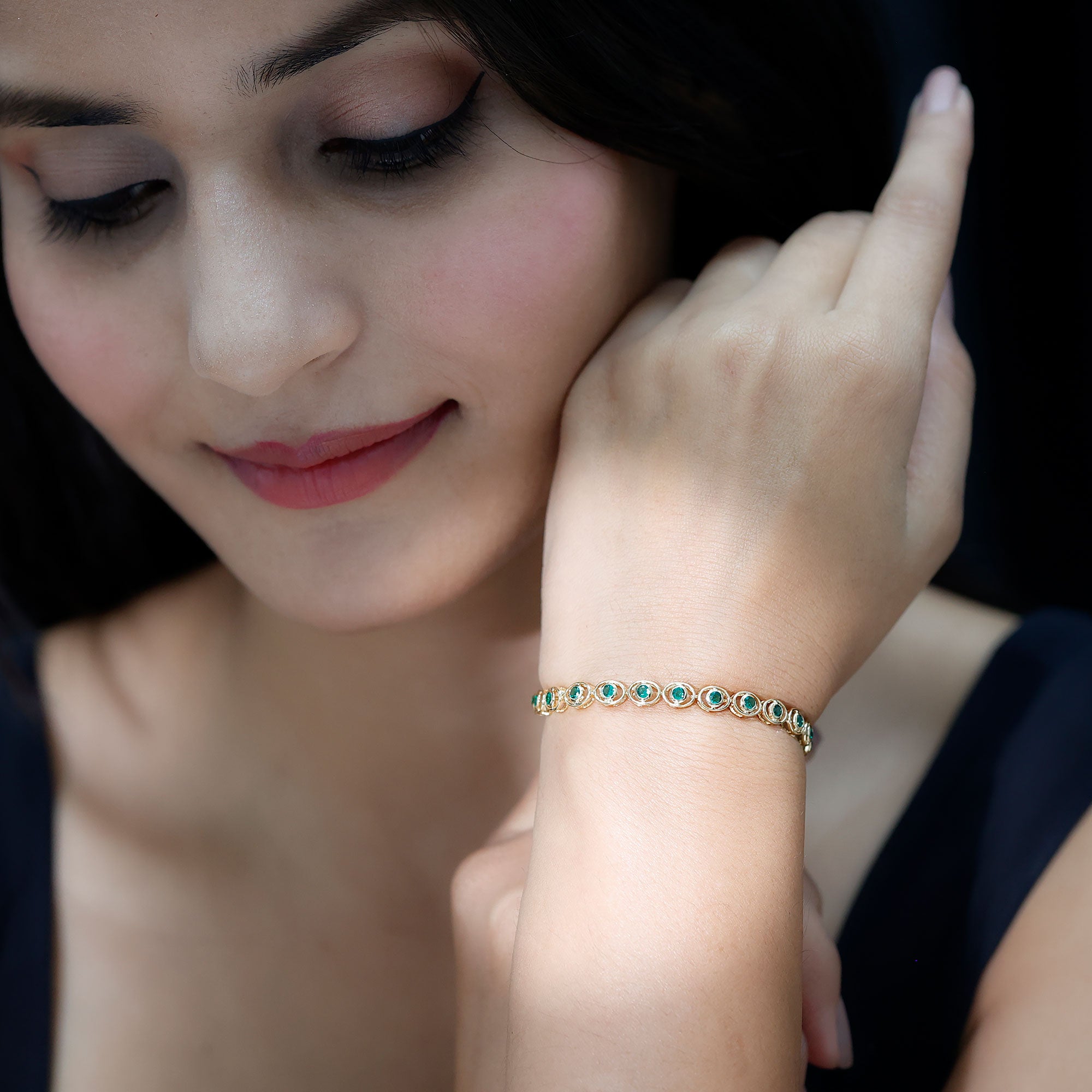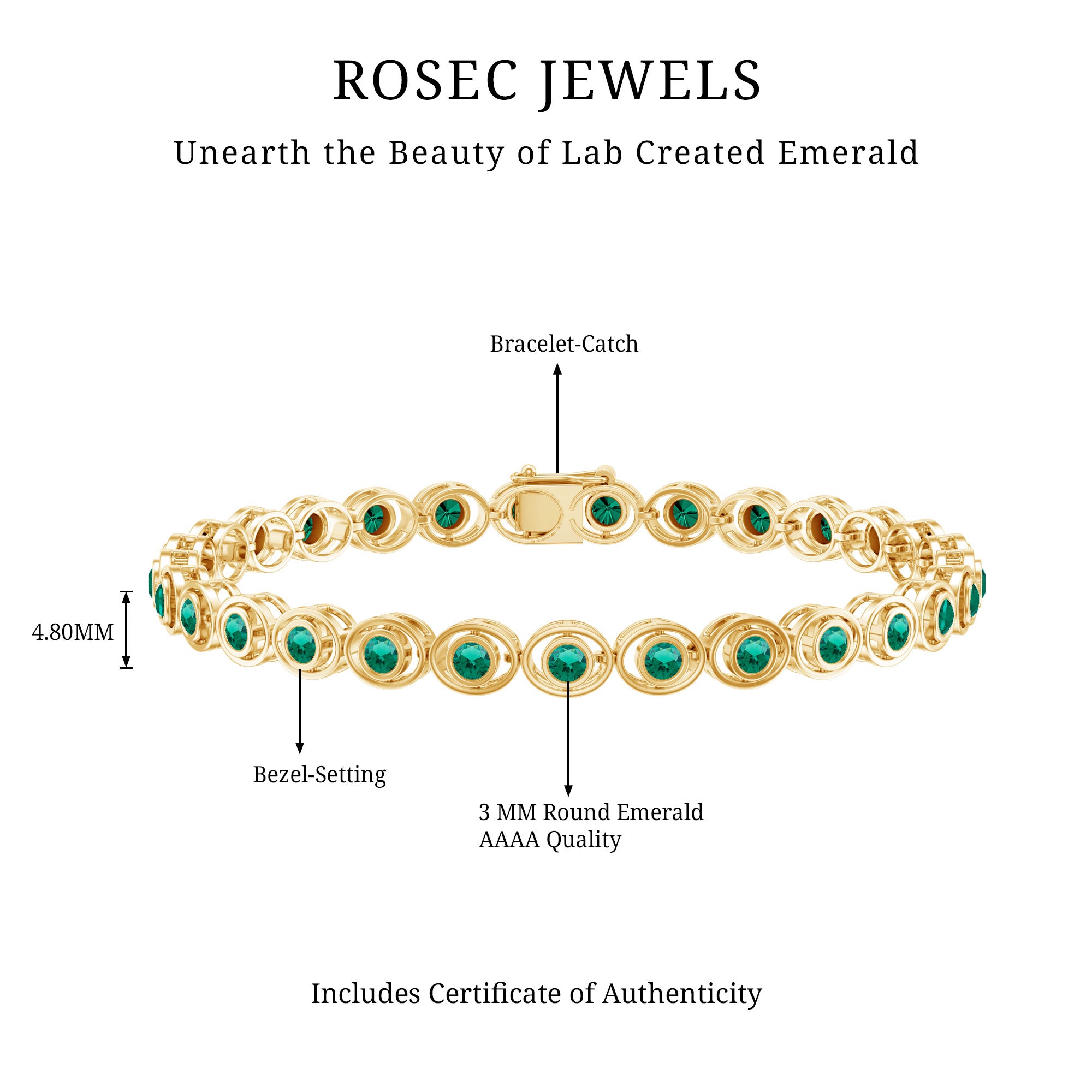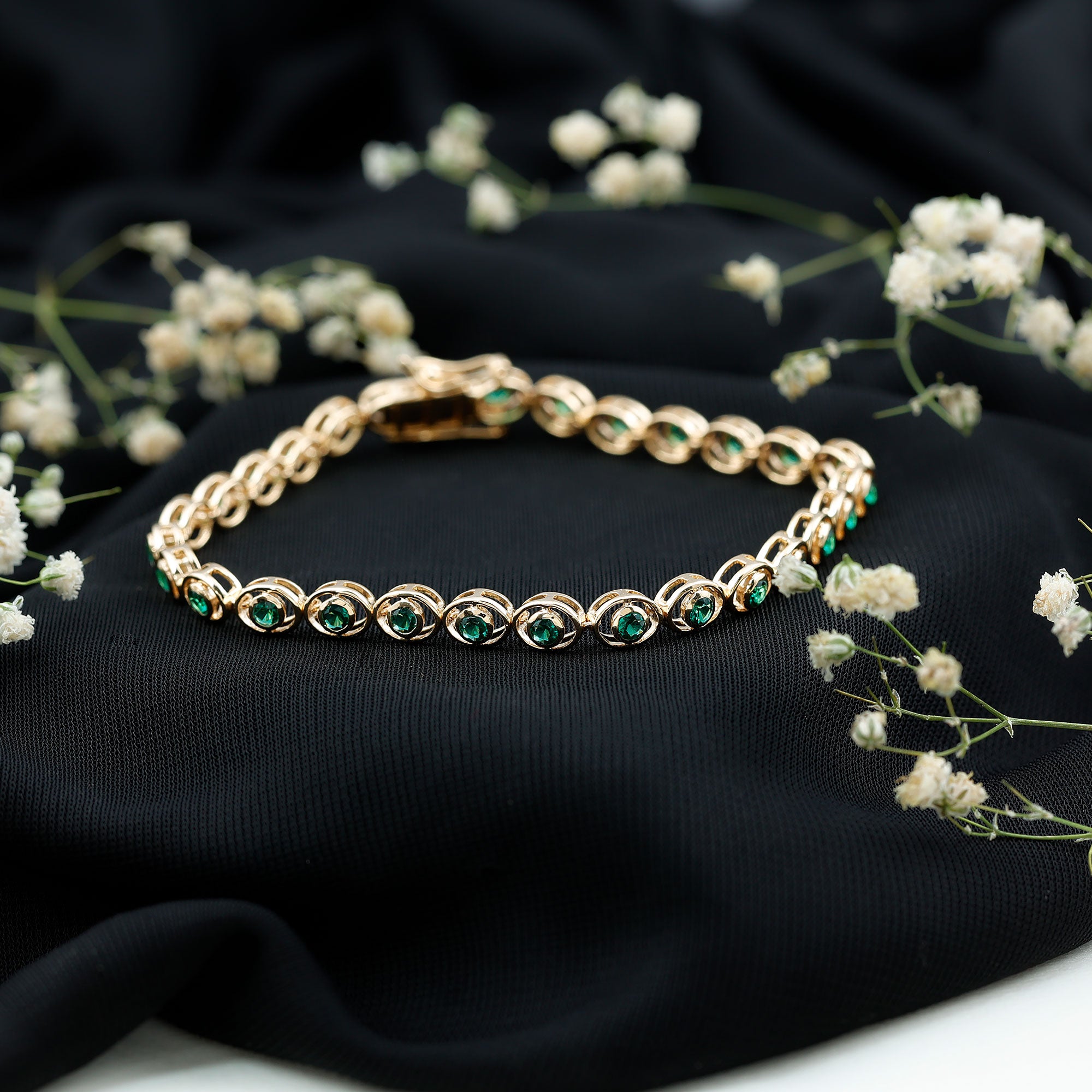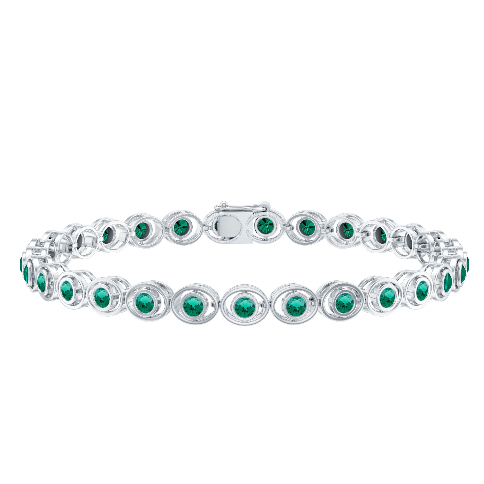 The Tennis Bracelet is a trendy jewelry piece that will magnify the charm of your wrist embellished with a sparkling Round Cut Lab Created Emerald set in Bezel Setting. Whether its your everyday or party attire, the Created Emerald Bracelet will never let you down. This Minimal Bracelet makes a sparkly accessory for your jewelry wardrobe.