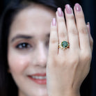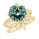 Immerse yourself in the enchanting romance of the Floral Ring Set. This captivating set unveils a solitaire engagement ring adorned with a mesmerizing floral-inspired design, showcasing a breathtaking 10 mm Round Shape Lab Created Green Sapphire as Solitary as its centerpiece. The band is adorned with sparkling brilliant cut Moissanite, gracefully enhancing its allure. This Lab Sapphire Wedding Ring Set perfectly complements the engagement ring, resulting in a harmonious and mesmerizing combination. Experience the timeless charm and elegance of this Flower Engagement Ring Set, creating an unforgettable symbol of love and commitment for your special day.