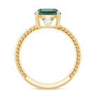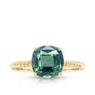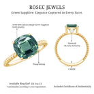 Celebrate your love with this Engagement Ring, embellished with Cushion Cut Lab Created Green Sapphire as a Solitaire in 4 Prong Setting and features Surprise Diamond on the bridge of the ring secured in Bezel Setting. The Twisted Rope Shank gives it a unique and eye-catching look. Adorn her finger with this Created Green Sapphire Ring, by presenting it as a Birthday Gift for Her or an Anniversary Gift.