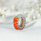 The Created Orange Sapphire Conch Hoop Earring features Baguette Cut Lab Created Orange Sapphire secured in Prong Setting on a gold hoop frame. You can style this Gold Hoop Earring on your Helix, Cartilage, or Conch Piercing. This Huggie Hoop Earring is a versatile earring that will flawlessly complement her casual or party attire.