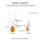 Created Orange Sapphire Teardrop Pendant Necklace with Moissanite