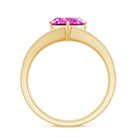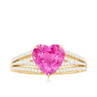 The Heart Engagement Ring is beautifully adorned with Heart Shaped Lab Created Pink Sapphire secured in Claw Setting while Round Shape Diamond studded on the split shank. Get this Created Pink Sapphire Ring to make your favorite person feel extra special by presenting it as an anniversary gift for her.