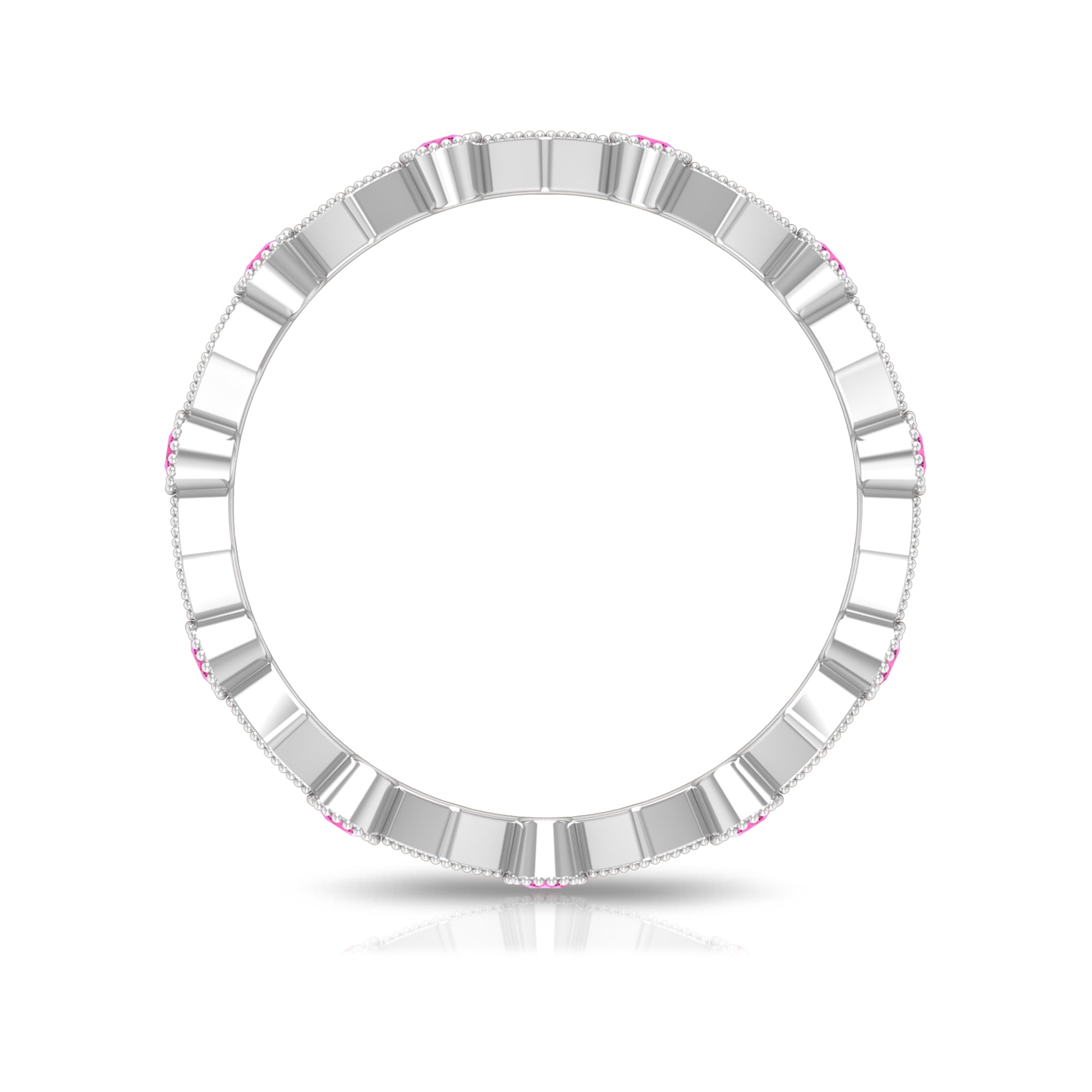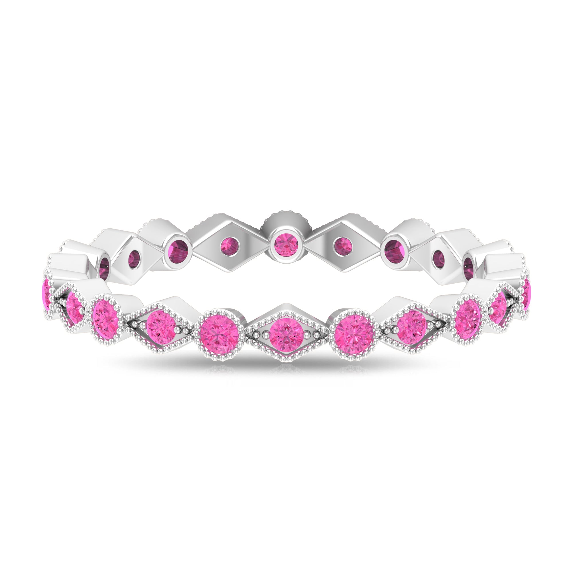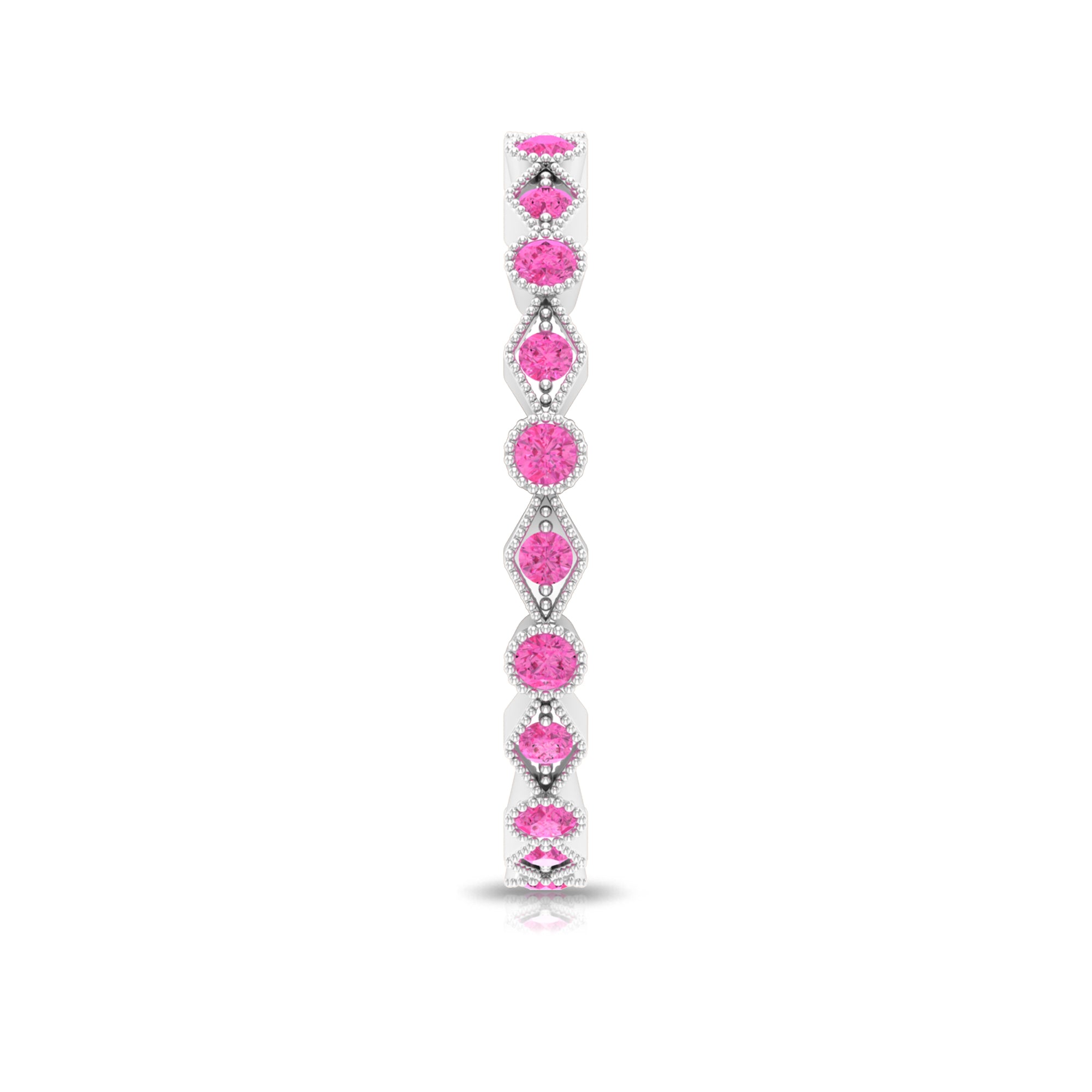 Created Pink Sapphire Stackable Eternity Ring with Beaded Shank