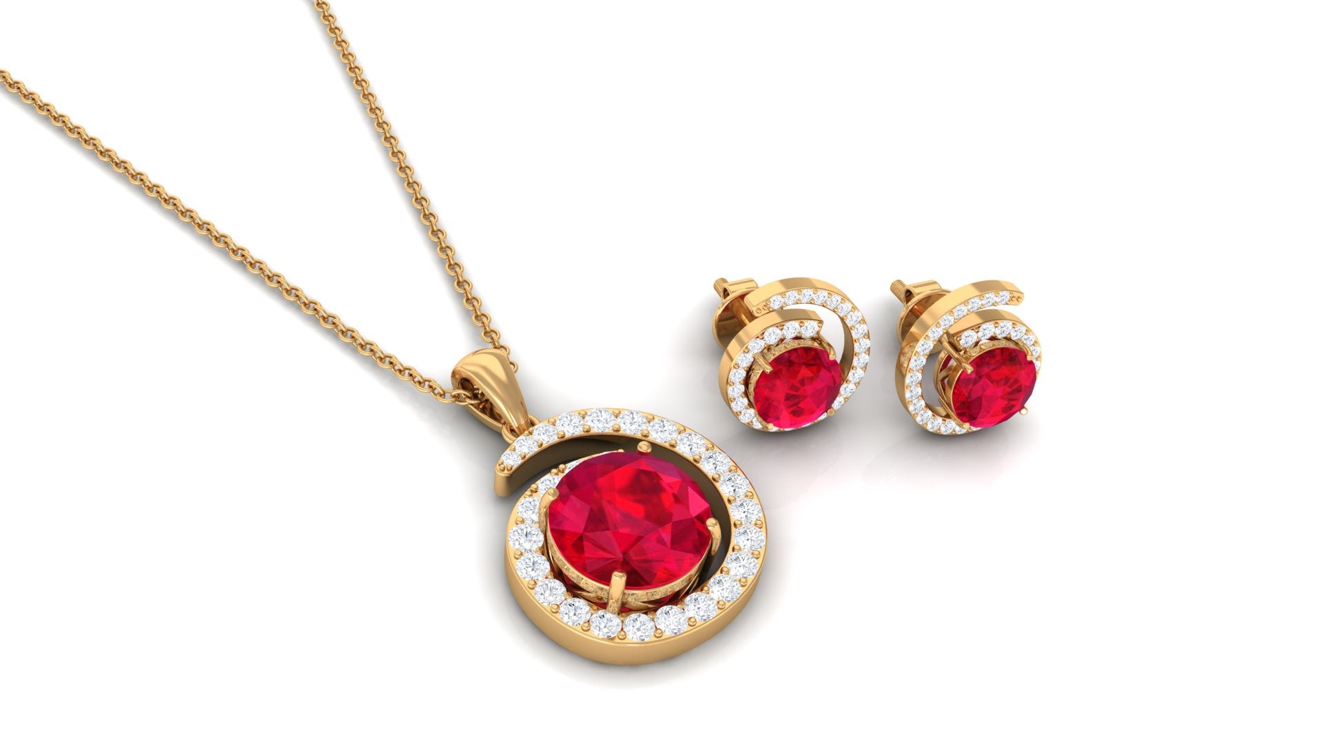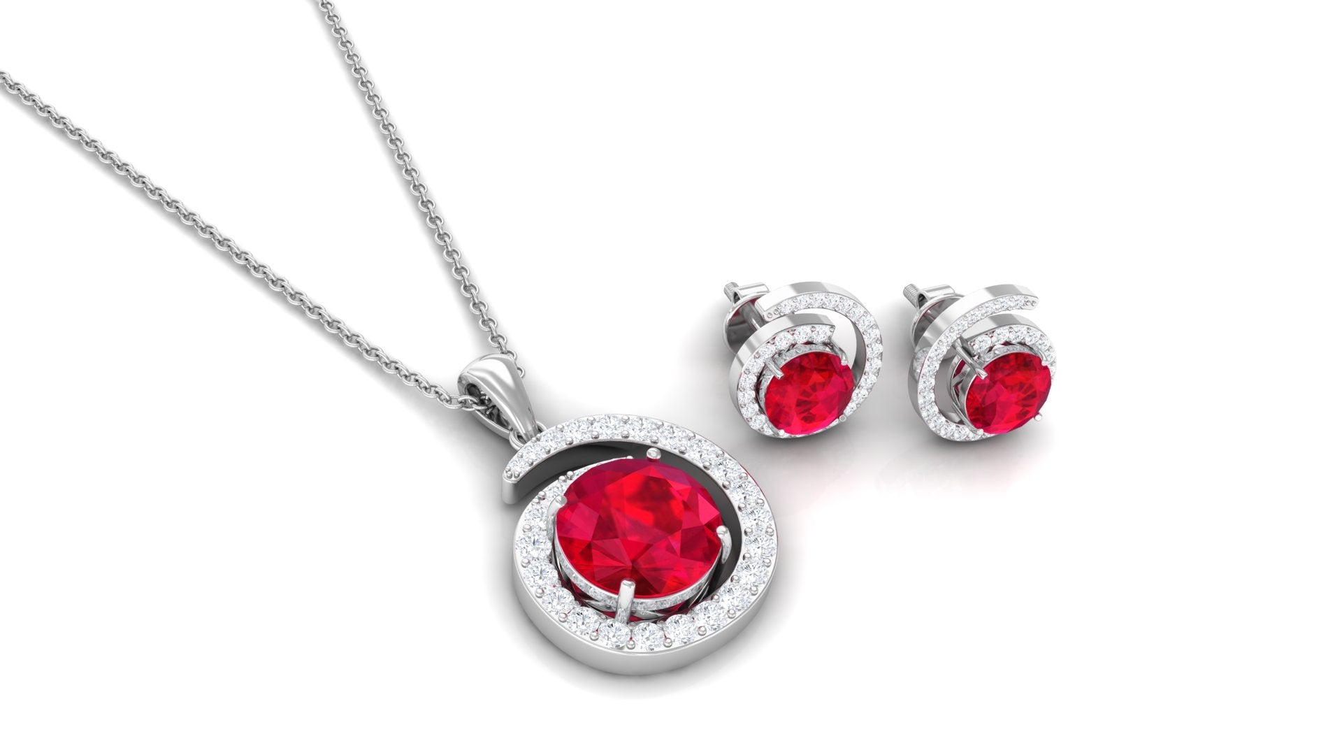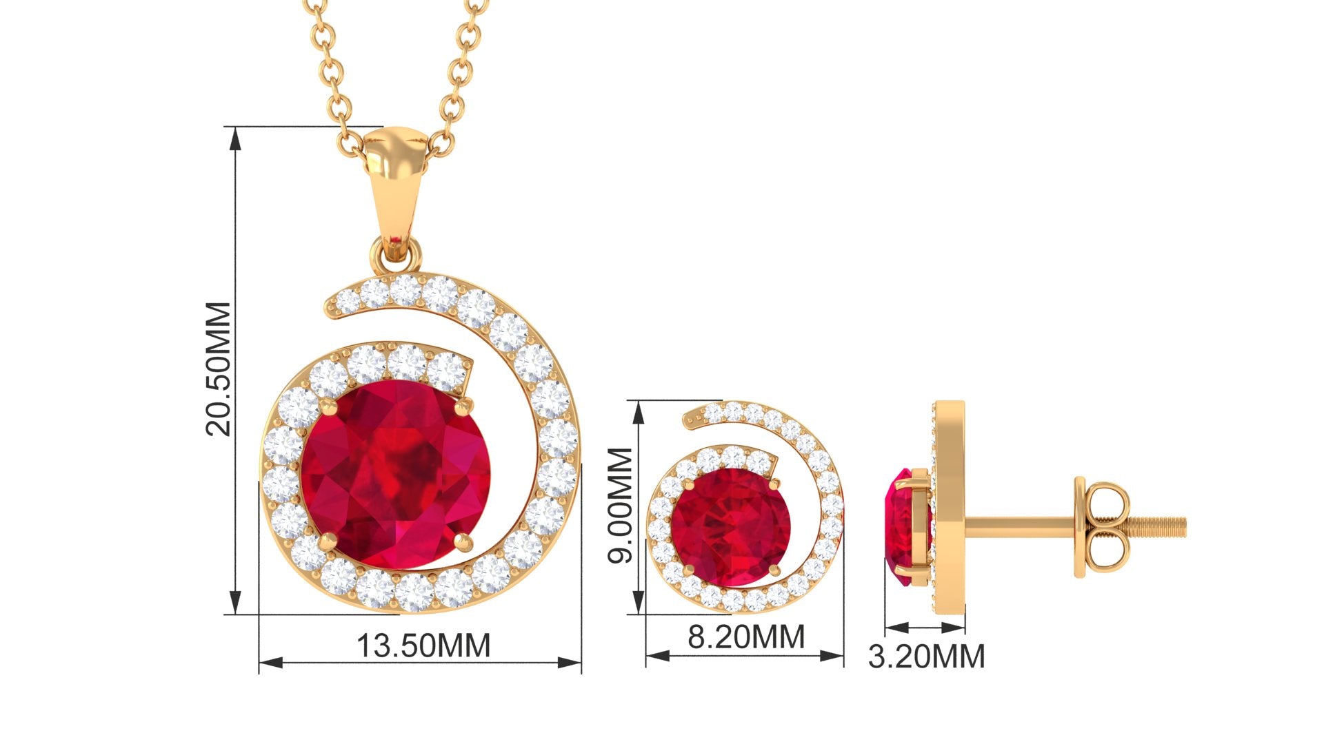 Created Ruby and Moissanite Swirl Pendant and Earrings Set