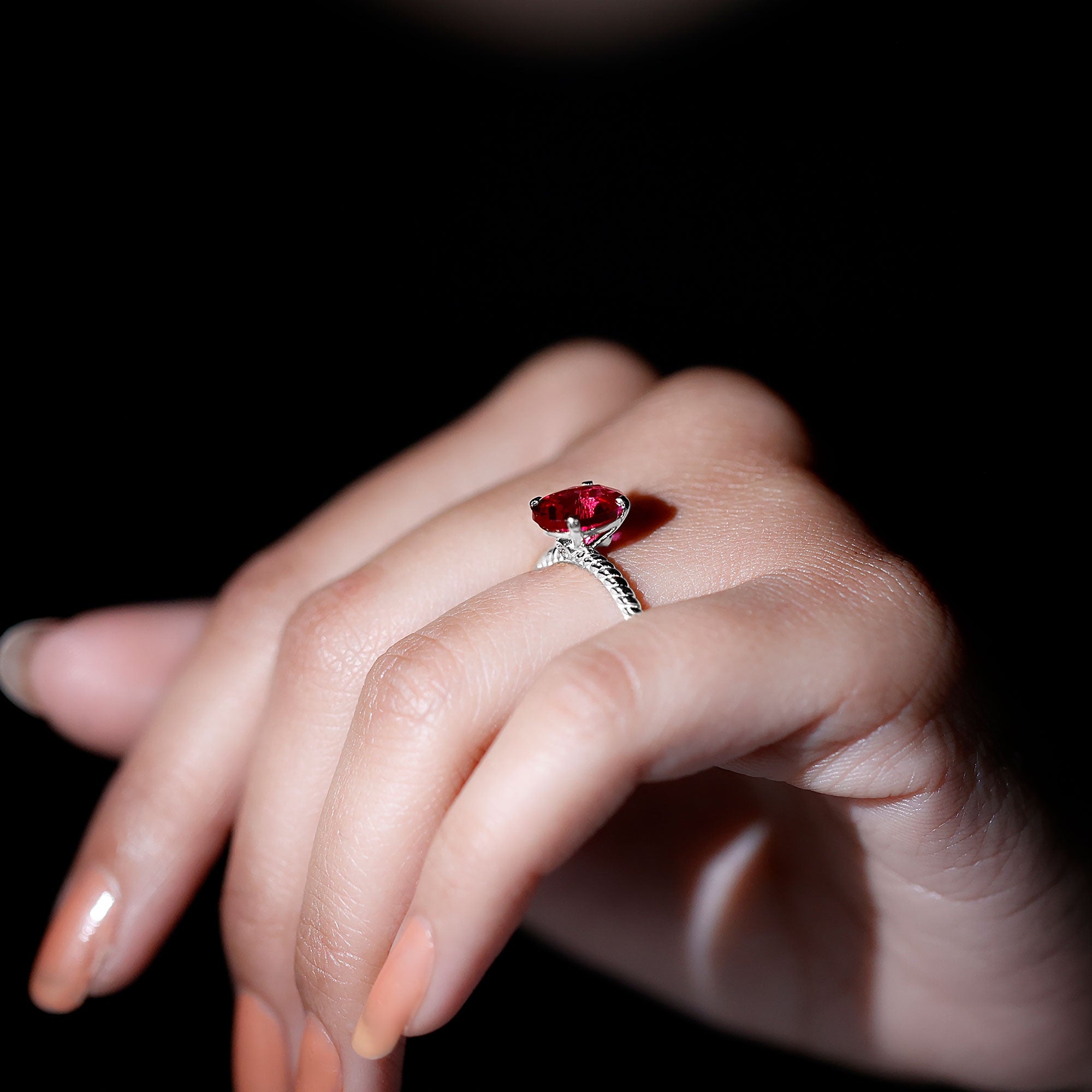 Immerse yourself in the timeless elegance of this Solitaire Ring, where a twisted rope shank beautifully embraces an enchanting oval center created ruby. Adding a touch of brilliance, the shank holds a sparkling surprise - a bezel-set Round Shape Diamond for an extra dose of sparkle. The ring is elegantly set on a contrasting shank band, exuding a minimalistic charm.