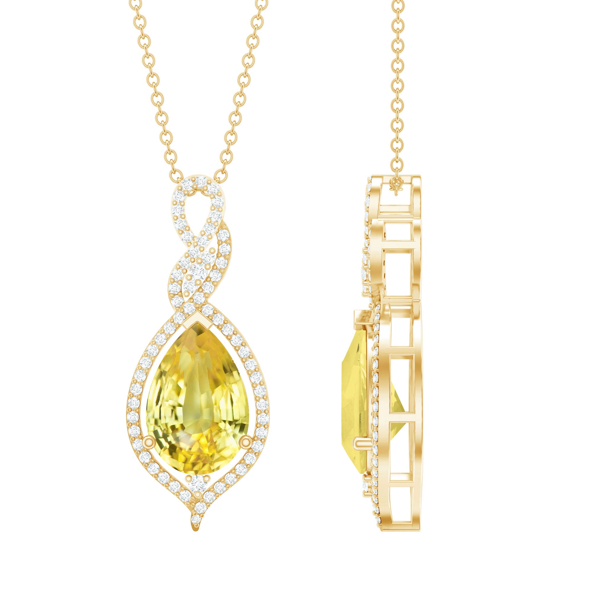 Discover the exquisite charm of the Teardrop Pendant, radiating a timeless elegance that captivates. The pear-shaped created yellow sapphire effortlessly enchants, accompanied by brilliant Diamond stones that infuse a mesmerizing sparkle. With a graceful suspension, this pendant transforms into the perfect accessory, elevating any outfit and making a resounding declaration of sophistication and grace.
