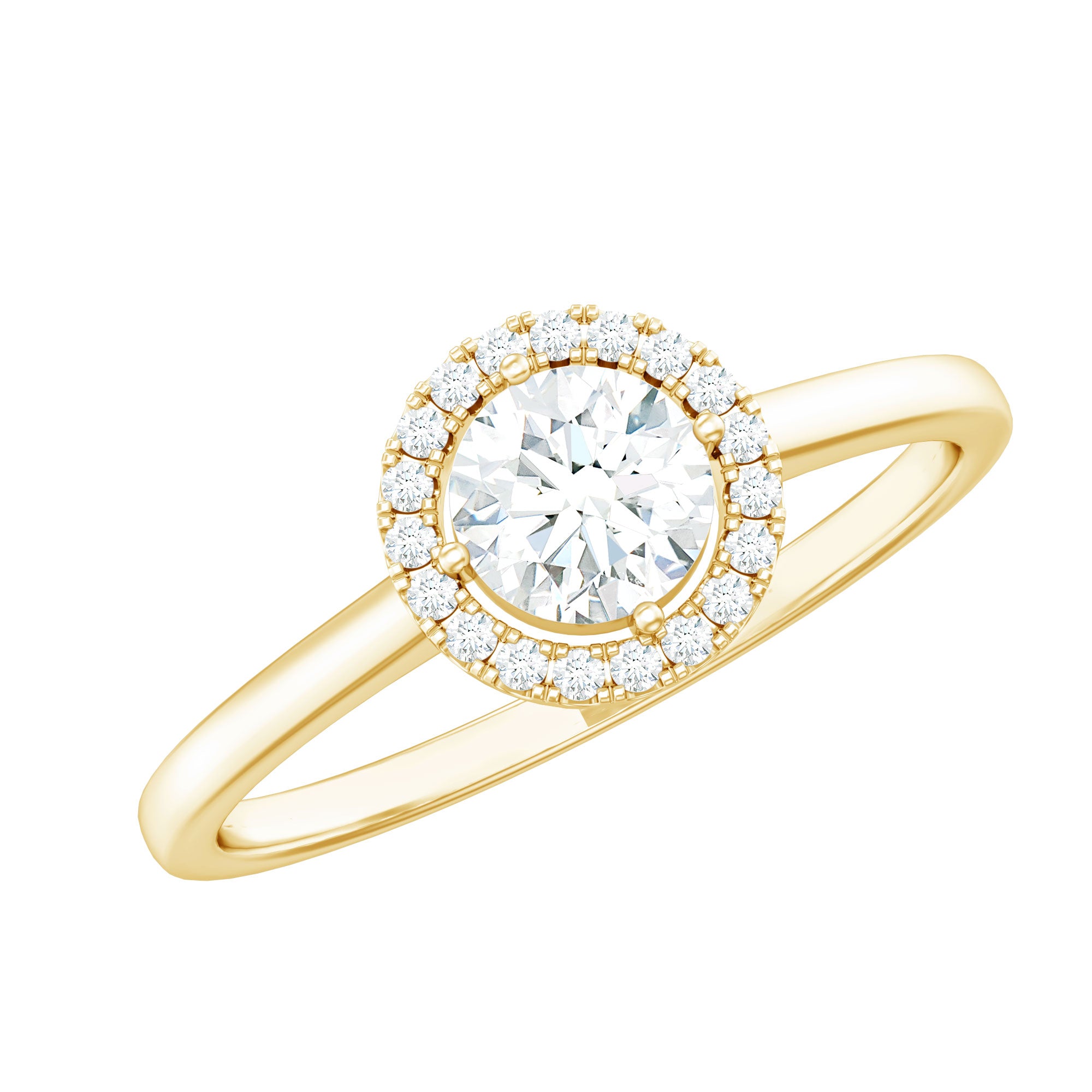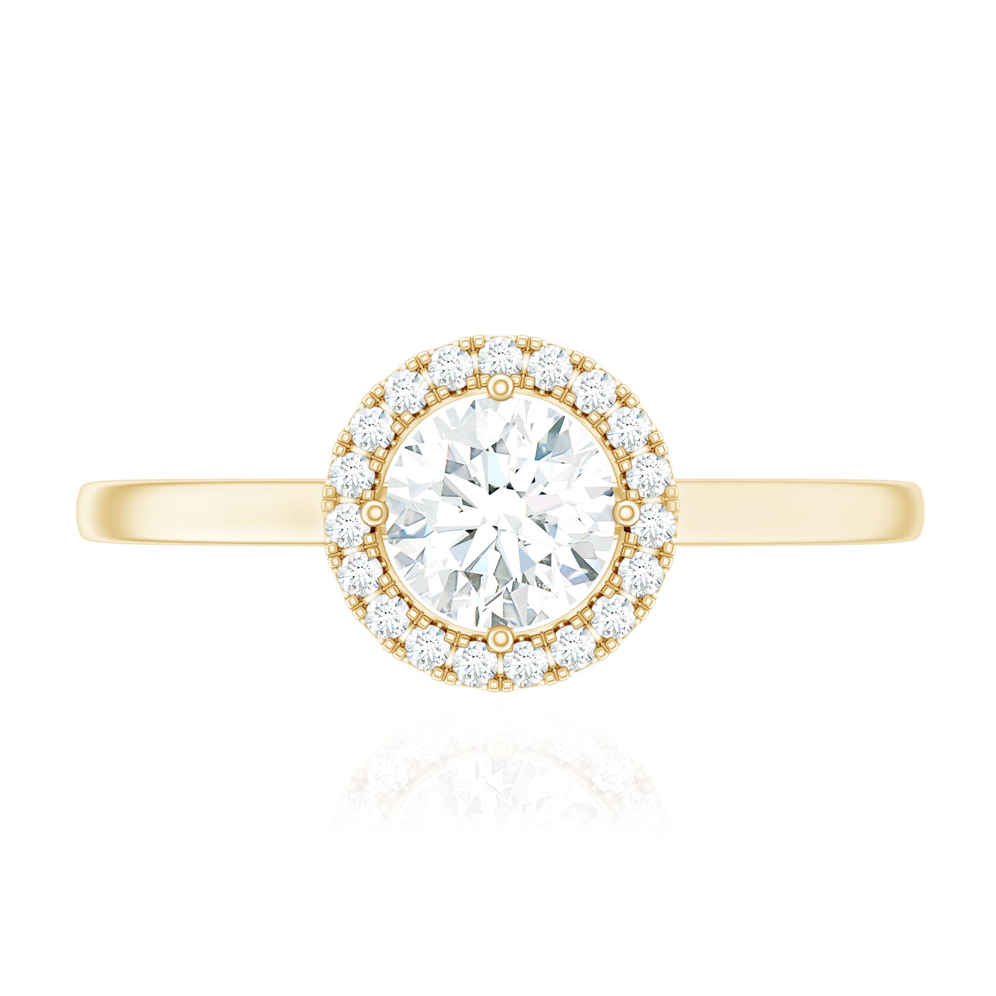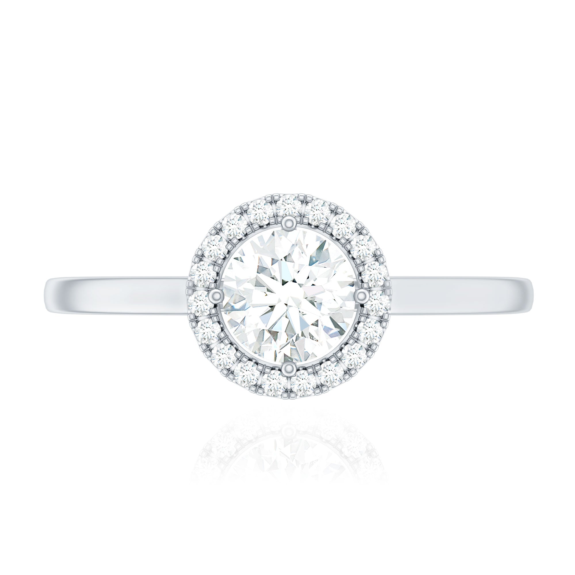This amazing Solitaire Ring is adorned with Round Cut Zircon in Prong Setting with Halo makes it a stunning engagement jewelry for your special day.
