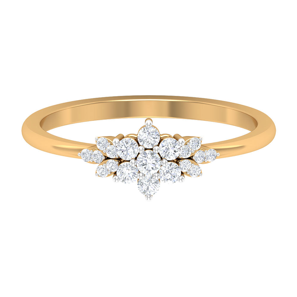 This stylish ring features a flower cluster design in center adorn with round cut zircon in gold shank that extend down the band. Petals of round cut zircon dazzle on the both side of the center flower for an enchanting and unforgettable look. Mark a statement with this lovely Zircon Flower Engagement Ring and make yourself the talk of the town.
