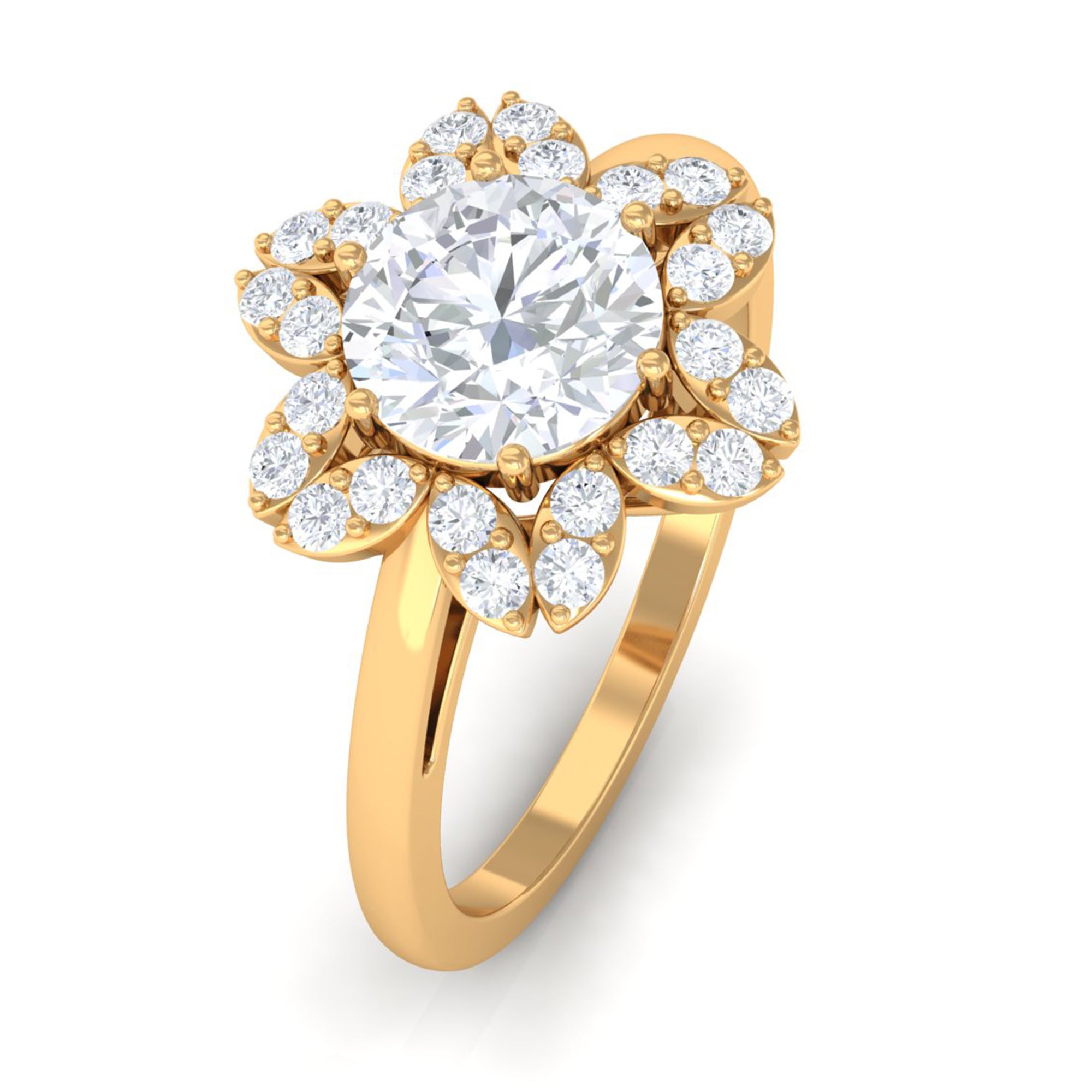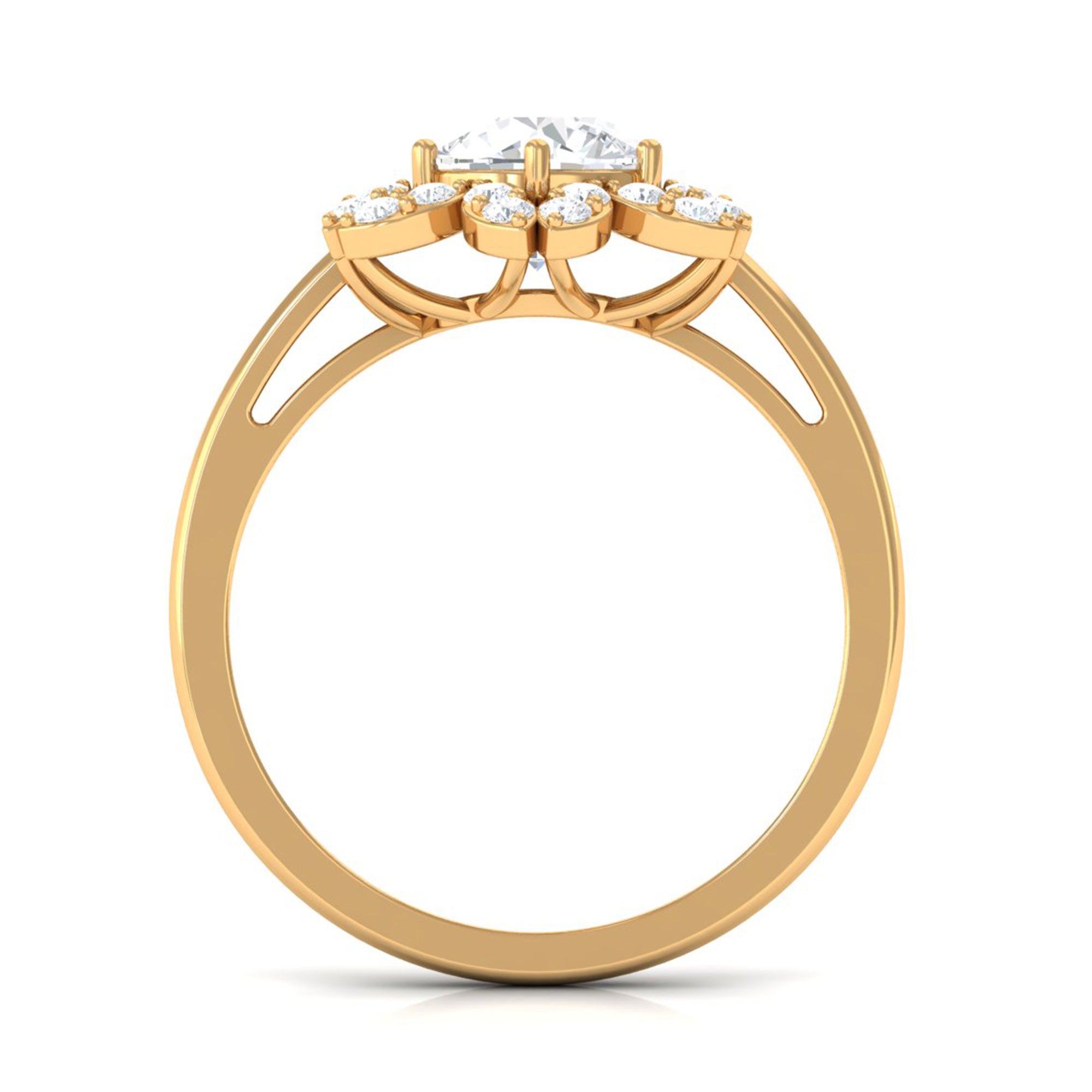 This nature-inspired Floral Ring is adorned with Round Cut Zircon in Prong Setting that perfectly pairs with any other outfit.