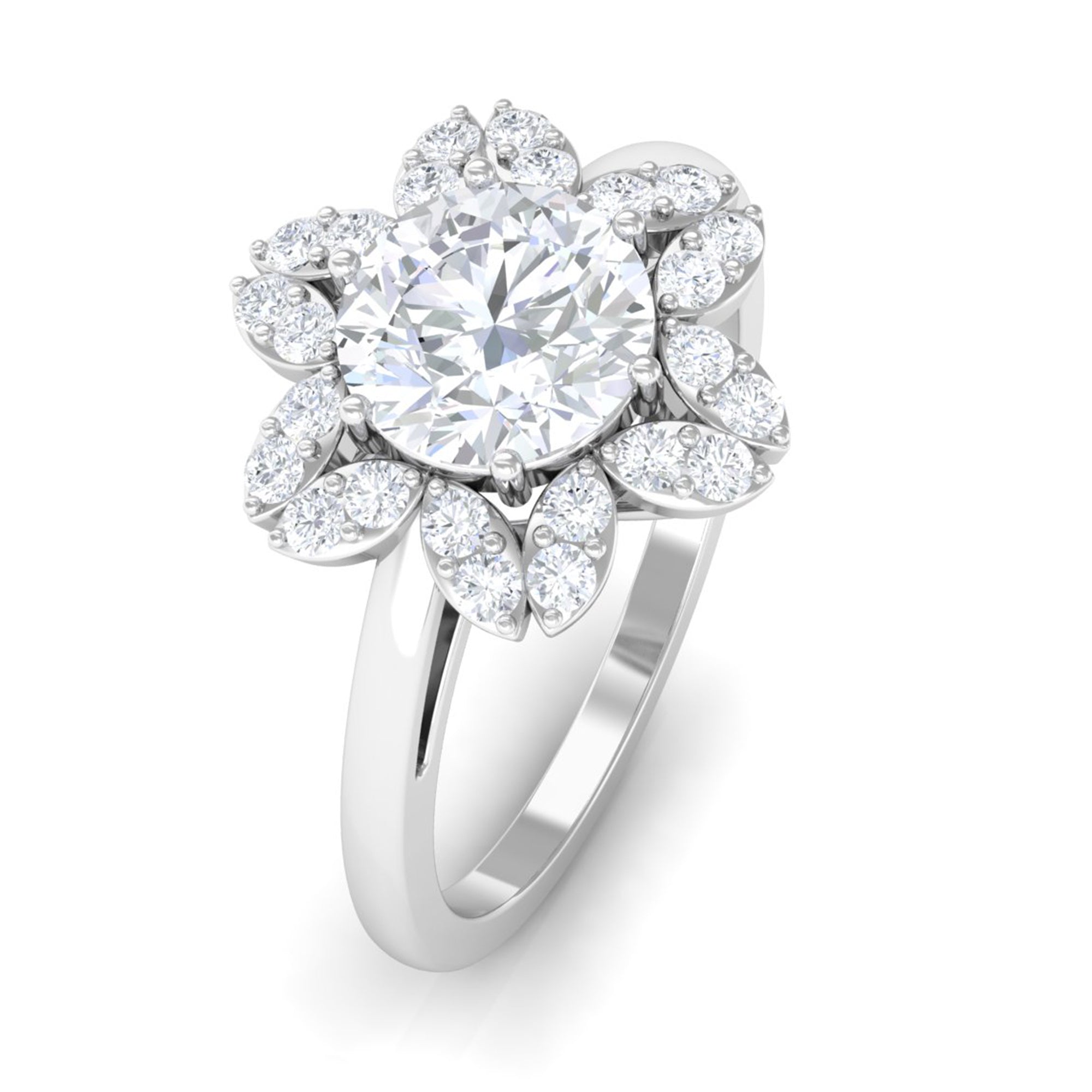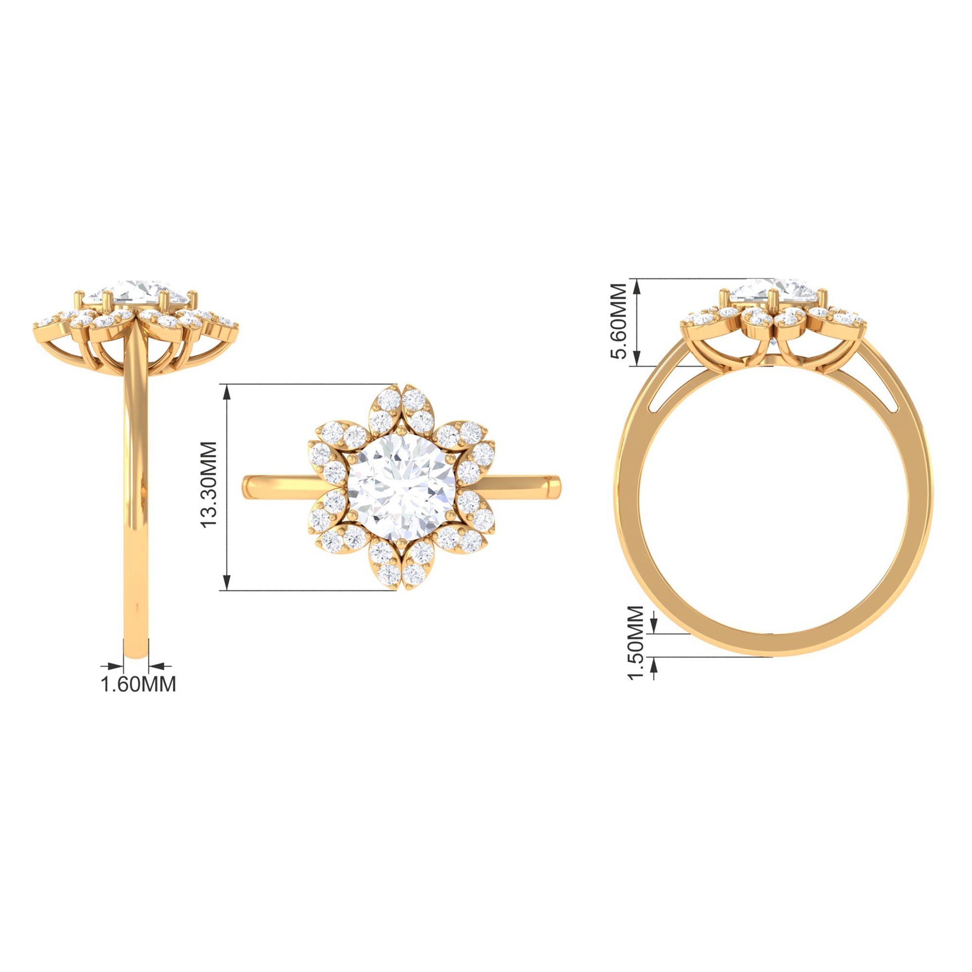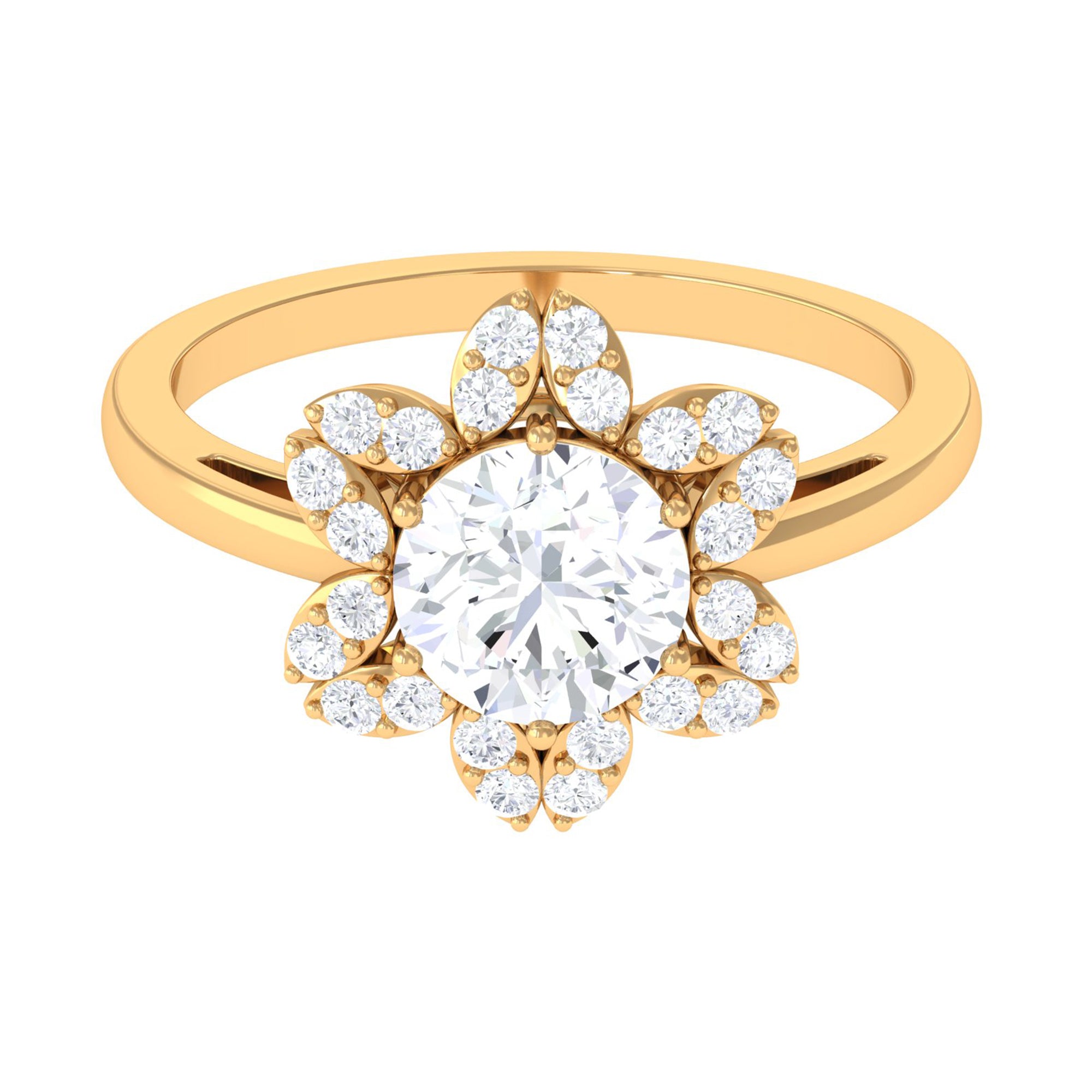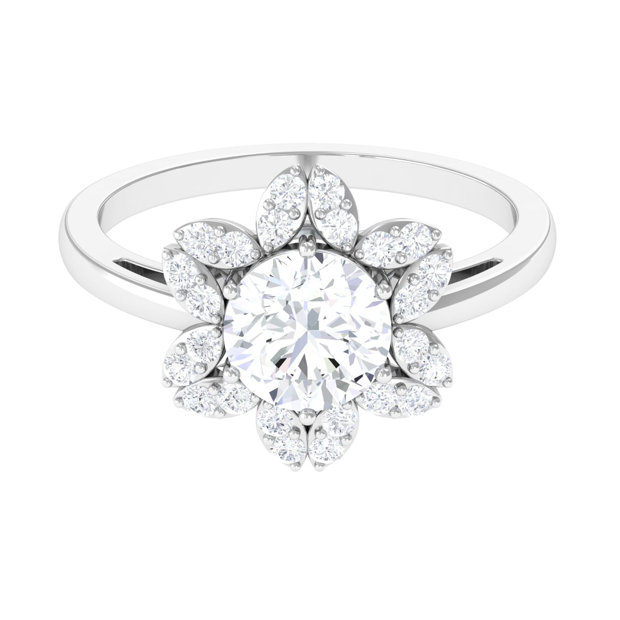 This nature-inspired Floral Ring is adorned with Round Cut Zircon in Prong Setting that perfectly pairs with any other outfit.