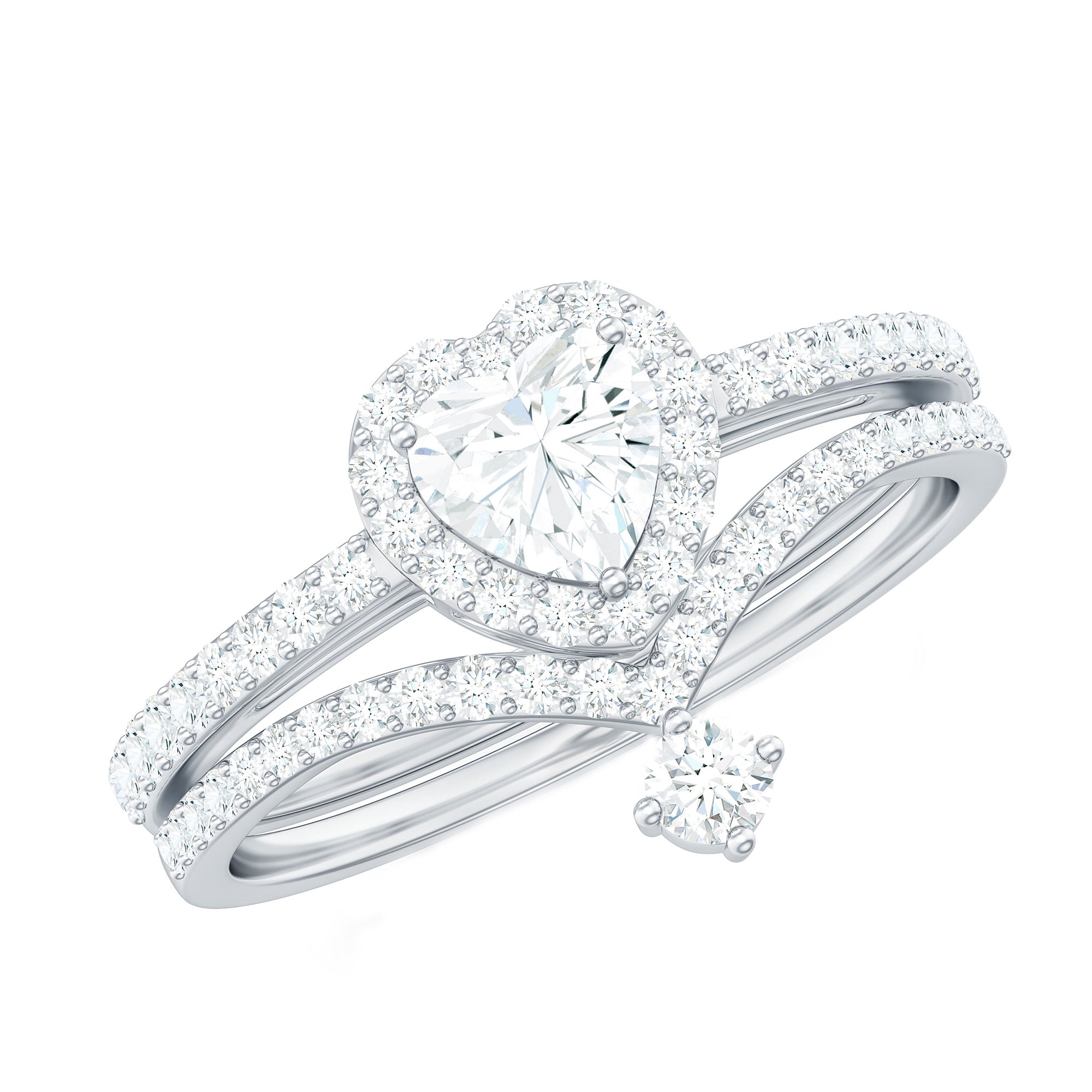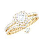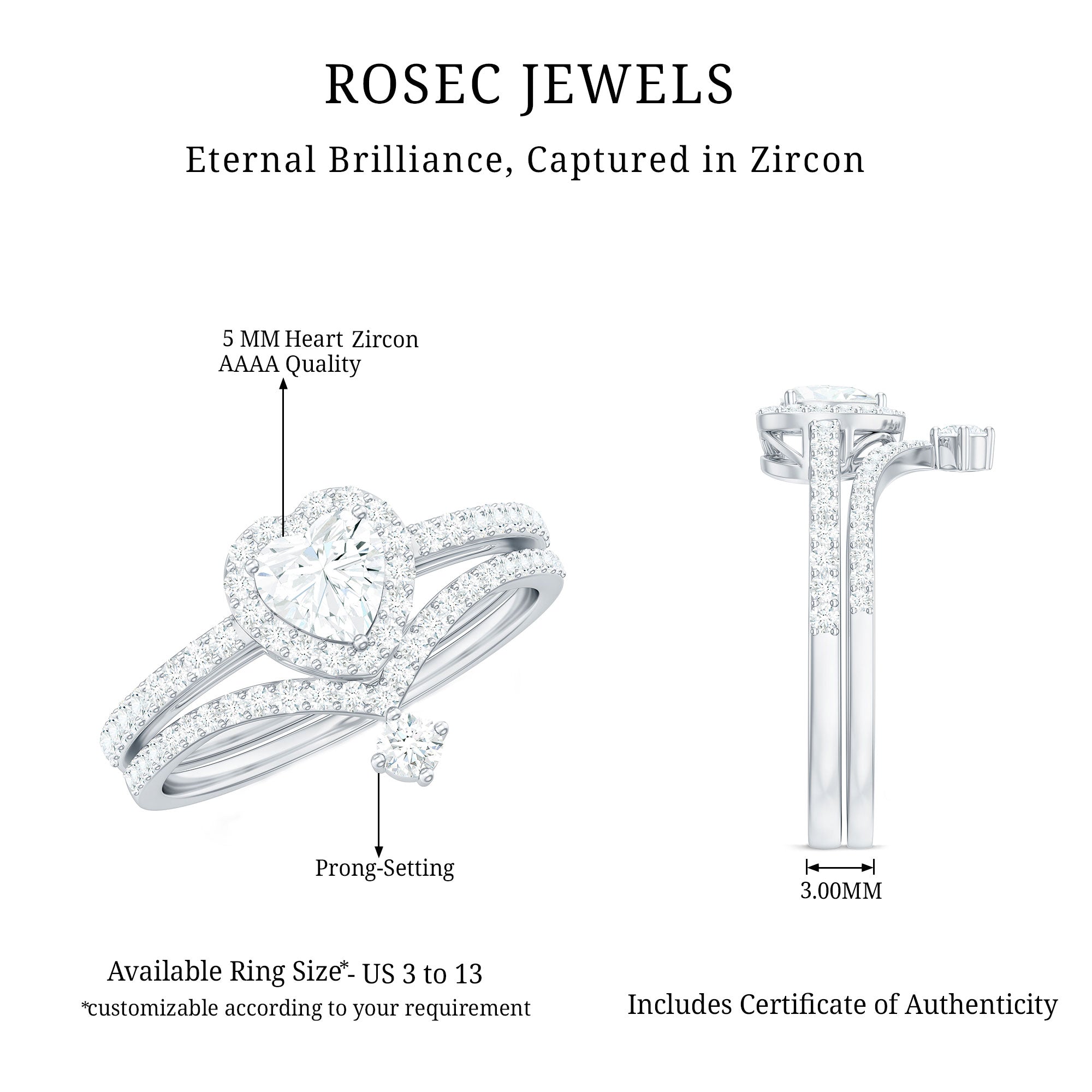 Cubic Zirconia Heart Ring Set with V Shape Band