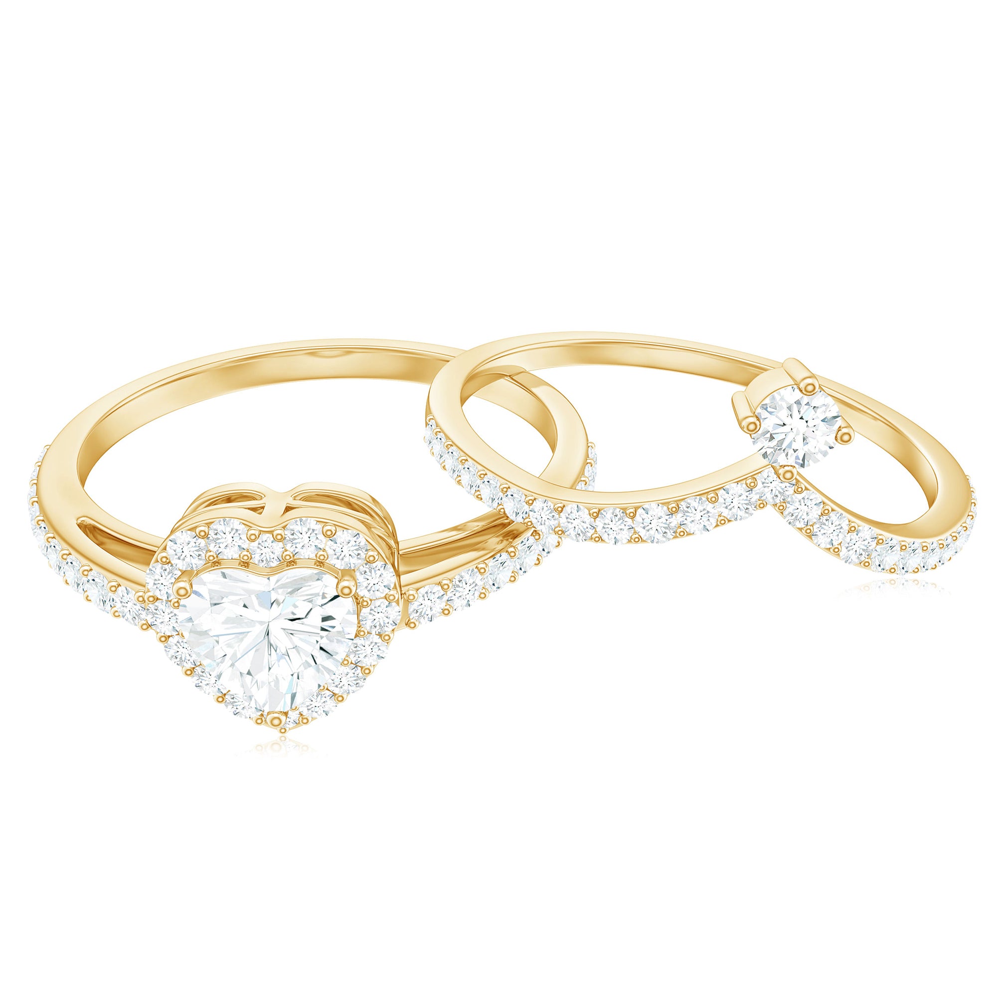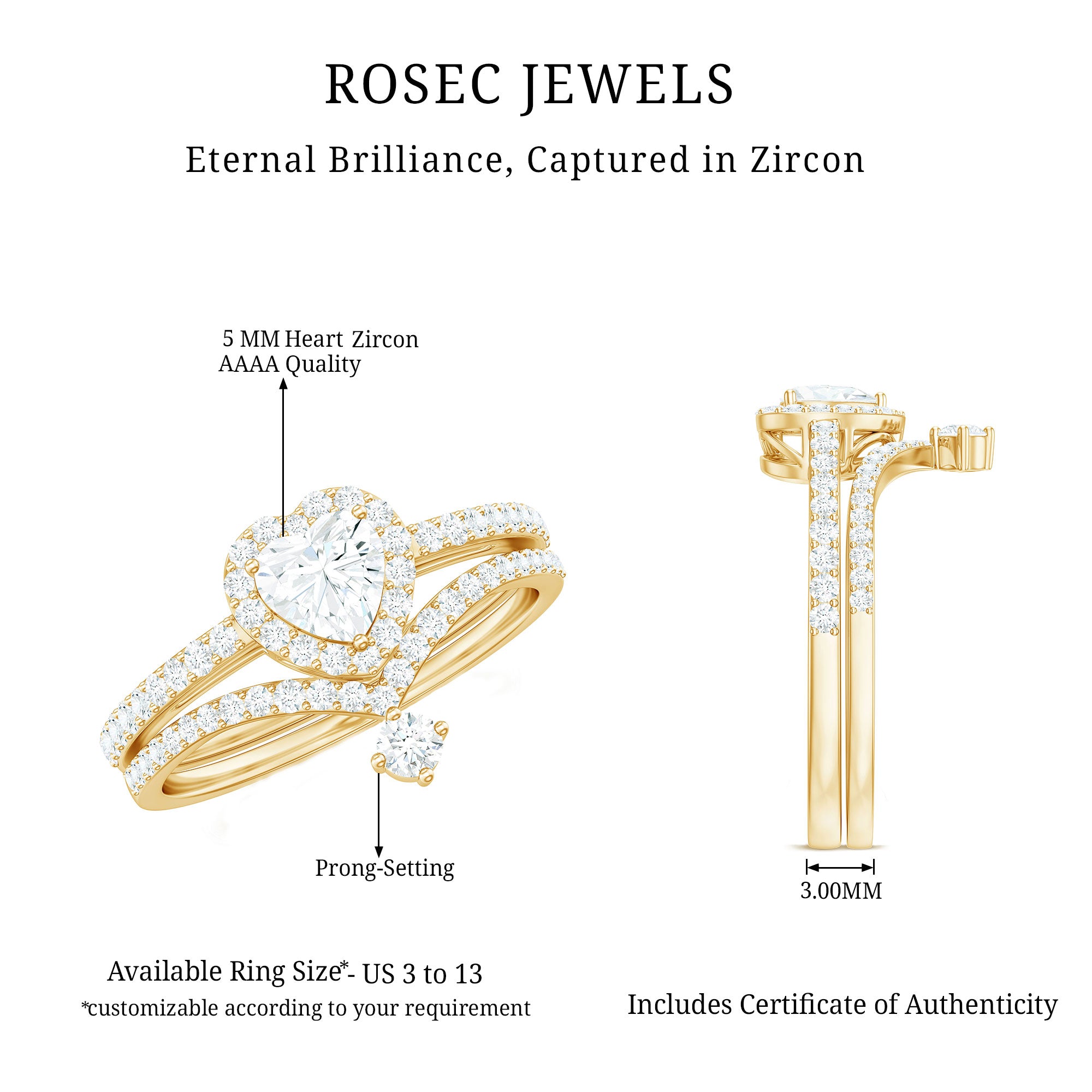 Make your day more special and memorable with this alluring Heart Ring Set. Embellished with Heart Shaped Cubic Zirconia secured in Prong Setting while Round Cubic Zirconia studded on the v shaped enhancer ring. Sway her away by getting this gorgeous Cubic Zirconia Ring Set as Birthday or Anniversary Gift for her.