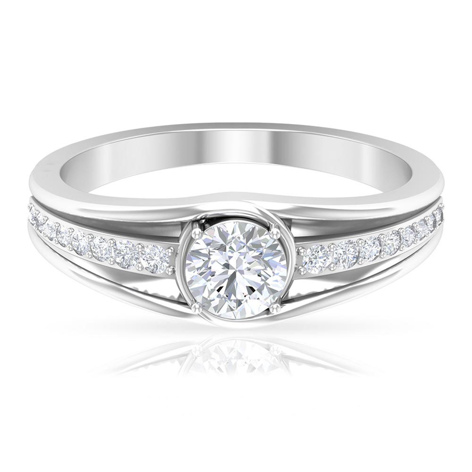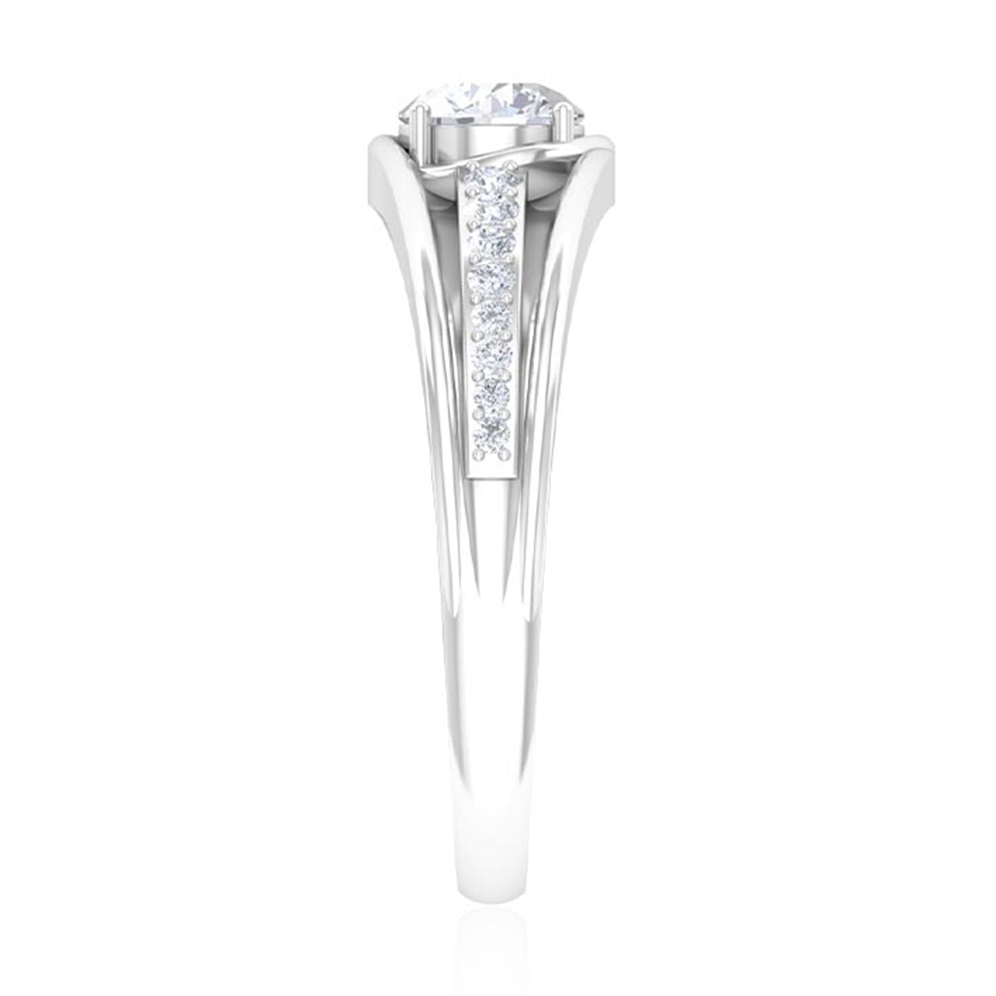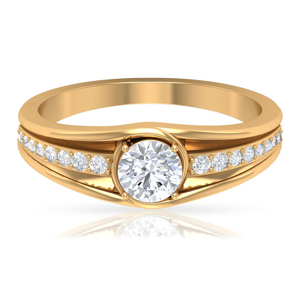 Stunning and unique this Solitaire Band Ring is sure to have your heart with the Round Cut Zircon in Prong Setting and Side Stones.