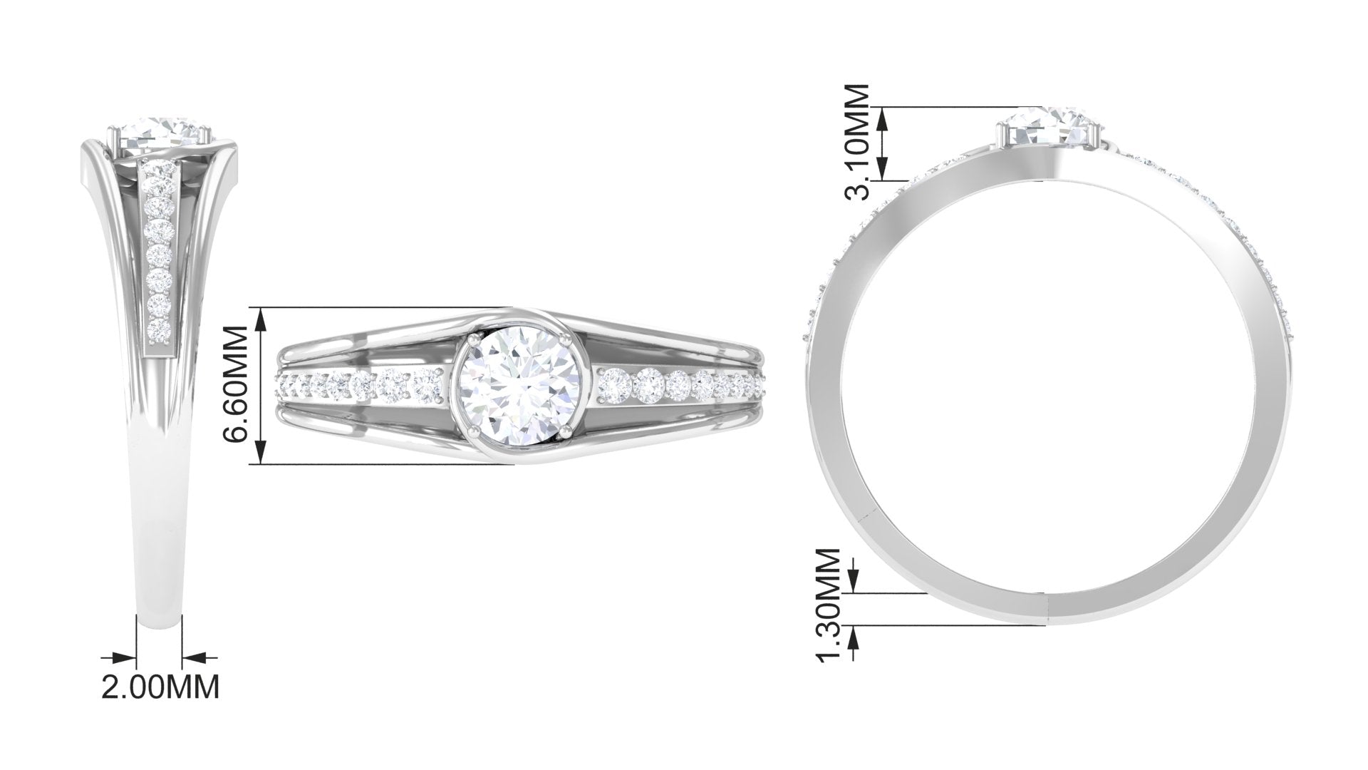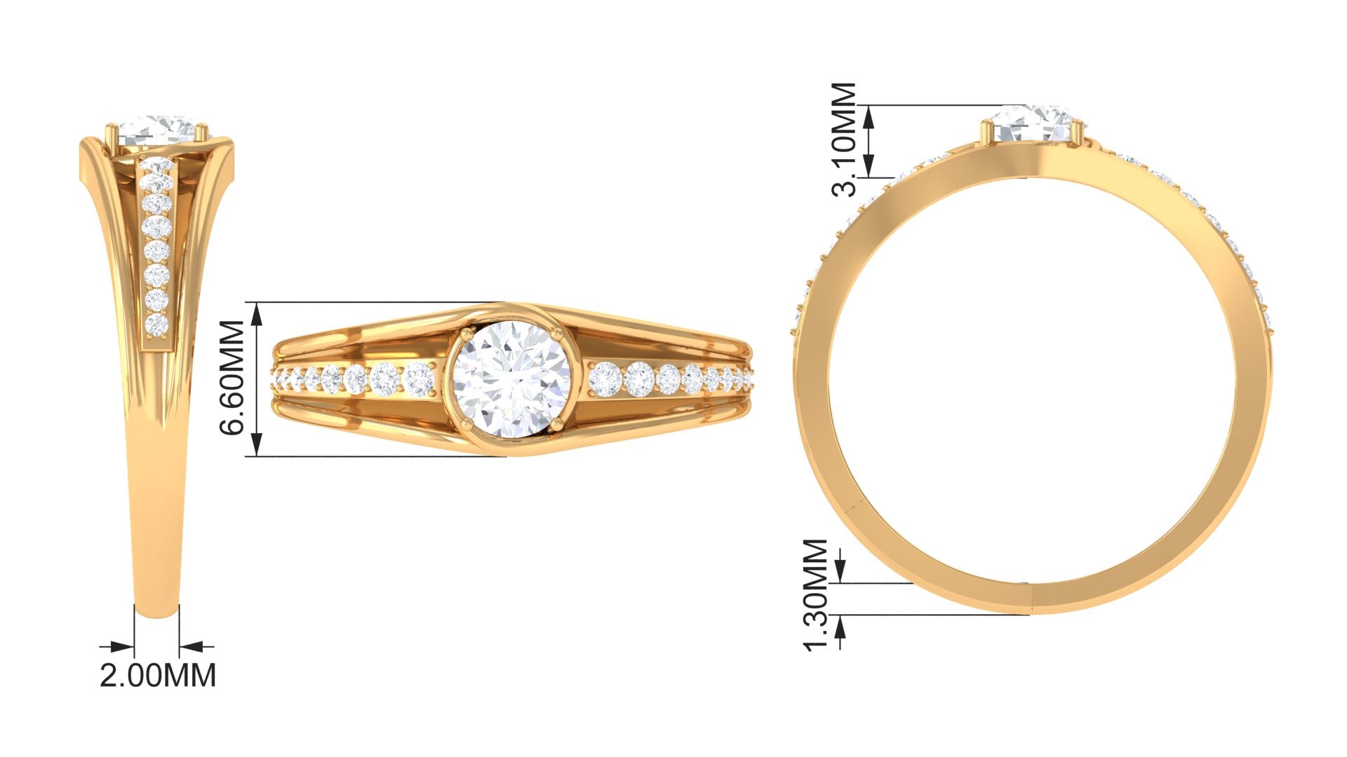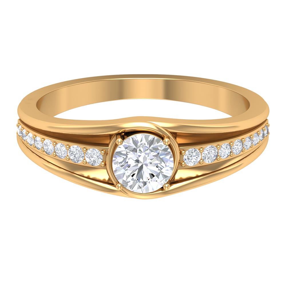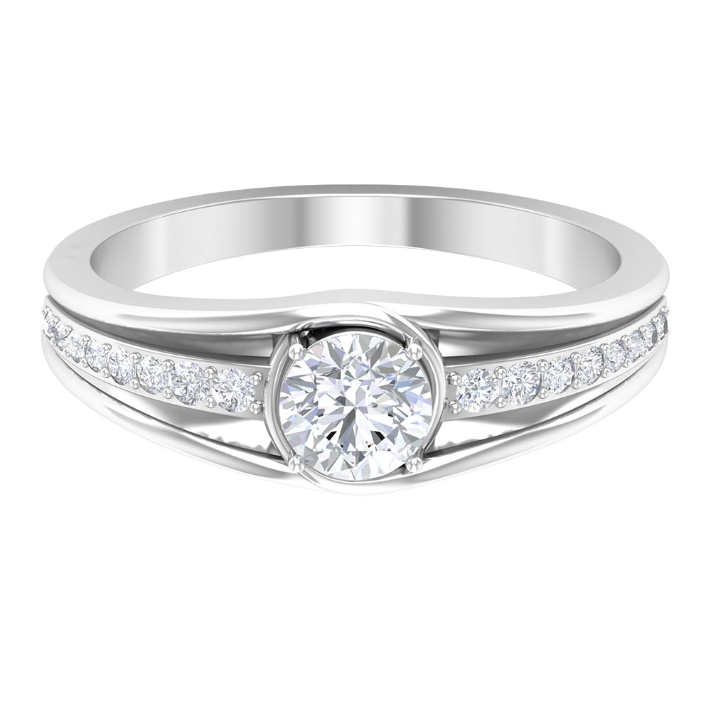 Stunning and unique this Solitaire Band Ring is sure to have your heart with the Round Cut Zircon in Prong Setting and Side Stones.