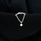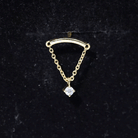 Curved Gold Bar Dangle Chain Helix Earring with Moissanite