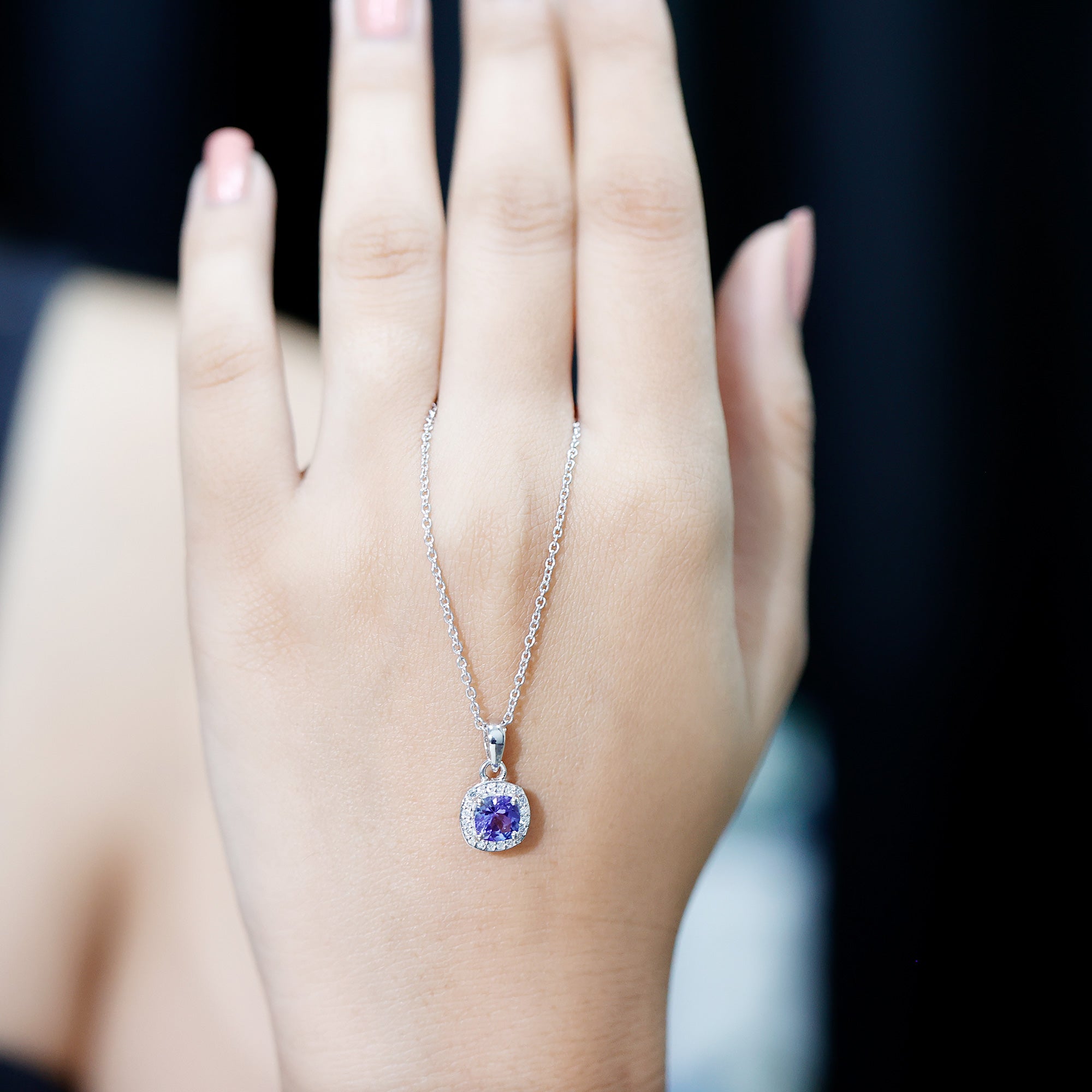 Understated yet captivating, this Tanzanite Pendant Necklace blends timeless elegance with modern charm. Expertly crafted from white gold plated silver, this refined piece showcases a luminous 6 MM cushion cut Tanzanite, held securely in prong setting. The rich blue hue of the Tanzanite is beautifully complemented by a halo of round brilliant cut lab grown diamonds, creating a dazzling frame that enhances the stone’s depth and brilliance. With its AAA quality Tanzanite and EF-VS quality lab grown diamonds, this Cushion Cut Necklace offers both exceptional quality and thoughtful design. Dangling from a delicate chain, the Halo Necklace moves gracefully with you, making it the perfect accessory whether you are dressing for the office, a dinner date, or a special celebration. Tanzanite is also the birthstone of December, is treasured for its rarity and unique color. Symbolizing wisdom, transformation, and clarity, it is an especially meaningful gift for those born in December. This Tanzanite and Diamond Necklace is not just a piece of jewelry, it is a story waiting to be told. Whether worn daily for a touch of sophistication or saved for moments that call for extra sparkle, its elegance speaks volumes. A beautiful blend of simplicity and sparkle, this December Birthstone Necklace is a versatile treasure, perfect for birthdays, anniversaries, holidays, or simply celebrating your unique style.