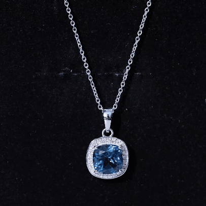 This London Blue Topaz Pendant is simply gorgeous and completes the look for special occasions. It features an 8 MM Cushion Cut London Blue Topaz securely placed in 4 Prong Setting encircled by a Diamond Halo. This December Birthstone Pendant dazzles with the classic shine of AAA quality London Blue Topaz. The Halo Pendant will be shipped to you in a premium quality jewelry box for the storage.