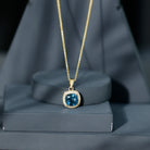 Cushion Cut 8 MM London Blue Topaz Pendant with Diamond Halo
