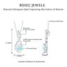 Make your style the talk of the town by wearing this Ethiopian Opal Necklace crafted with 14K White Gold Plated Silver. It features an 8 MM Cushion Cut Ethiopian Opal secured in Prong Setting placed at the center of an infinity frame which is partially studded with Moissanite stones. The Genuine Opal Pendant for Zodiac Libra is accentuated with a hidden bail and beholds the classic shine of AAA Quality Ethiopian Opal which makes it a perfect jewel to adorn your look. This Opal Birthstone Pendant hangs from a sturdy chain which makes it perfectly sit on the neckline. This Infinity Necklace is the symbol of forever love, creativity, and hope and will be delivered to you in a velvet pouch with the certificate of authenticity.